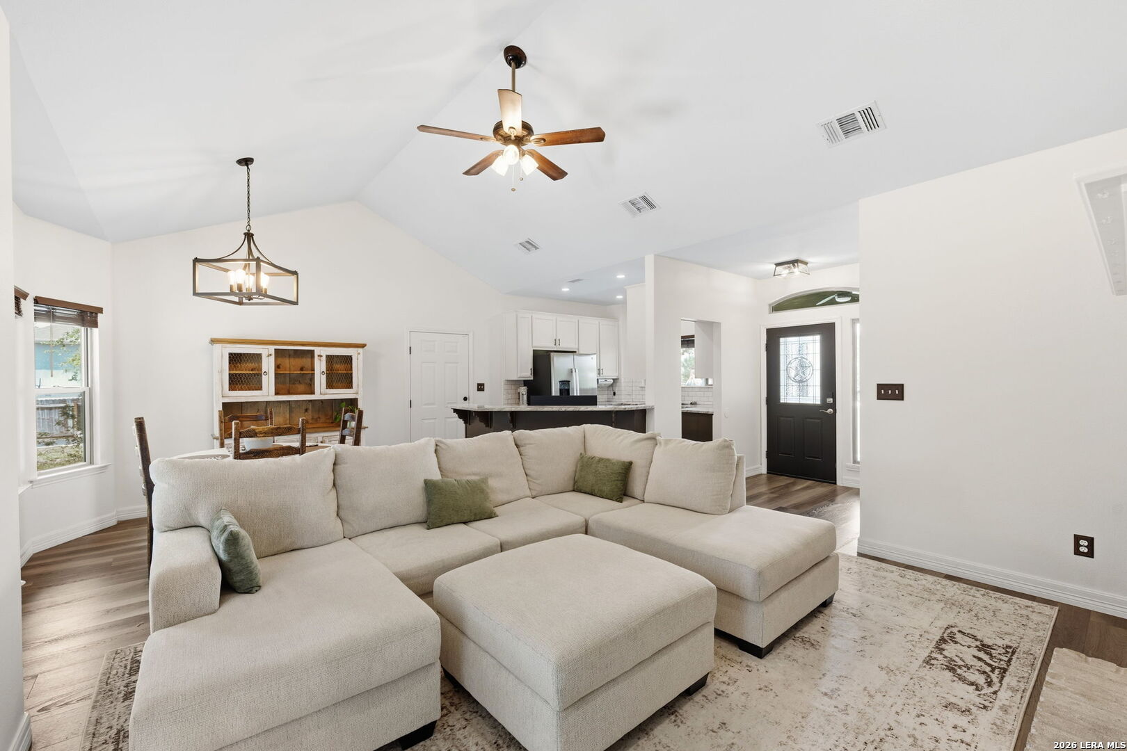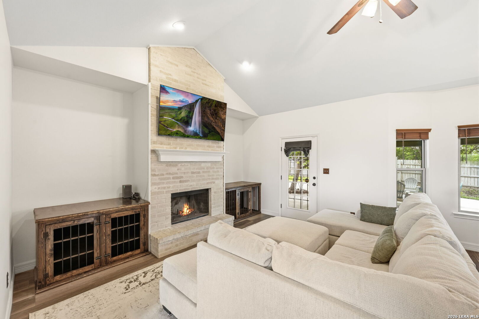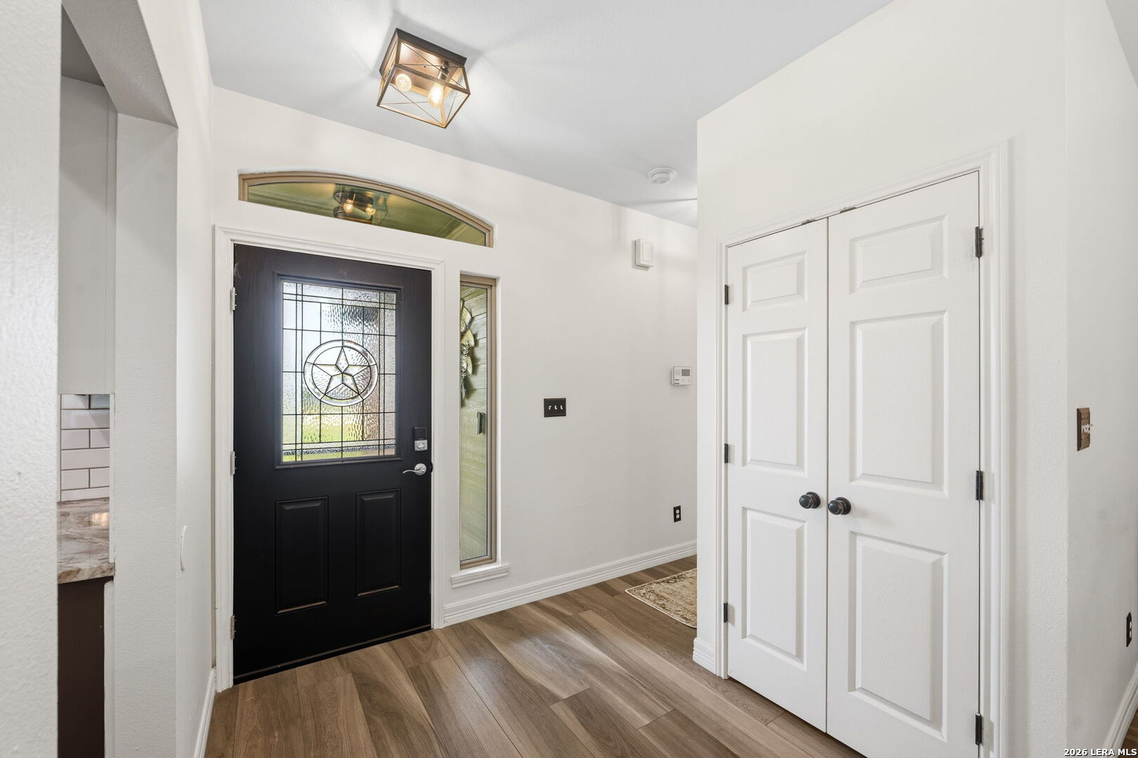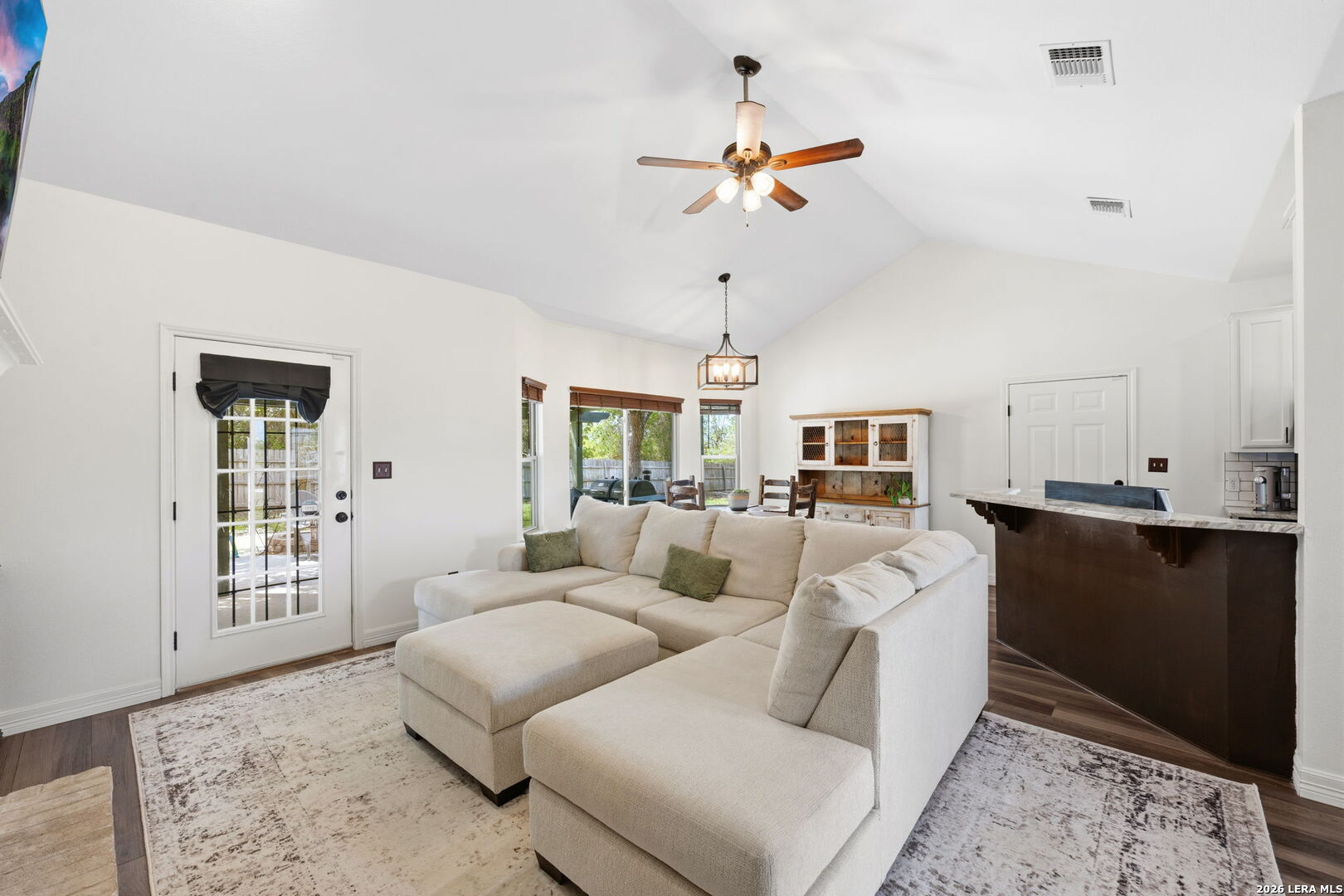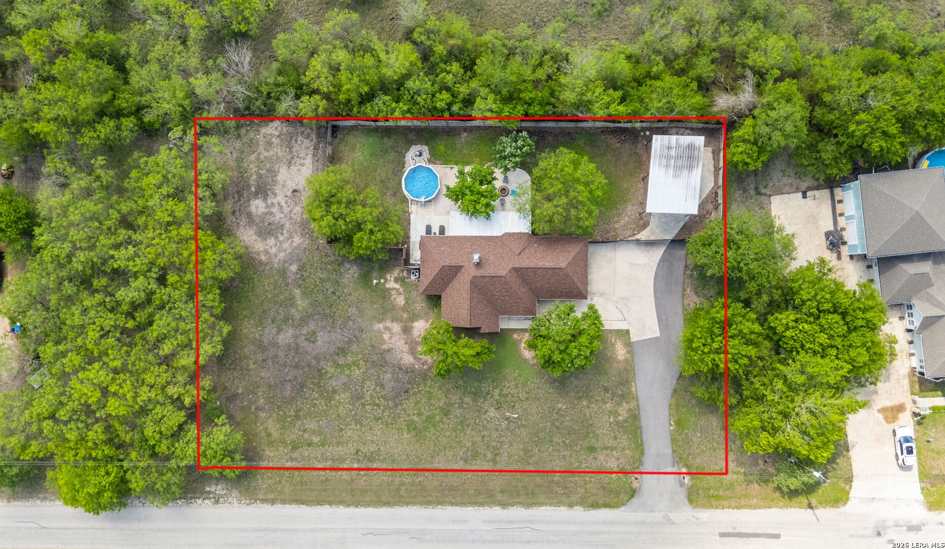 Peaceful ranch home on a level 0.79-acre lot in a gated community in Navarro ISD, full of upgrades, a new roof in 2023, and meticulously maintained. Enjoy quiet country living from the covered front porch or unwind in your private backyard oasis featuring an extended covered patio, custom fire pit, mature trees, and a 15 ft above-ground pool with additional lounging space. Bring your boat and RV. A metal-covered concrete pad with 50 amp and 110 amp hookups adds convenience, all enclosed within a privately fenced backyard with a 20 ft rolling gate added in 2025. Inside, you're welcomed by high ceilings, fresh paint, upgraded fixtures, and an open-concept layout. Brand new windows fill the home with natural light, highlighting the kitchen and dining space. New appliances, breakfast bar seating, luxury vinyl flooring, and ceiling fans in every bedroom make everyday living easy and comfortable. Thoughtfully cared for and truly move-in ready, this home offers a relaxed lifestyle both inside and out. Enjoy peaceful country living just minutes from New Braunfels, under 10 minutes to Creekside and HEB, 8 minutes to Costco, and less than a mile to Country Grace Farms. A rare blend of space, convenience, and lifestyle ready to be enjoyed from day one.
