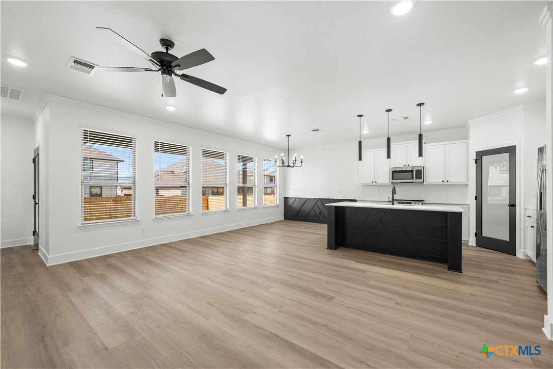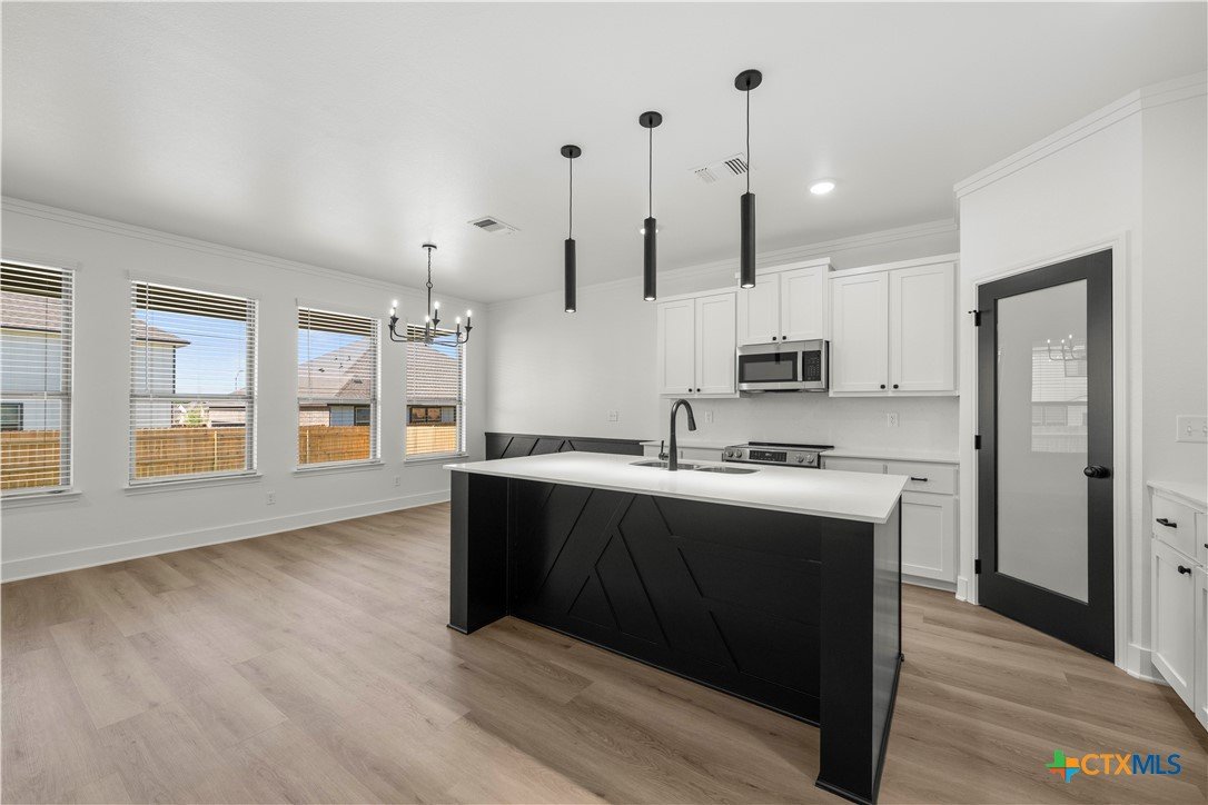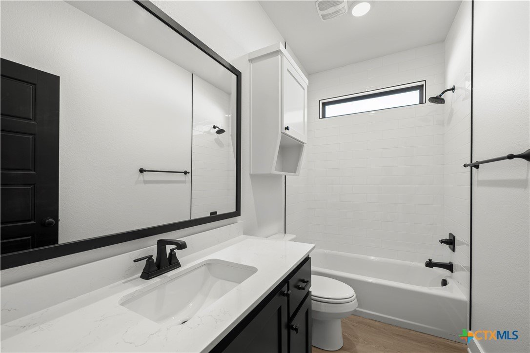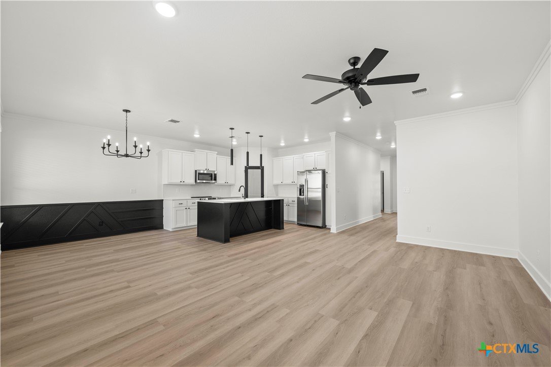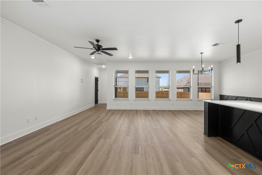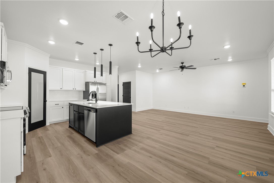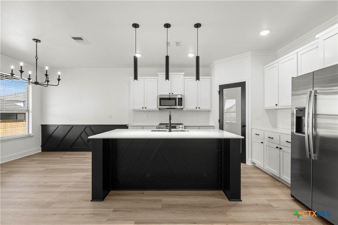 New construction currently under construction featuring a brick and Hardie exterior, 9" ceilings, and upscale finishes throughout. Open-concept design highlights quartz countertops, stainless steel appliances, custom cabinetry, vinyl wood plank flooring, and a statement kitchen island. Private primary suite offers a walk-in closet with upgraded shelving and tiled walk-in shower and custom glass enclosure. Covered patio and energy-efficient features complete this beautifully built home.