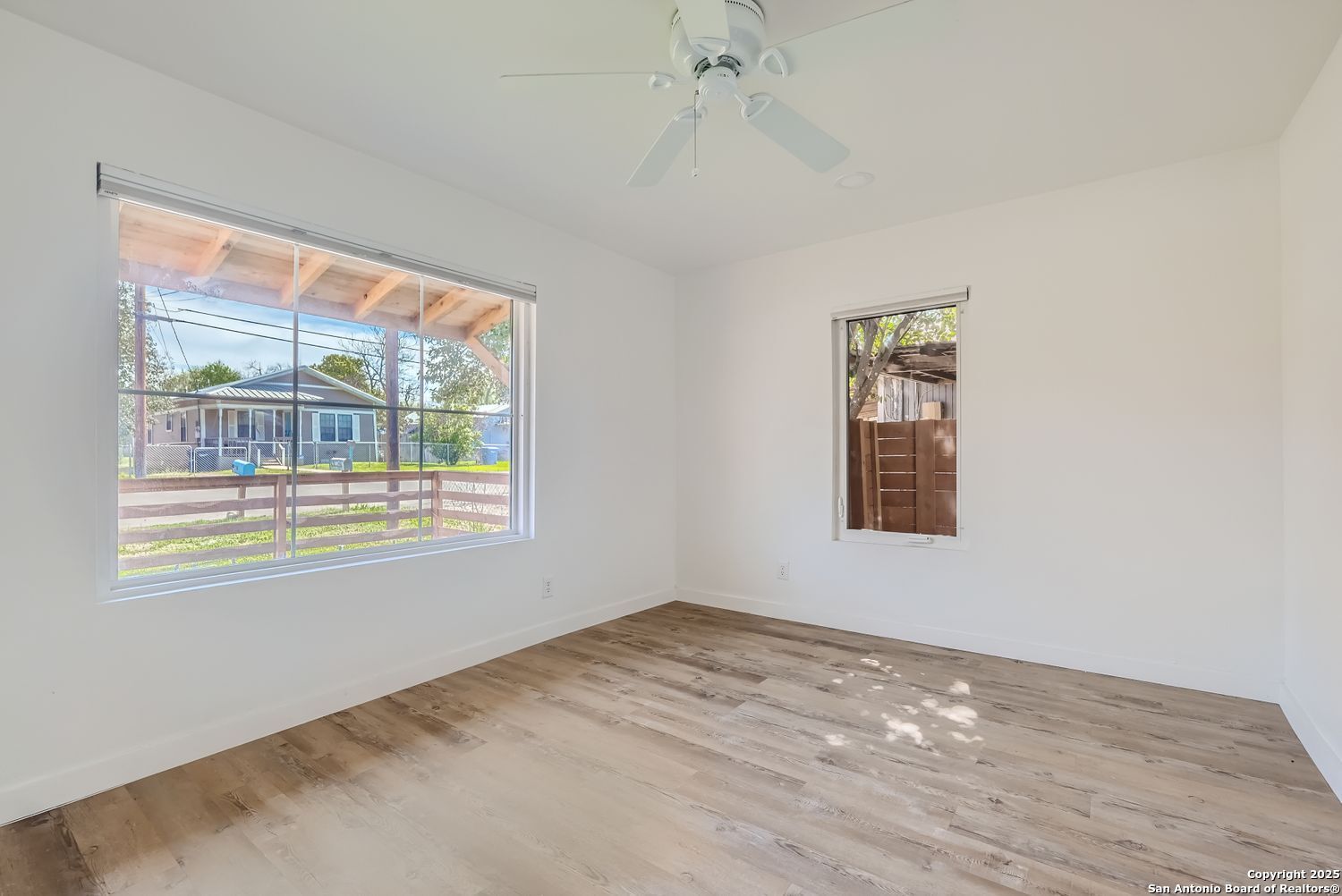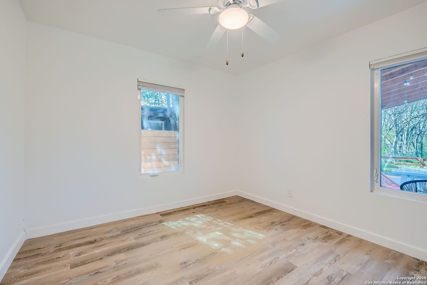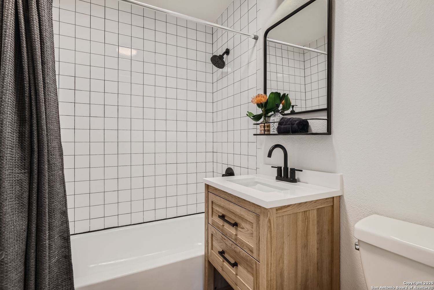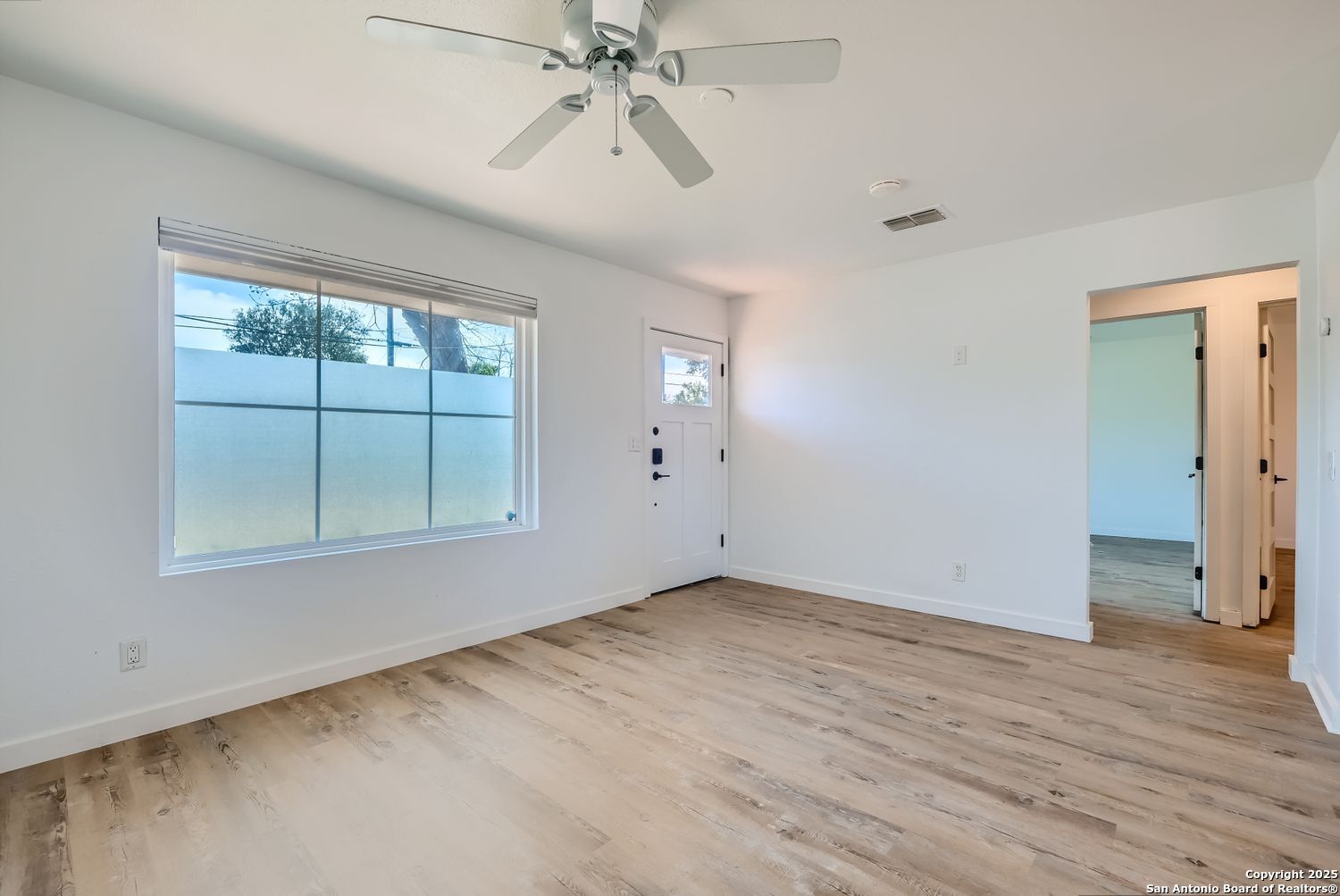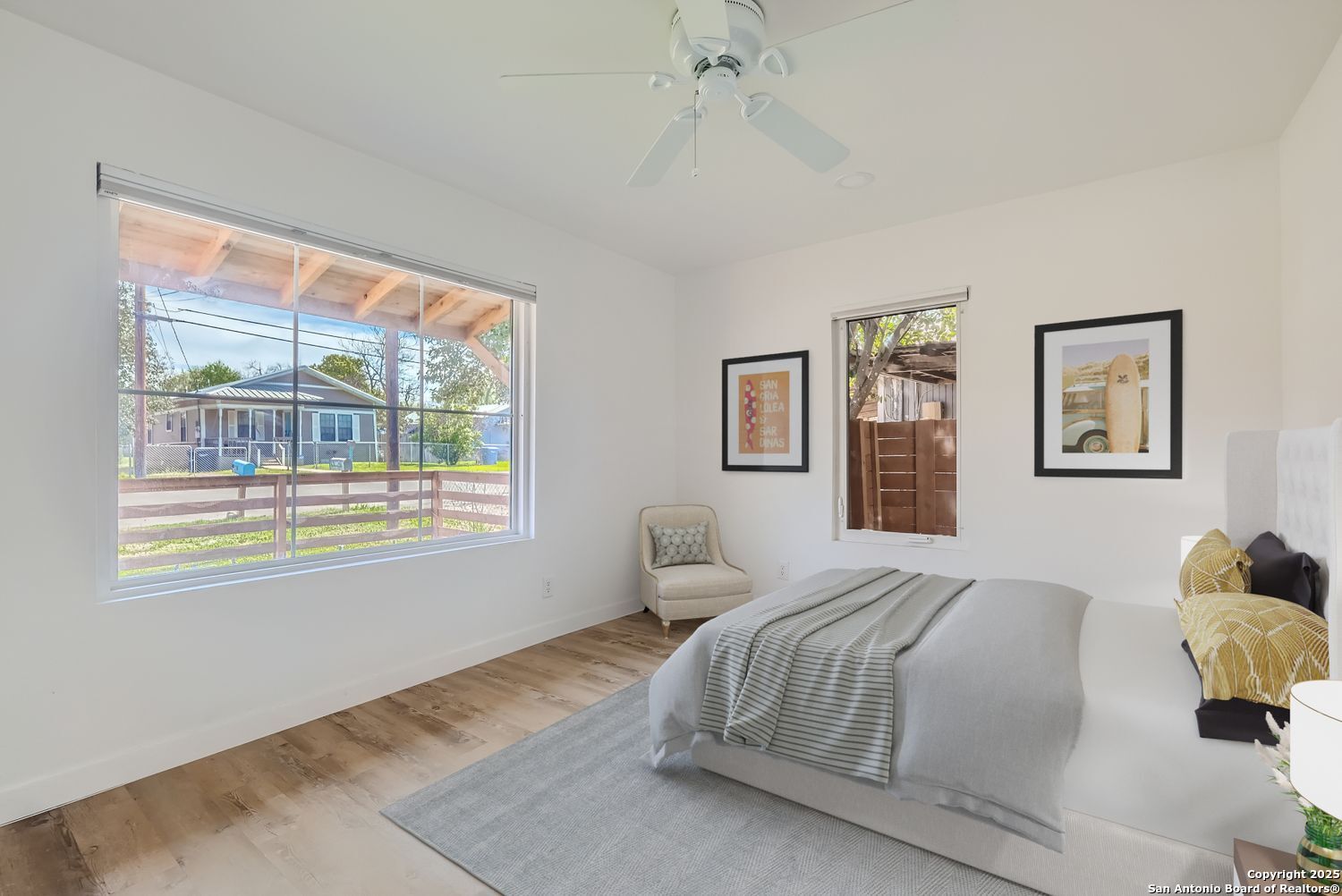 Beautifully updated from top to bottom, this modern-farmhouse cottage offers style, comfort, and thoughtful upgrades in a prime New Braunfels location. The exterior features all-new Hardie siding, energy-efficient Andersen windows, and a cheerful blue door that sets the tone for the inviting interior. Inside, you'll find a bright open layout with brand-new subflooring and durable wood-look flooring throughout. The kitchen boasts granite countertops, stainless-steel appliances, open shelving, and a custom Dutch door leading to the backyard. Enjoy outdoor living at its best on the expansive deck with a covered pergola, bar seating, and room to gather under the trees. The reinforced concrete silo foundation has been leveled for peace of mind, and the fully fenced yard offers privacy and space to relax. Conveniently located near downtown New Braunfels, Landa Park, and the Comal River-this home blends modern design with Hill Country charm.
