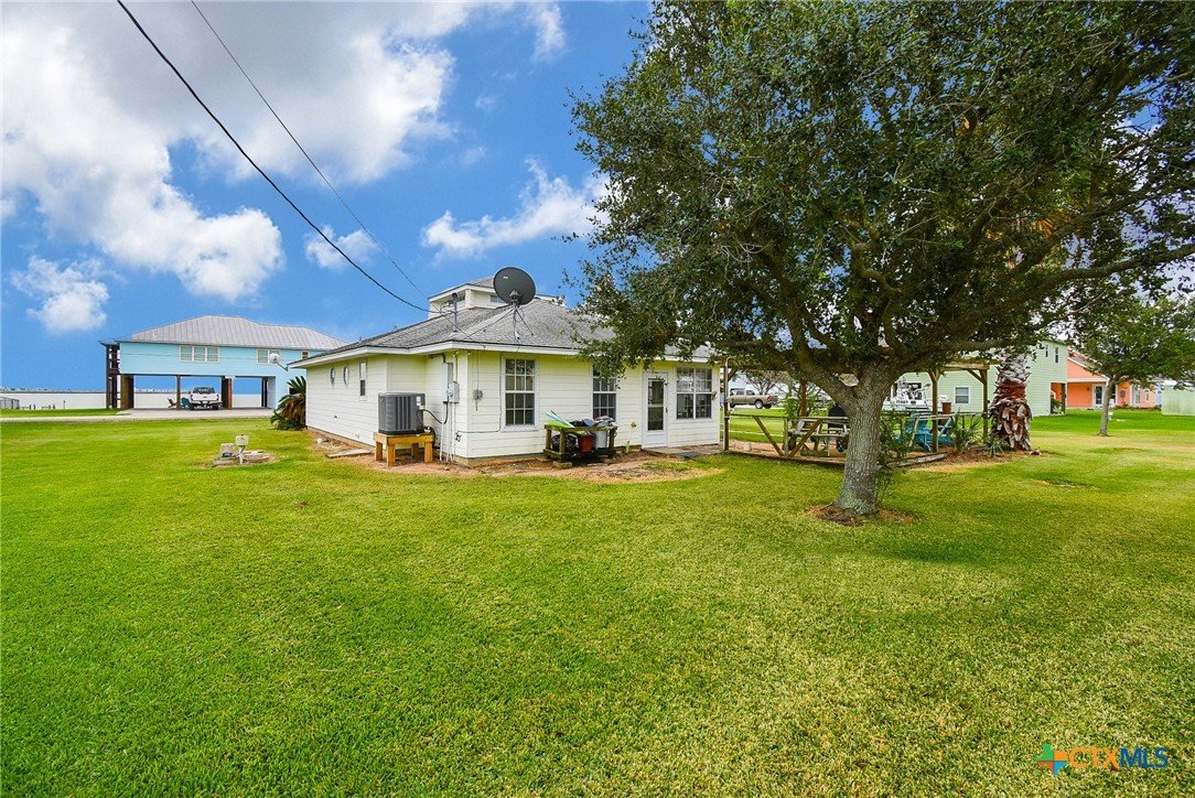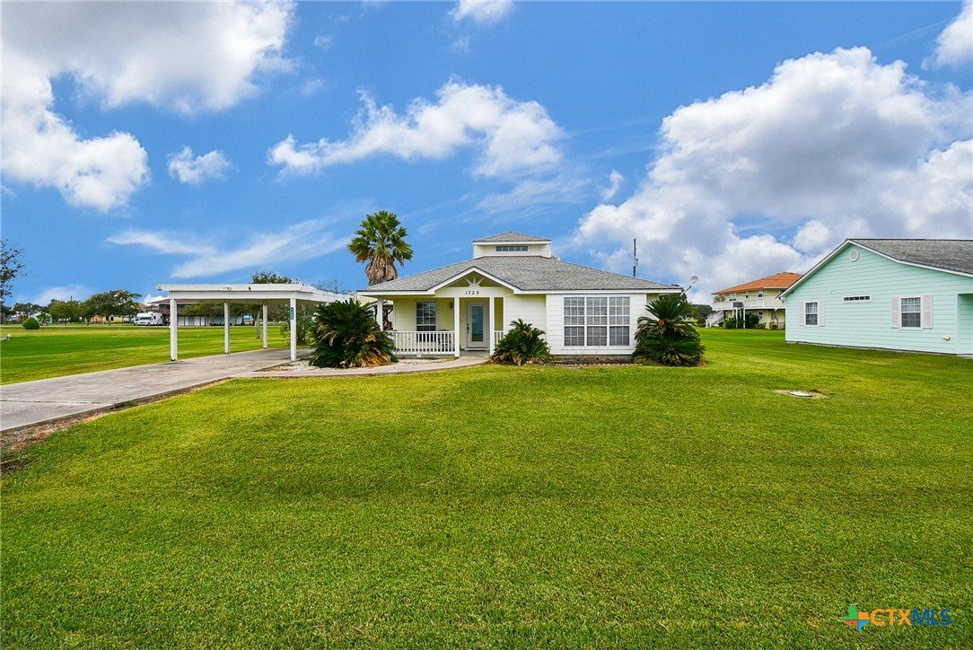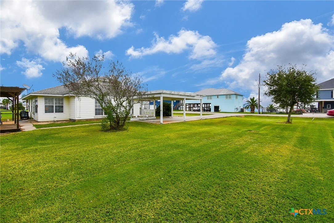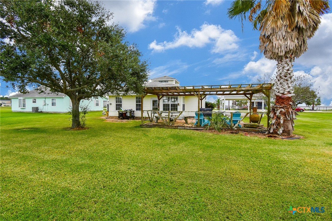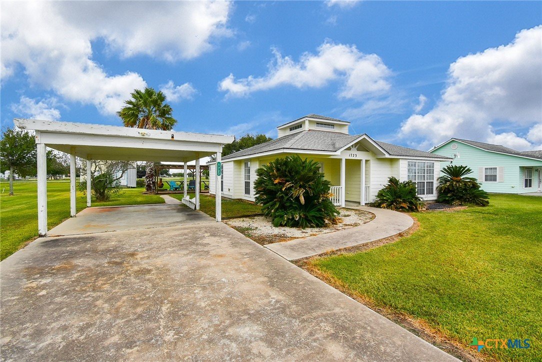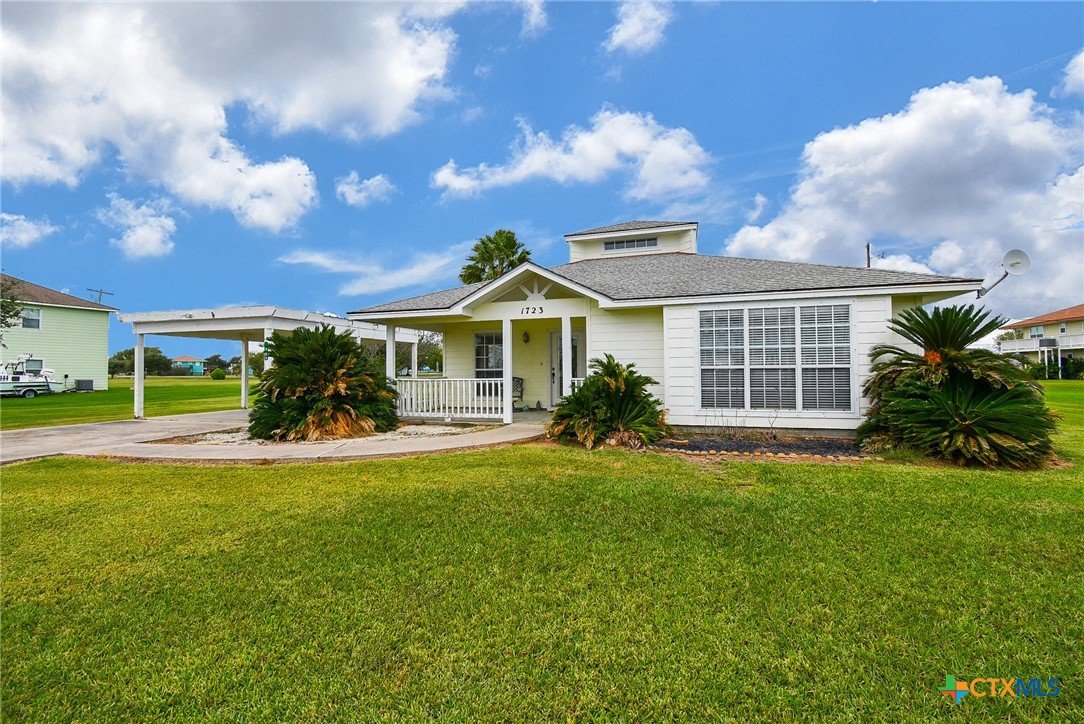 Nestled in the gated coastal community of Cape Carancahua, 1723 W Bayshore Dr. offers a serene escape just minutes from Palacios and Port Lavaca. Set on four spacious lots across from the waterfront, this charming home boasts an open, light-filled living area with a high ceiling and a sunroom that opens to a large yard with a pergola, perfect for soaking up coastal breezes. The kitchen, with its extended bar counter and ample storage, is a chef’s delight. A 40'x22' metal building provides RV or boat storage, while a 10'x12' shed adds extra space. Enjoy Cape Carancahua’s community amenities, including a gated entry, boat ramp, three fishing piers, two pools, parks, a pavilion, playground, and more!