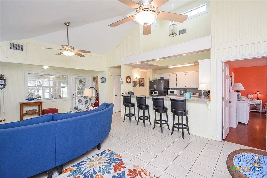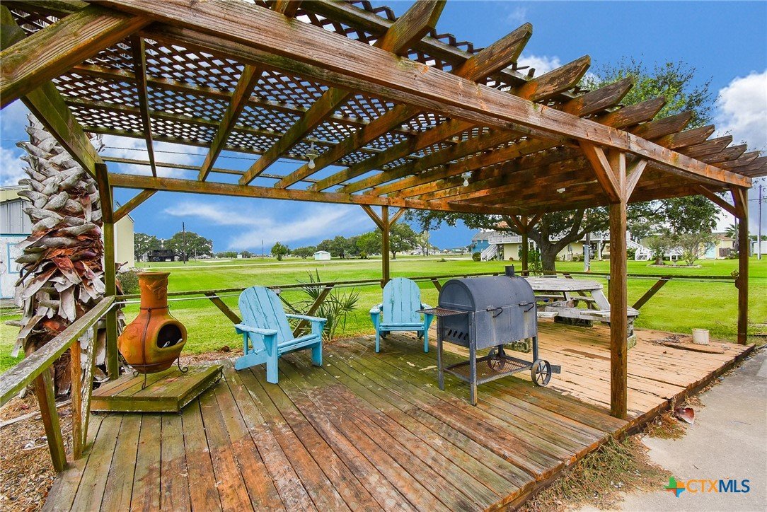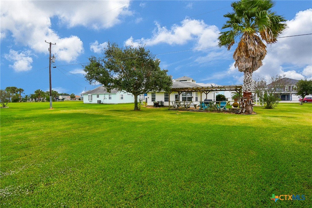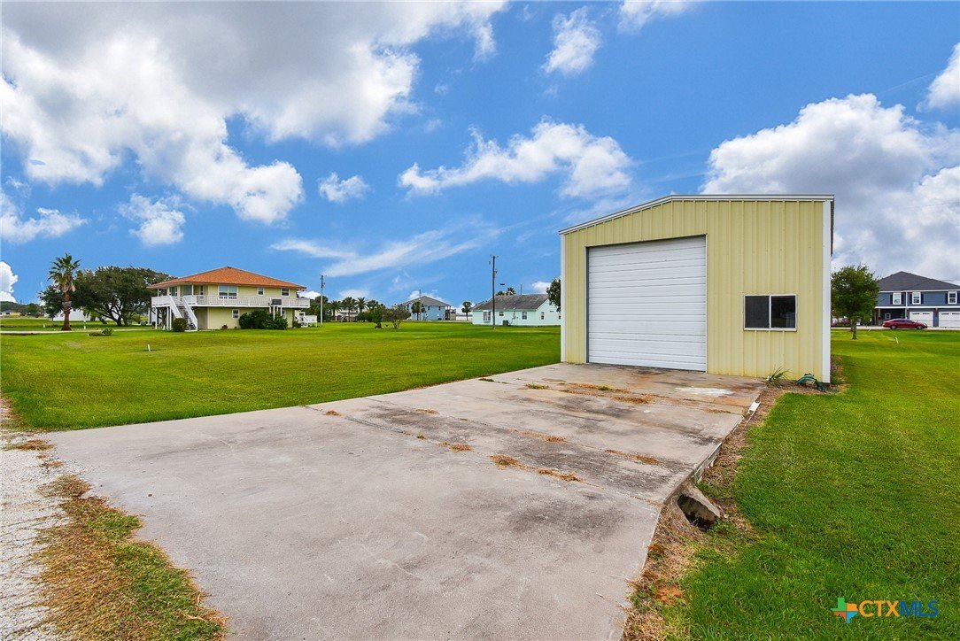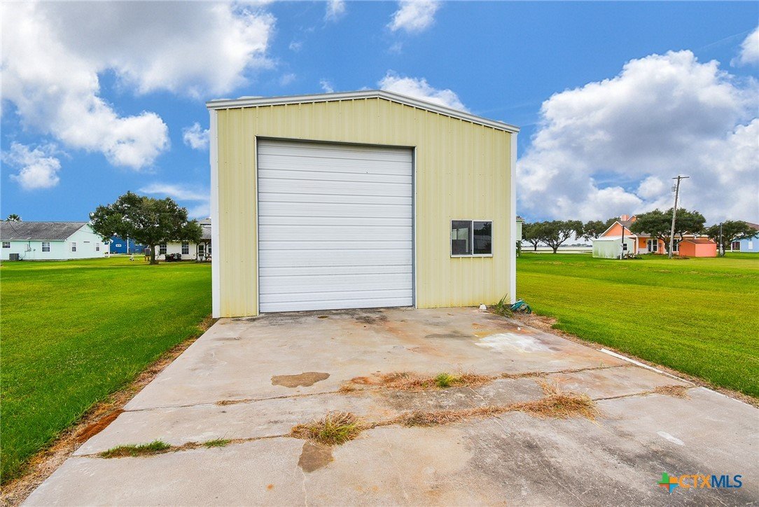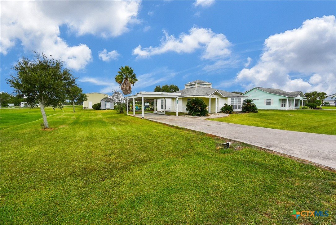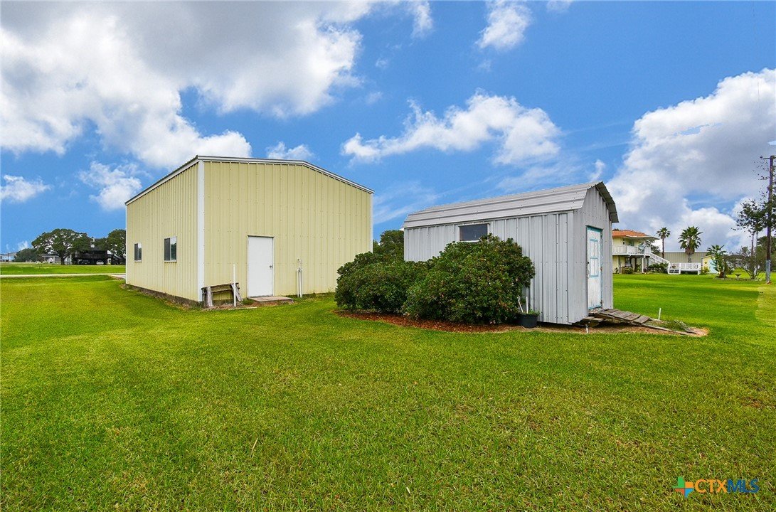 Nestled in the gated coastal community of Cape Carancahua, 1723 W Bayshore Dr. offers a serene escape just minutes from Palacios and Port Lavaca. Set on four spacious lots across from the waterfront, this charming home boasts an open, light-filled living area with a high ceiling and a sunroom that opens to a large yard with a pergola, perfect for soaking up coastal breezes. The kitchen, with its extended bar counter and ample storage, is a chef’s delight. A 40'x22' metal building provides RV or boat storage, while a 10'x12' shed adds extra space. Enjoy Cape Carancahua’s community amenities, including a gated entry, boat ramp, three fishing piers, two pools, parks, a pavilion, playground, and more!
