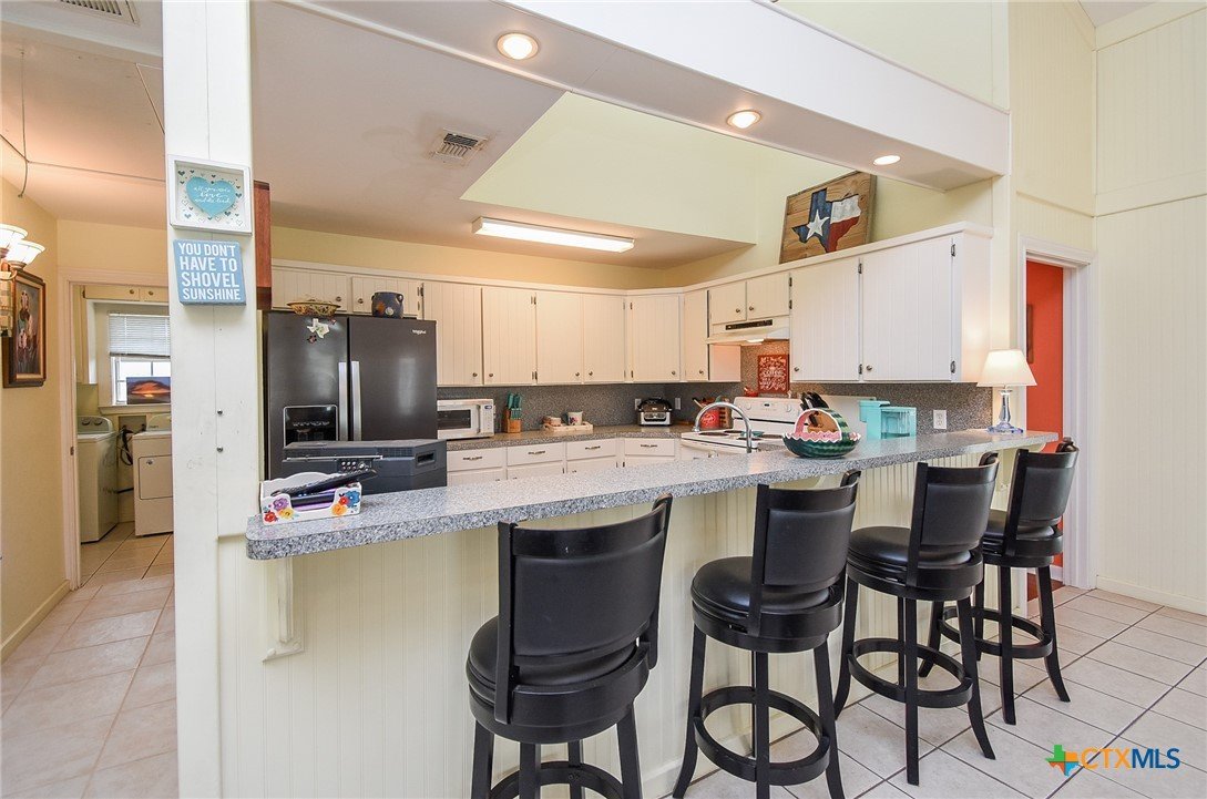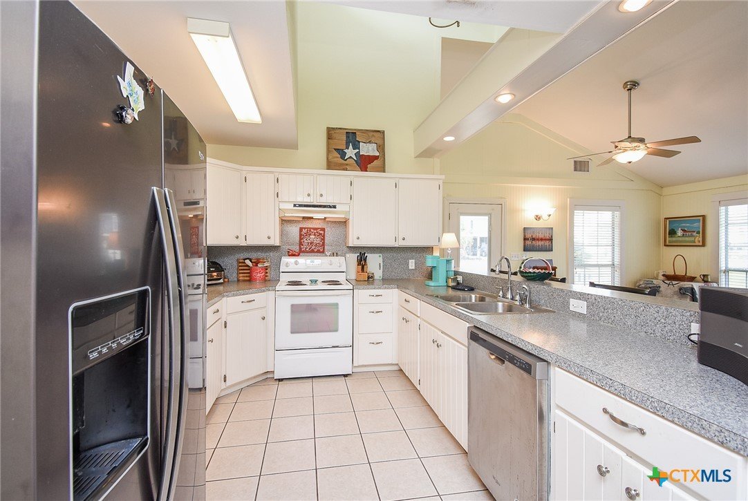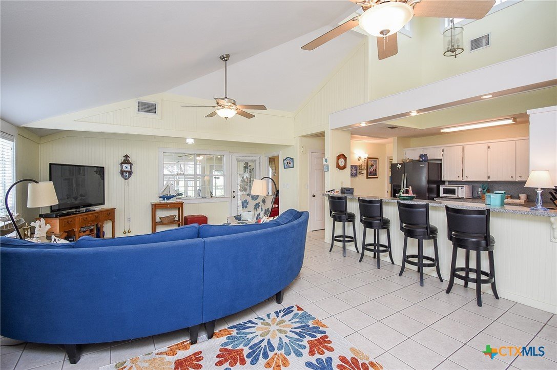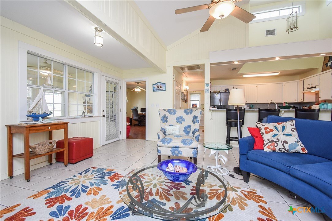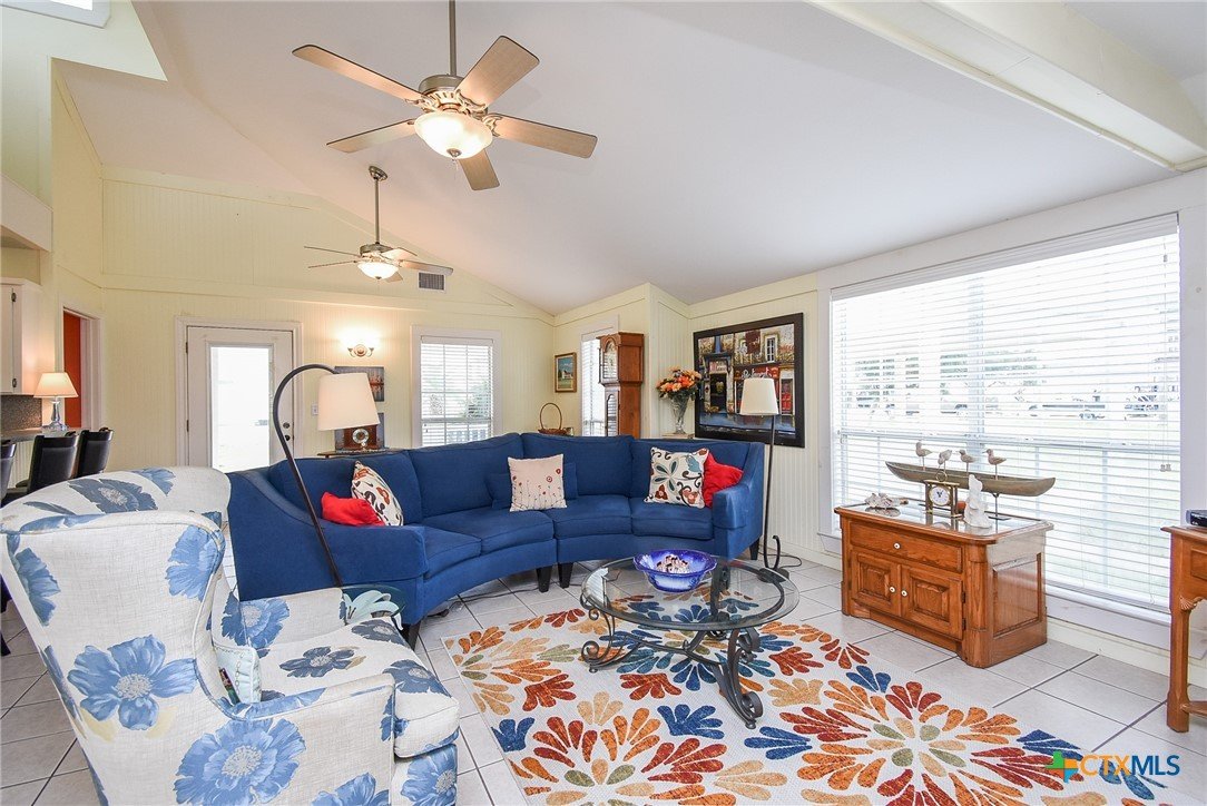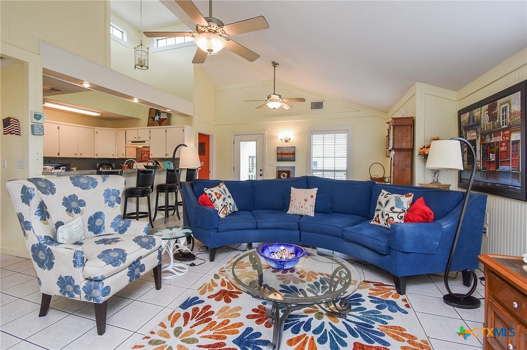 Nestled in the gated coastal community of Cape Carancahua, 1723 W Bayshore Dr. offers a serene escape just minutes from Palacios and Port Lavaca. Set on four spacious lots across from the waterfront, this charming home boasts an open, light-filled living area with a high ceiling and a sunroom that opens to a large yard with a pergola, perfect for soaking up coastal breezes. The kitchen, with its extended bar counter and ample storage, is a chef’s delight. A 40'x22' metal building provides RV or boat storage, while a 10'x12' shed adds extra space. Enjoy Cape Carancahua’s community amenities, including a gated entry, boat ramp, three fishing piers, two pools, parks, a pavilion, playground, and more!