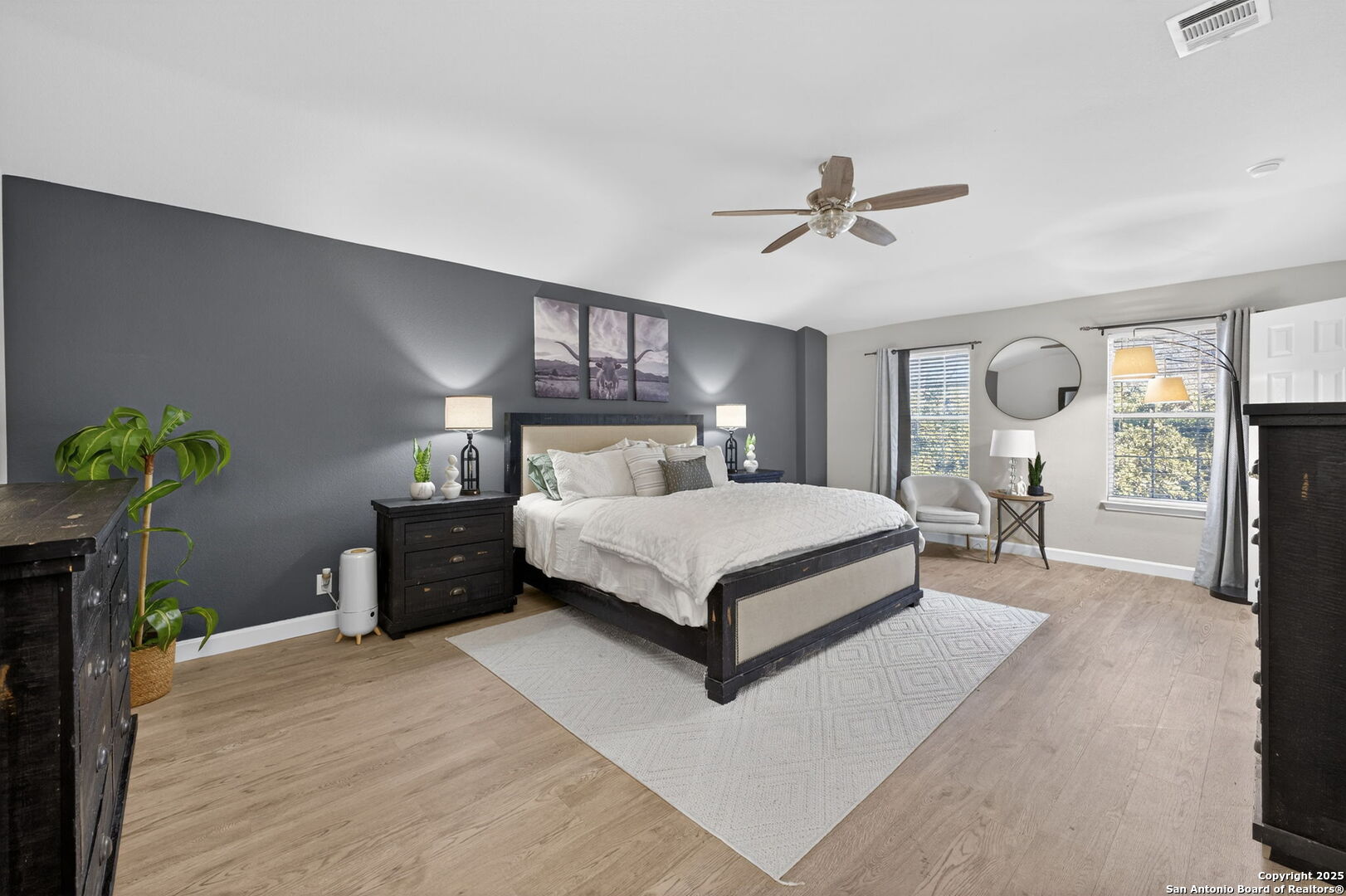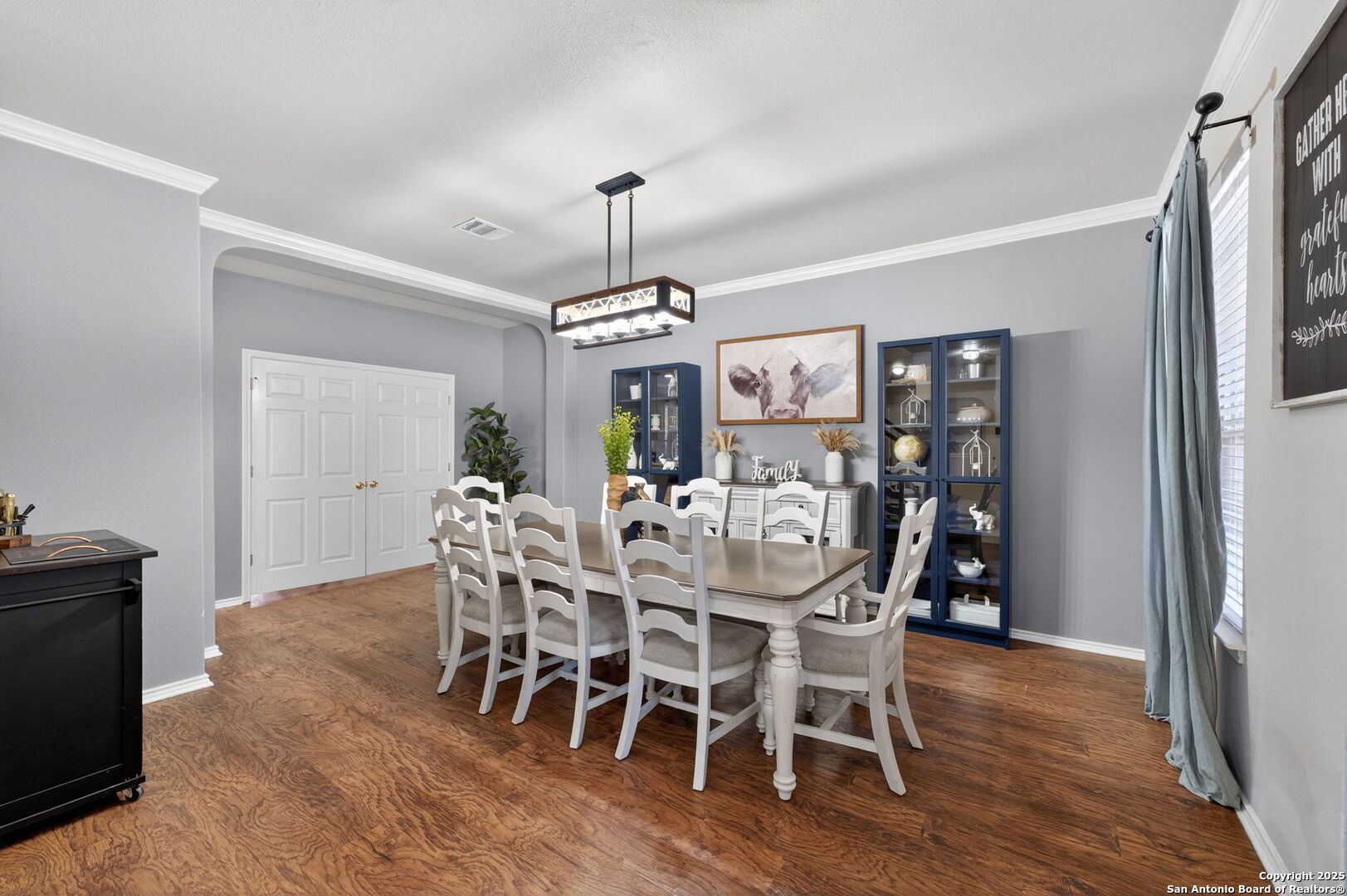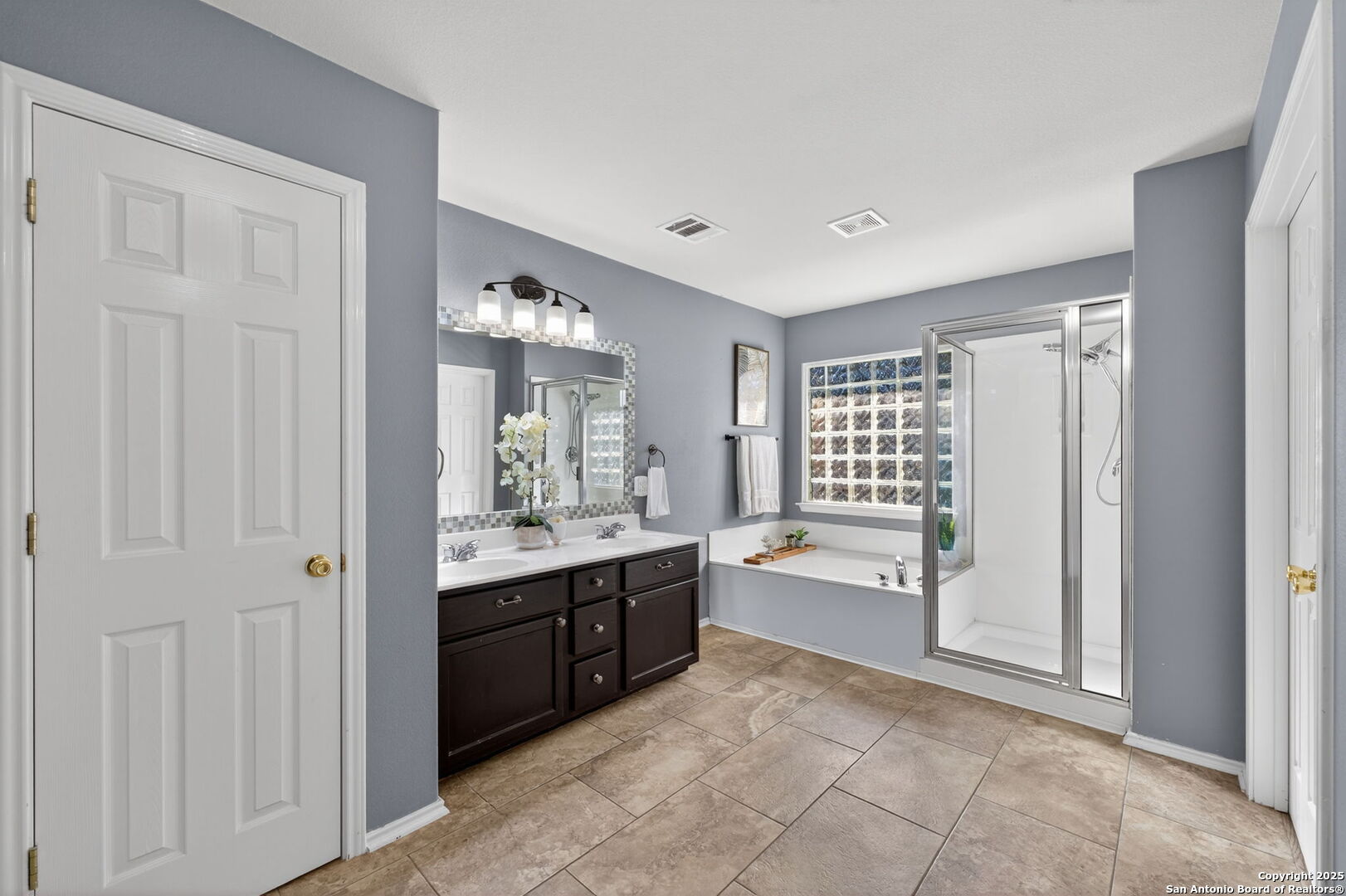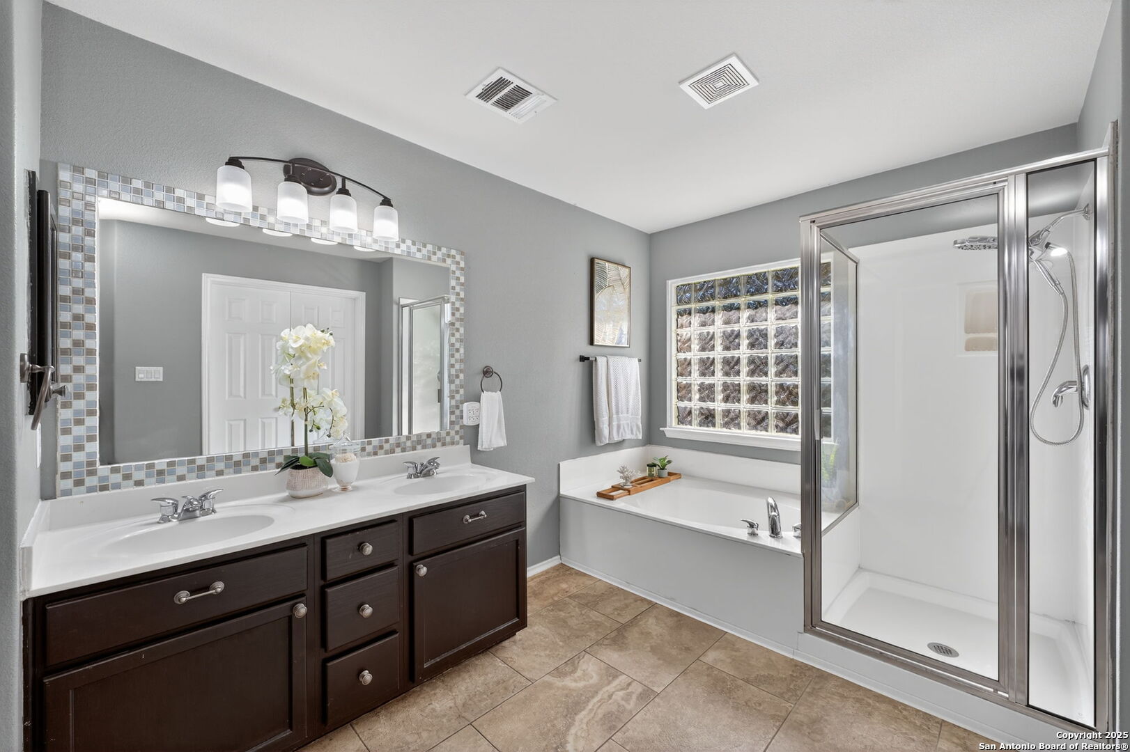 Welcome to Steubing Ranch, where comfort, style, and convenience come together in this beautifully updated 3-bedroom, 2.5-bathroom home! From the moment you arrive, you'll appreciate that this property is truly move-in ready, complete with all appliances included-refrigerator, washer, dryer, dishwasher, microwave, and stove. Inside, the home showcases numerous upgrades, including fresh interior paint, updated lighting, a modern kitchen backsplash, painted cabinets in both the kitchen and bathrooms, and no carpet throughout! Durable laminate and tile flooring enhance both style and functionality. The inviting living room features a cozy German smear fireplace and flows seamlessly into the open breakfast nook and living area, creating an ideal space for everyday living and entertaining. A formal dining space offers the perfect setting for large family meals and gatherings. Upstairs, all bedrooms are thoughtfully positioned, including the spacious primary suite. The primary bathroom offers a spa-like retreat with dual vanities, a large garden tub, and a walk-in shower. A dedicated office space provides the perfect environment for remote work, studying, or a quiet retreat, while the large game room offers a versatile second living area. Step outside to an expansive backyard designed for relaxation and entertainment. Enjoy the covered patio, ideal for outdoor dining and lounging, along with a large storage shed and an inviting fire pit-perfect for gatherings year-round. The home's location is equally impressive. Just blocks from the neighborhood park and pool, and with easy access to Highway 1604, Highway 281, and I-35, commuting is effortless. Shopping, dining, and entertainment options are all conveniently nearby. This home truly offers it all-space, upgrades, outdoor living, and a prime location. Schedule your showing today and experience everything this exceptional Steubing Ranch home has to offer.