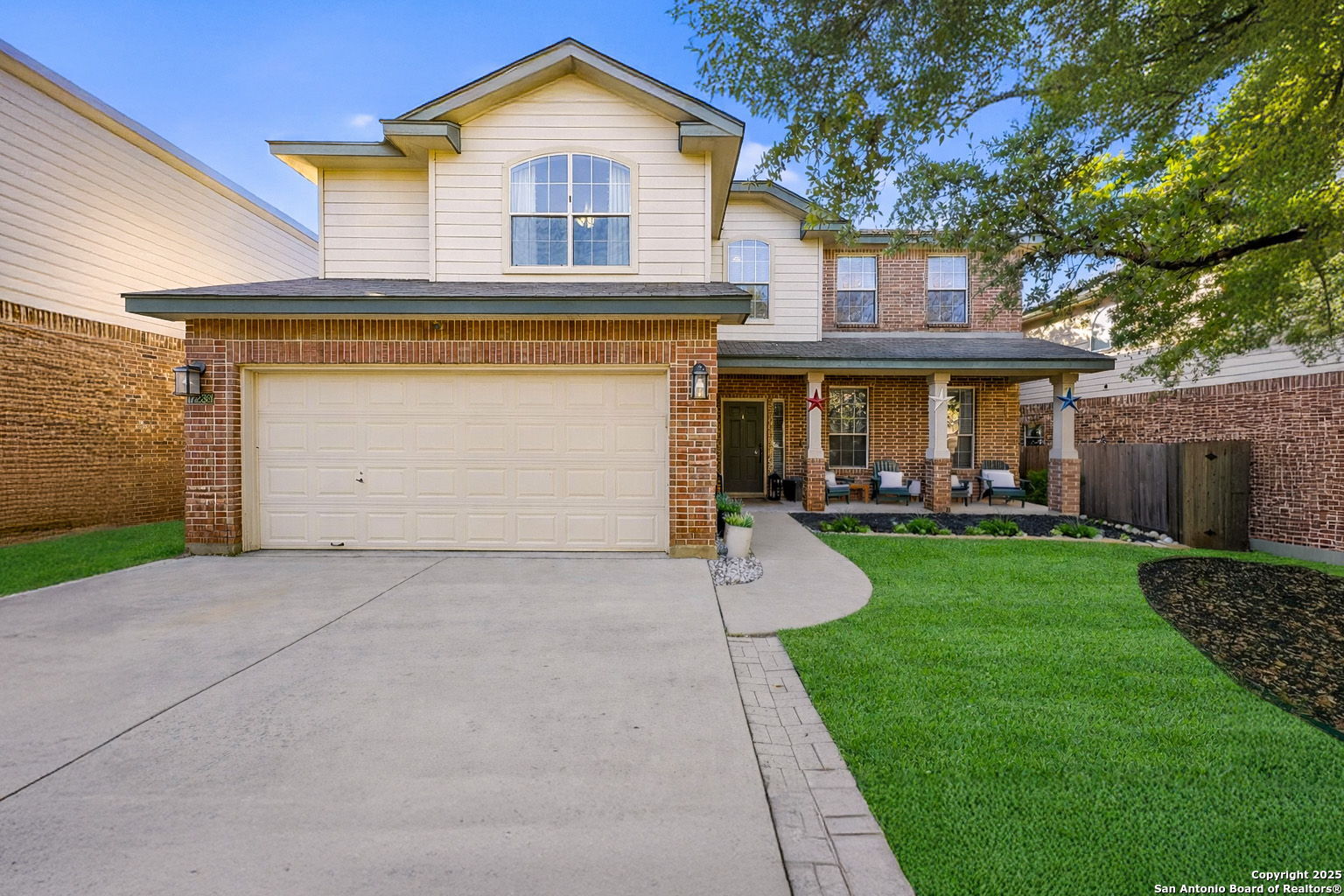 Welcome to Steubing Ranch, where comfort, style, and convenience come together in this beautifully updated 3-bedroom, 2.5-bathroom home! From the moment you arrive, you'll appreciate that this property is truly move-in ready, complete with all appliances included-refrigerator, washer, dryer, dishwasher, microwave, and stove. Inside, the home showcases numerous upgrades, including fresh interior paint, updated lighting, a modern kitchen backsplash, painted cabinets in both the kitchen and bathrooms, and no carpet throughout! Durable laminate and tile flooring enhance both style and functionality. The inviting living room features a cozy German smear fireplace and flows seamlessly into the open breakfast nook and living area, creating an ideal space for everyday living and entertaining. A formal dining space offers the perfect setting for large family meals and gatherings. Upstairs, all bedrooms are thoughtfully positioned, including the spacious primary suite. The primary bathroom offers a spa-like retreat with dual vanities, a large garden tub, and a walk-in shower. A dedicated office space provides the perfect environment for remote work, studying, or a quiet retreat, while the large game room offers a versatile second living area. Step outside to an expansive backyard designed for relaxation and entertainment. Enjoy the covered patio, ideal for outdoor dining and lounging, along with a large storage shed and an inviting fire pit-perfect for gatherings year-round. The home's location is equally impressive. Just blocks from the neighborhood park and pool, and with easy access to Highway 1604, Highway 281, and I-35, commuting is effortless. Shopping, dining, and entertainment options are all conveniently nearby. This home truly offers it all-space, upgrades, outdoor living, and a prime location. Schedule your showing today and experience everything this exceptional Steubing Ranch home has to offer.