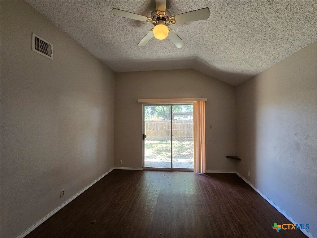 3/2/1 Garden Home with Fireplace. Features Include Stove /Oven Range Electric, Dishwasher, Breakfast Bar, High Ceilings, Ceiling Fans, Open Kitchen & Living Room, Dining Room & Primary Bedroom Have Sliding Glass Doors for Access to Fenced Side & Backyard, Carpet and Linoleum Flooring, Wood Burning Fireplace in Living Room, Vanity and Shower Tub Combo in Hall Bathroom, Primary Bathroom has 1 Vanity/Shower Tub Combo and Make Up Area, Spacious Bedrooms, W/D Connections, and an Oversized 1 Car Garage, Patio Slab and Wood Fence in Back Yard! NBISD. 2 Pets Max. 45lbs Max.