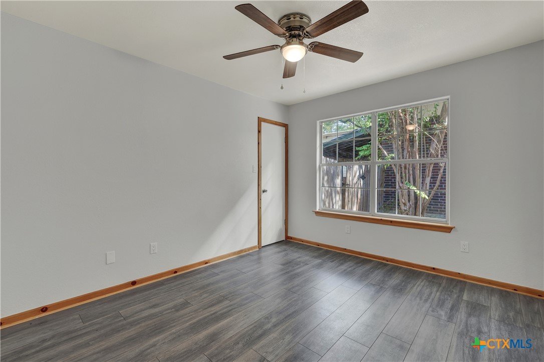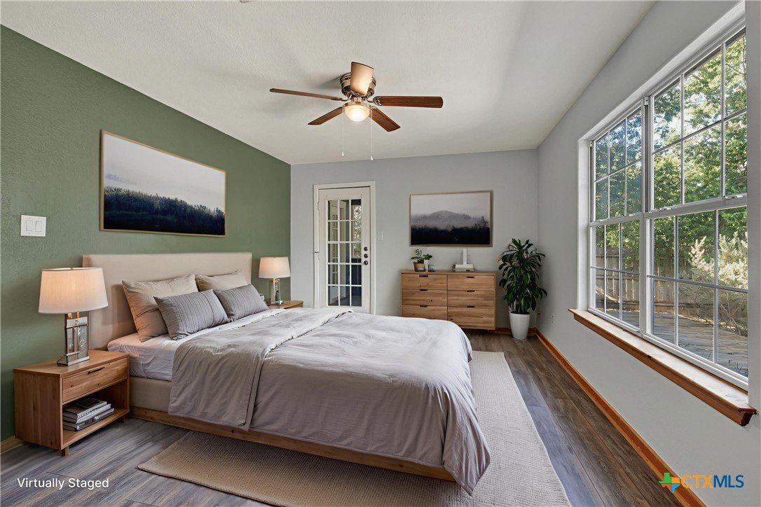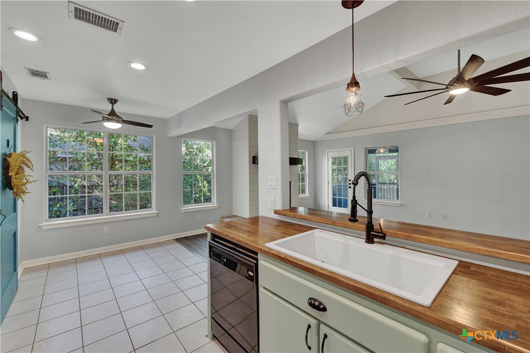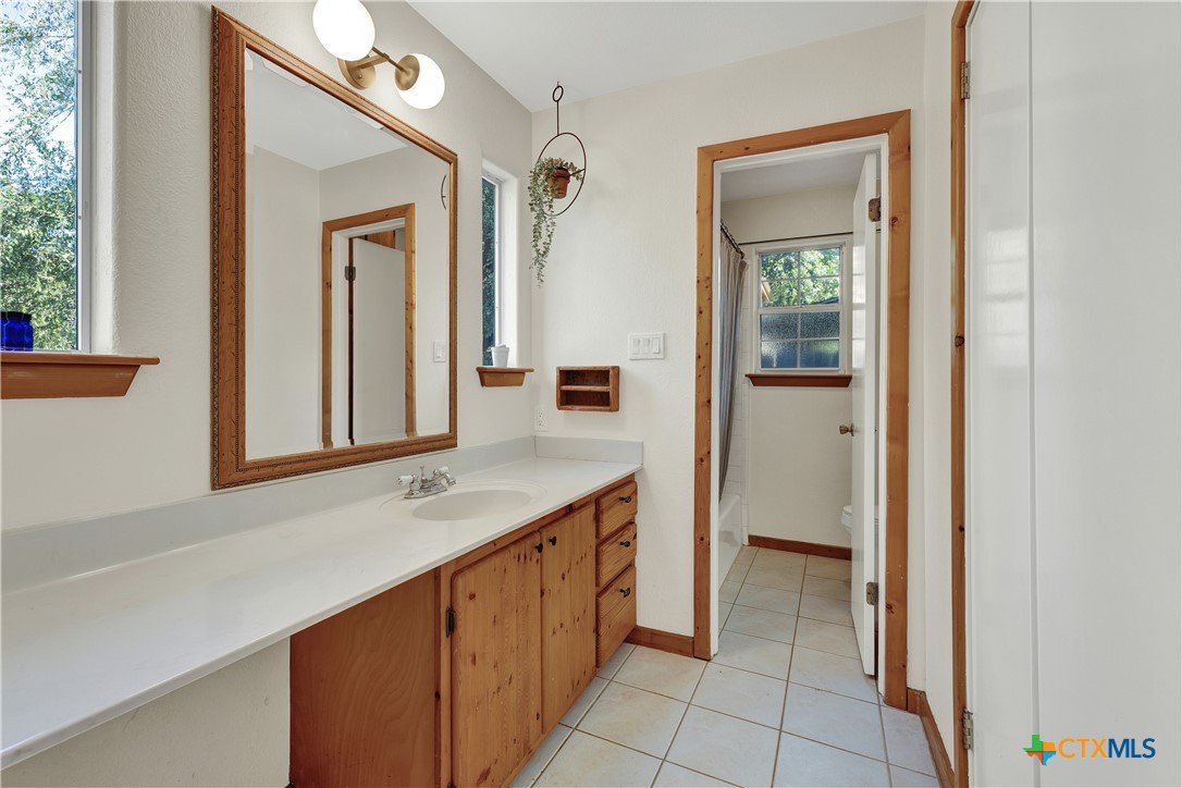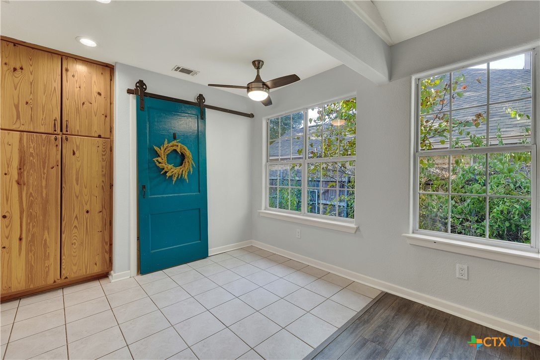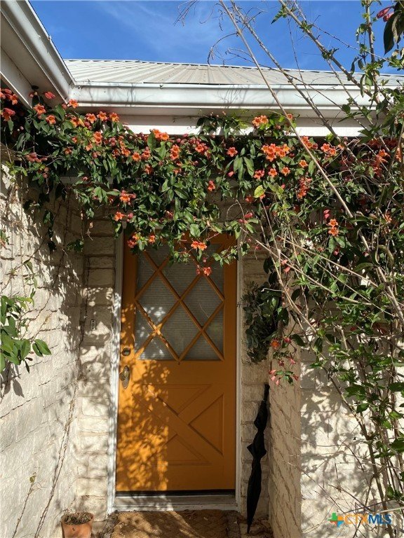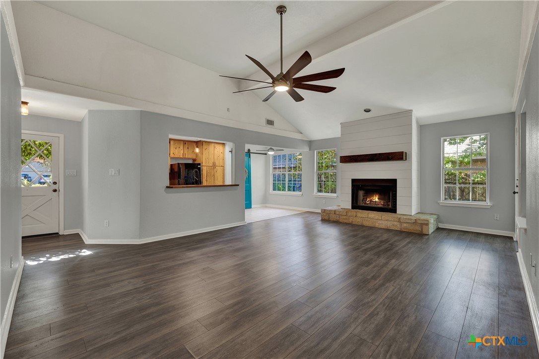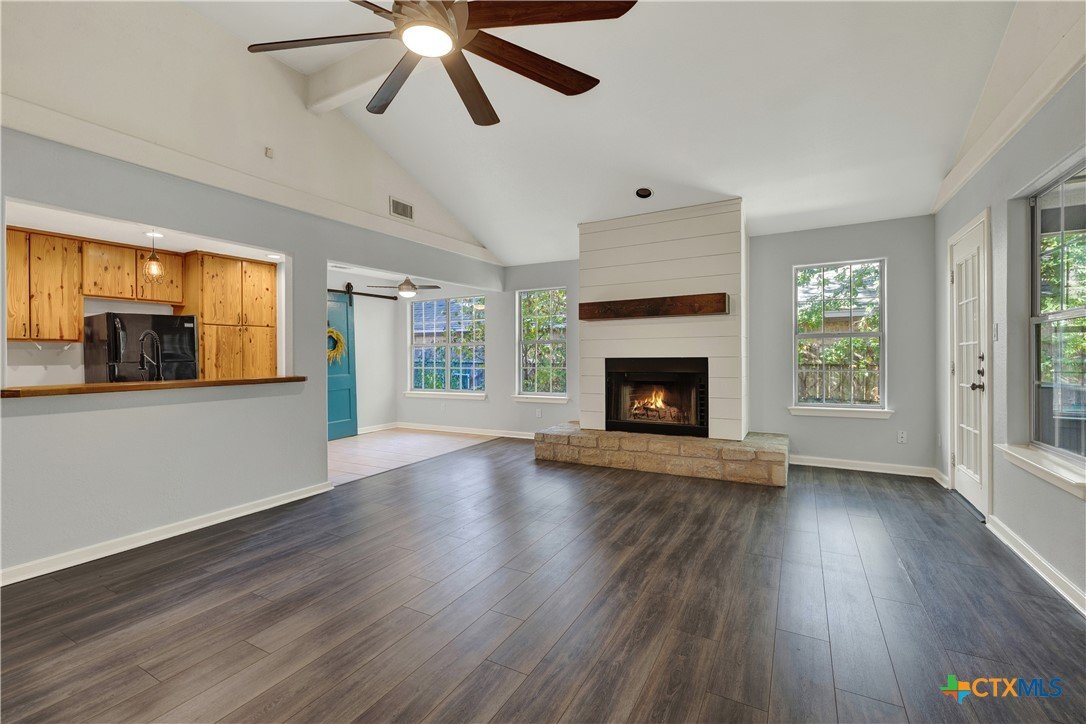 This charming single-family home is nestled in the desirable Oak Knoll neighborhood, close to downtown San Marcos, Crockett Elementary, and The Texas State bus route. The property features beautifully designed front and back gardens with native and adaptive landscaping that will burst into color come spring. Two raised garden beds in the backyard and a raised kitchen garden with a trellis in the front are ready for fall planting. A chicken coop with external nesting boxes makes gathering fresh eggs part of the morning routine. Inside, the home is filled with natural light from abundant windows. The spacious living room features a raised ceiling and a wood-burning fireplace that gives the space an easy, comfortable feel. Custom matching cabinetry adds charm and continuity throughout the home, and the kitchen offers great storage and a clever pantry design, connecting seamlessly to the dining space. The screened-in patio is accessible from both the living room and primary bedroom and is perfect for relaxing or entertaining almost year round. The primary suite is privately situated off the living area, while the secondary bedrooms are down their own hallway off the front entry. Additional highlights include large walk-in closets, excellent storage, a metal roof, gutters, and a French drain system. This is a home that has been thoughtfully cared for and is ready for its next chapter.