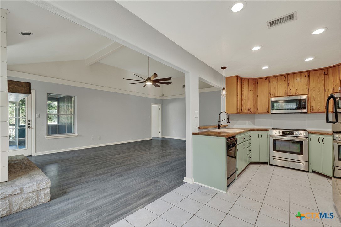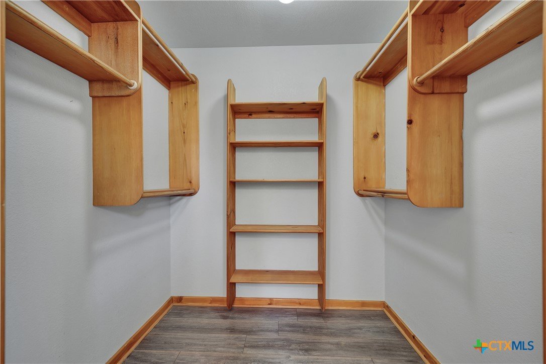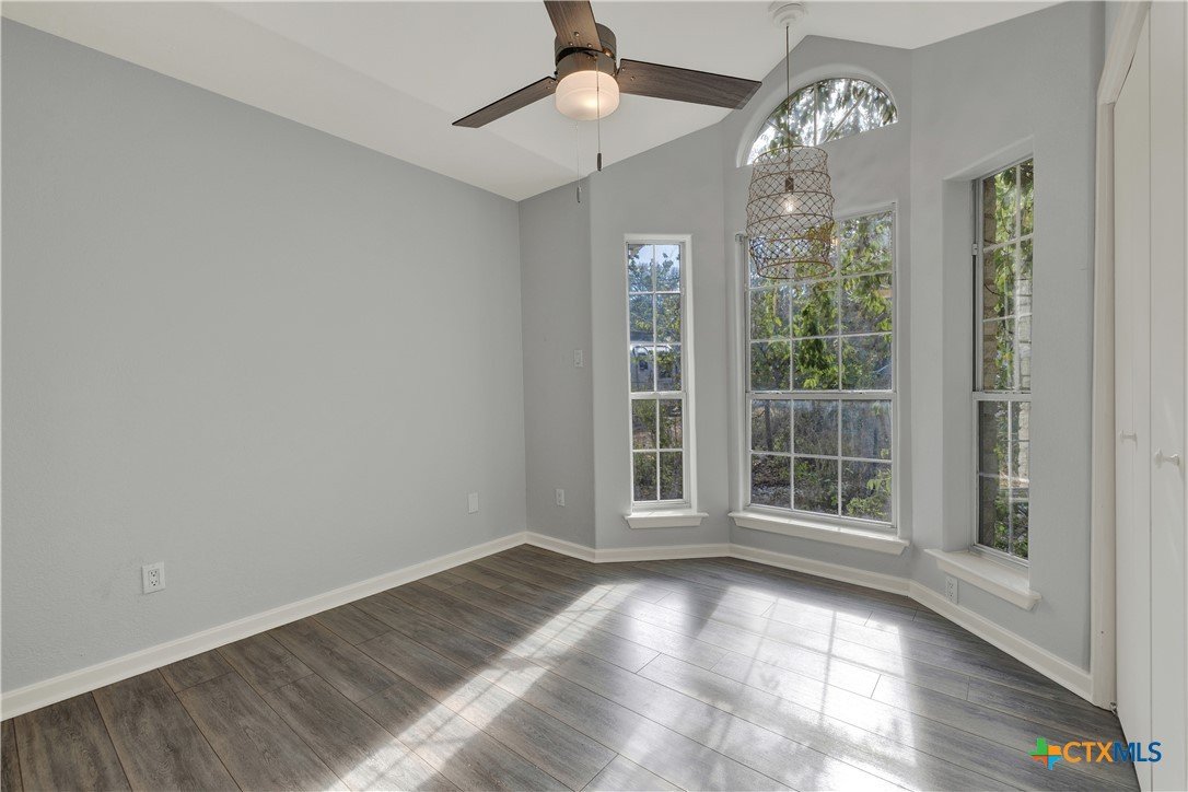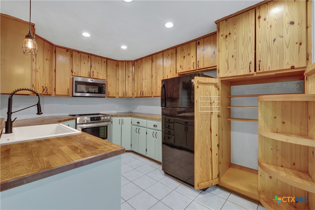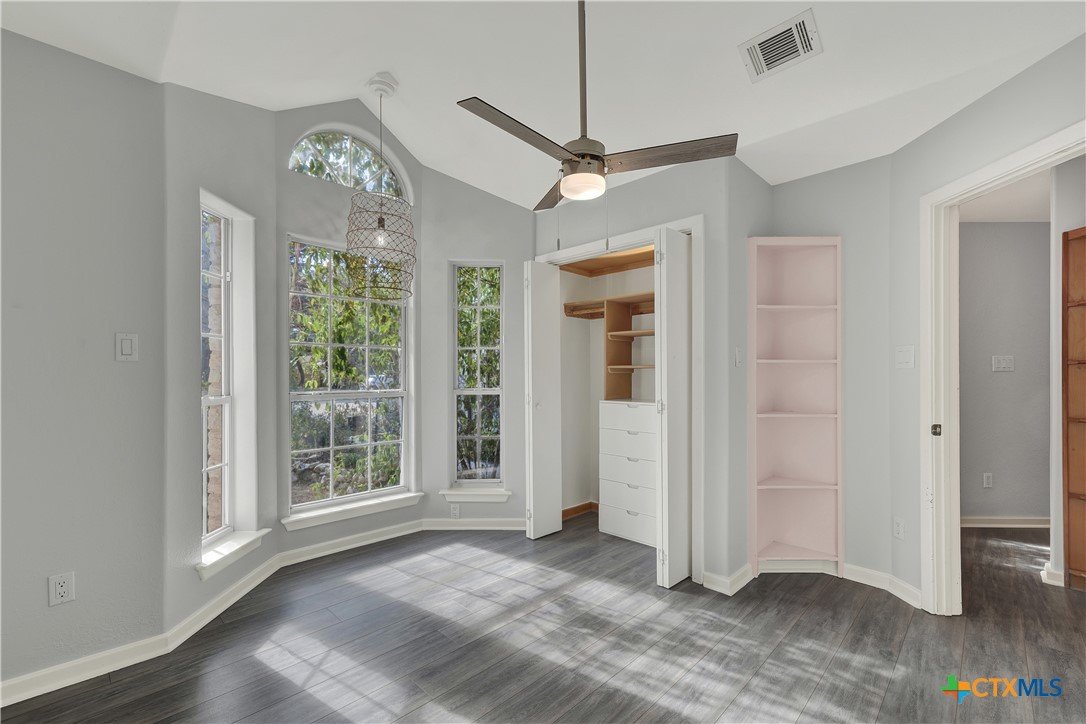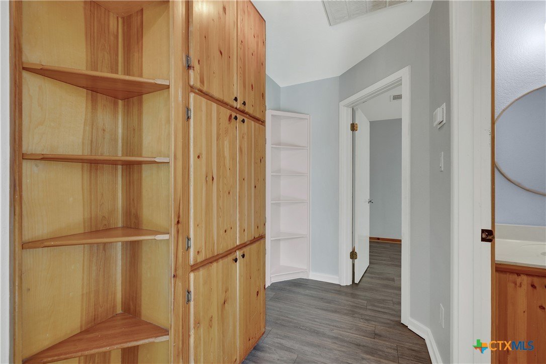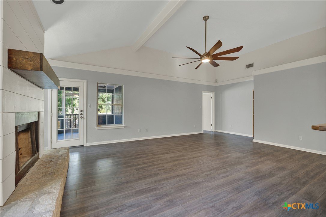 This charming single-family home is nestled in the desirable Oak Knoll neighborhood, close to downtown San Marcos, Crockett Elementary, and The Texas State bus route. The property features beautifully designed front and back gardens with native and adaptive landscaping that will burst into color come spring. Two raised garden beds in the backyard and a raised kitchen garden with a trellis in the front are ready for fall planting. A chicken coop with external nesting boxes makes gathering fresh eggs part of the morning routine. Inside, the home is filled with natural light from abundant windows. The spacious living room features a raised ceiling and a wood-burning fireplace that gives the space an easy, comfortable feel. Custom matching cabinetry adds charm and continuity throughout the home, and the kitchen offers great storage and a clever pantry design, connecting seamlessly to the dining space. The screened-in patio is accessible from both the living room and primary bedroom and is perfect for relaxing or entertaining almost year round. The primary suite is privately situated off the living area, while the secondary bedrooms are down their own hallway off the front entry. Additional highlights include large walk-in closets, excellent storage, a metal roof, gutters, and a French drain system. This is a home that has been thoughtfully cared for and is ready for its next chapter.