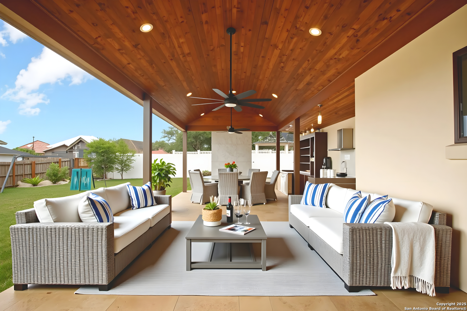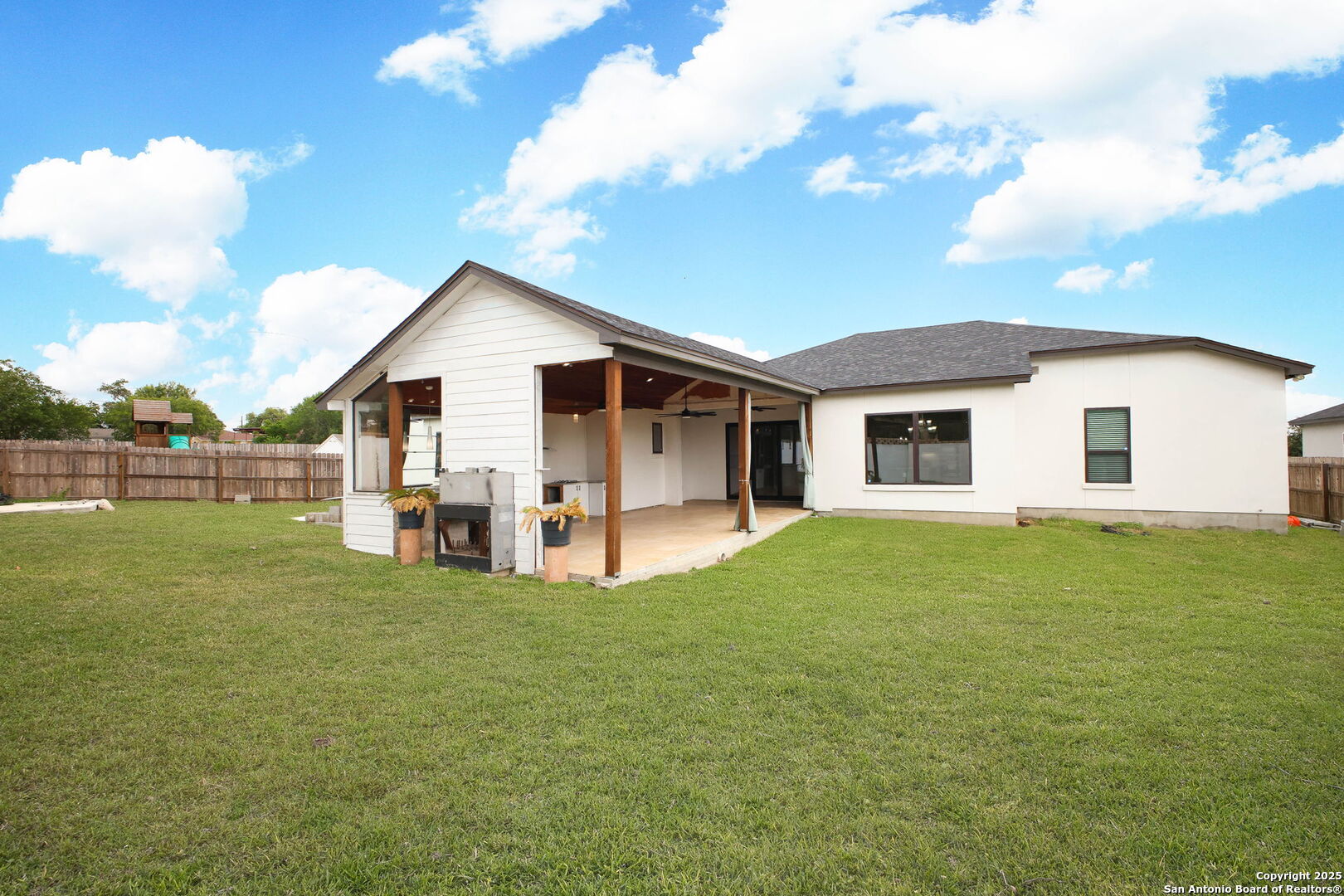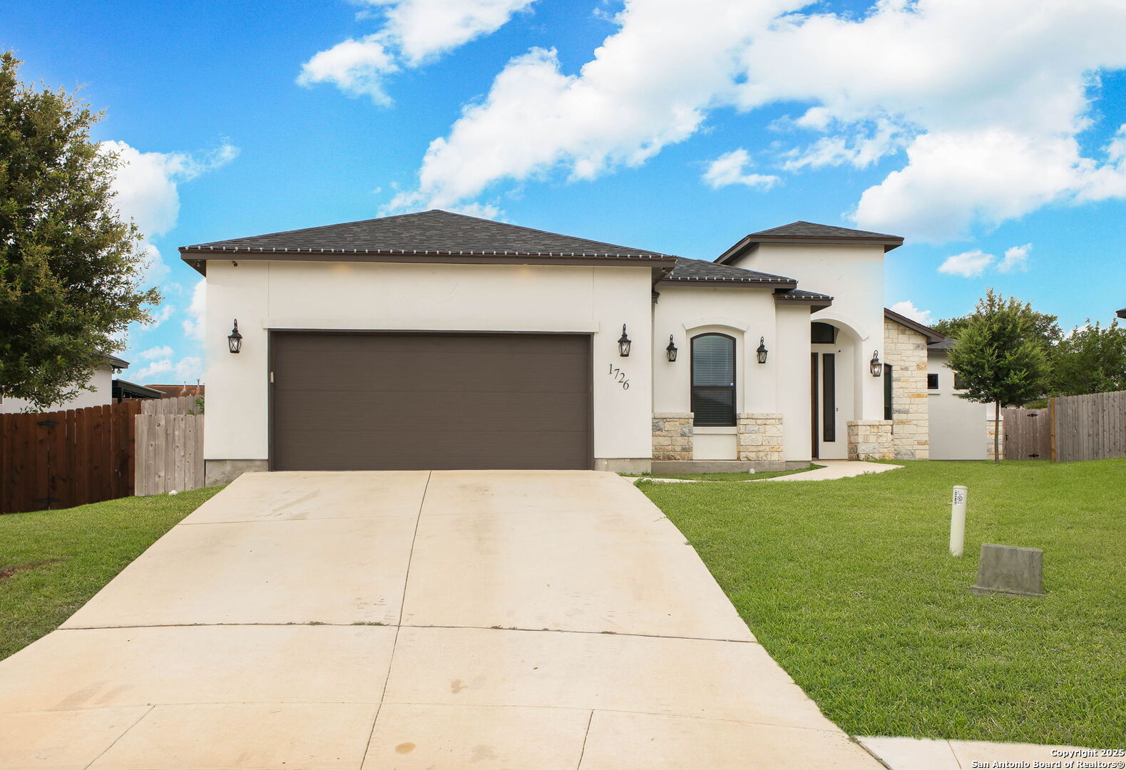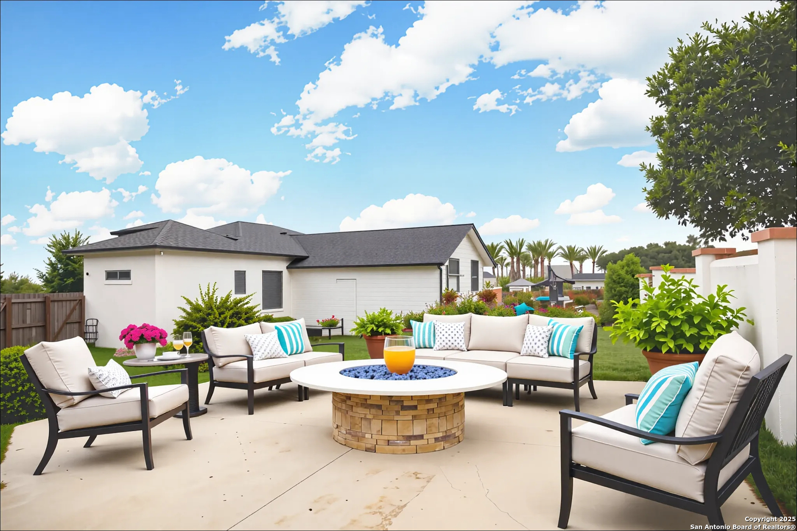 Seller offers $10,000 toward buyer closing costs or an interest rate buydown with an acceptable offer. Craving year round resort vibes? 1726 Claudia Vista is where every sunrise feels like a vacation-without ever leaving South San Antonio. This 4bed, 3bath, 2,195sqft custom Spanish style showpiece (built 2020) delivers intention in every detail. Step through the carved wood door to soaring tray ceilings, sun warmed ceramic tile, and sleek architectural lines that keep the vibe airy yet grounded. The chef's hub serves up granite counters, soft close cabinetry, gas cooktop, and an island ready for tamale making marathons or Monday night homework. Retreat to a primary suite with room to breathe-spacious bedroom, walk-in closet, and a spa-inspired bath featuring double vanity and rainfall walk-in shower built for true relaxation. Three additional bedrooms gives plenty of elbow room. But the real magic happens outdoors. Slide open the glass door and step into an alfresco living room complete with stone fireplace, built-in grill + sink, TV hookups, and space for a long table for gatherings -or a solo sunrise coffee. Location perks? Three minutes to Palo Alto College, fast lanes to I410 & I35, and a straight shot to Toyota, Downtown, or Mission Reach trails-so you spend less time commuting and more time enjoying your personal oasis.