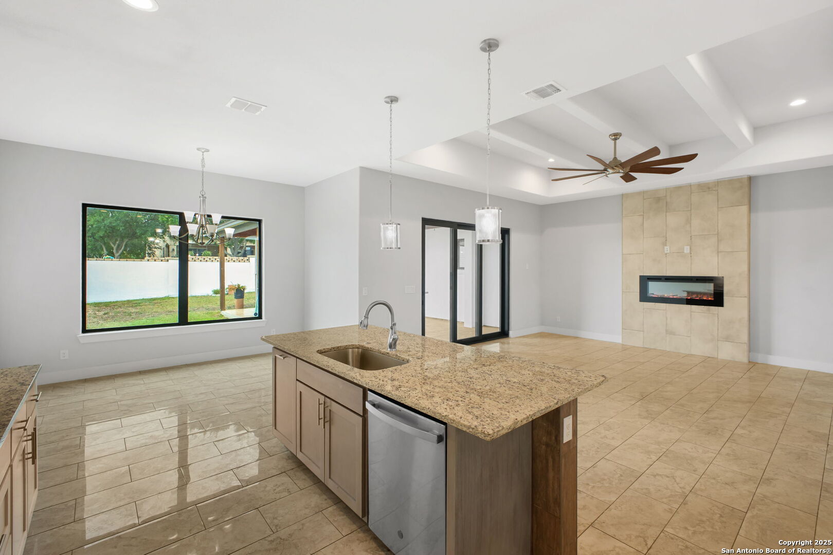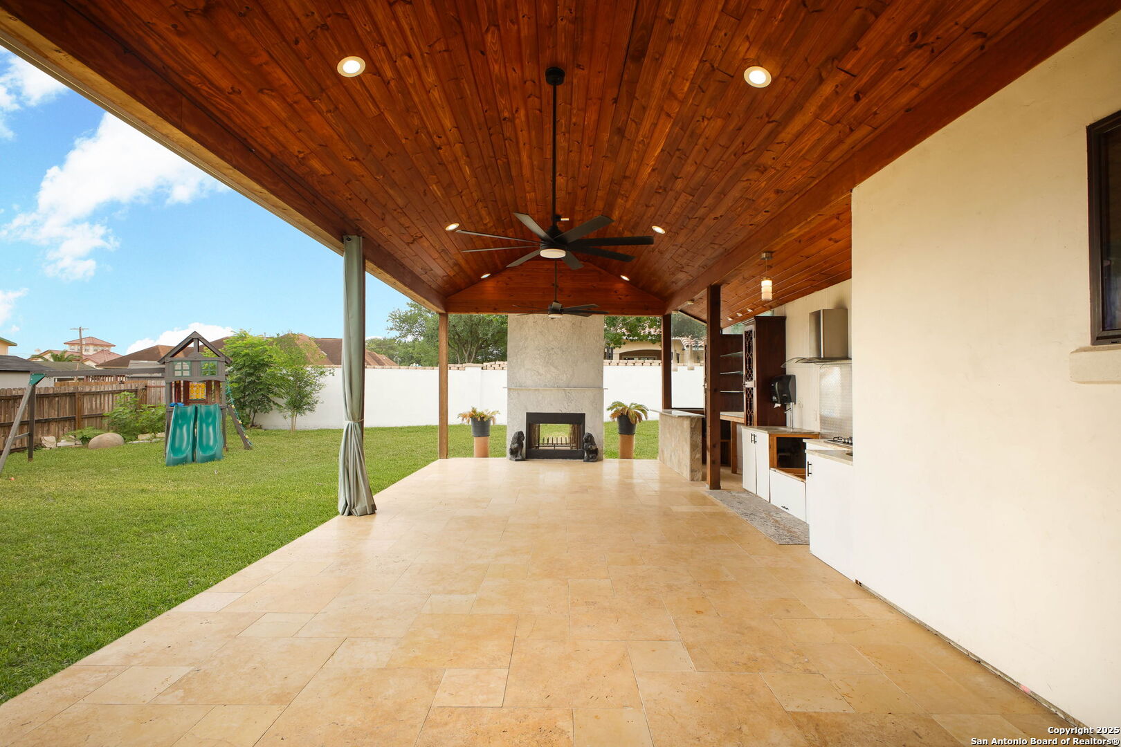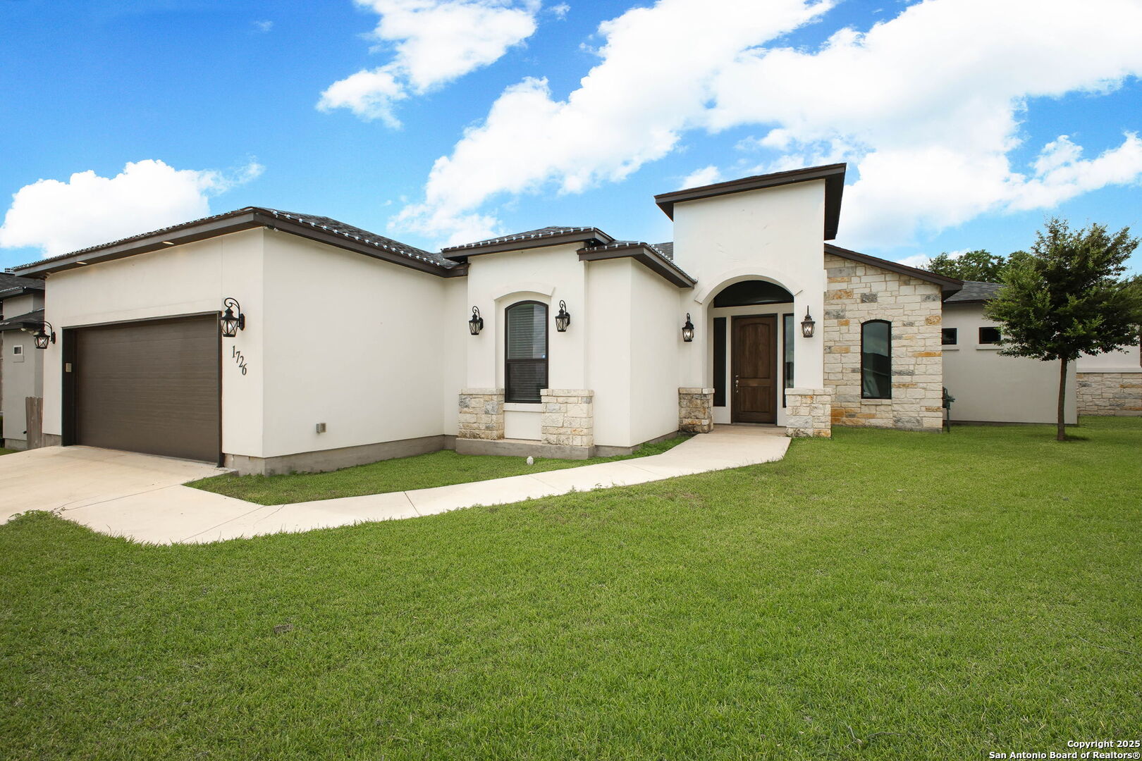 Seller offers $10,000 toward buyer closing costs or an interest rate buydown with an acceptable offer. Craving year round resort vibes? 1726 Claudia Vista is where every sunrise feels like a vacation-without ever leaving South San Antonio. This 4bed, 3bath, 2,195sqft custom Spanish style showpiece (built 2020) delivers intention in every detail. Step through the carved wood door to soaring tray ceilings, sun warmed ceramic tile, and sleek architectural lines that keep the vibe airy yet grounded. The chef's hub serves up granite counters, soft close cabinetry, gas cooktop, and an island ready for tamale making marathons or Monday night homework. Retreat to a primary suite with room to breathe-spacious bedroom, walk-in closet, and a spa-inspired bath featuring double vanity and rainfall walk-in shower built for true relaxation. Three additional bedrooms gives plenty of elbow room. But the real magic happens outdoors. Slide open the glass door and step into an alfresco living room complete with stone fireplace, built-in grill + sink, TV hookups, and space for a long table for gatherings -or a solo sunrise coffee. Location perks? Three minutes to Palo Alto College, fast lanes to I410 & I35, and a straight shot to Toyota, Downtown, or Mission Reach trails-so you spend less time commuting and more time enjoying your personal oasis.