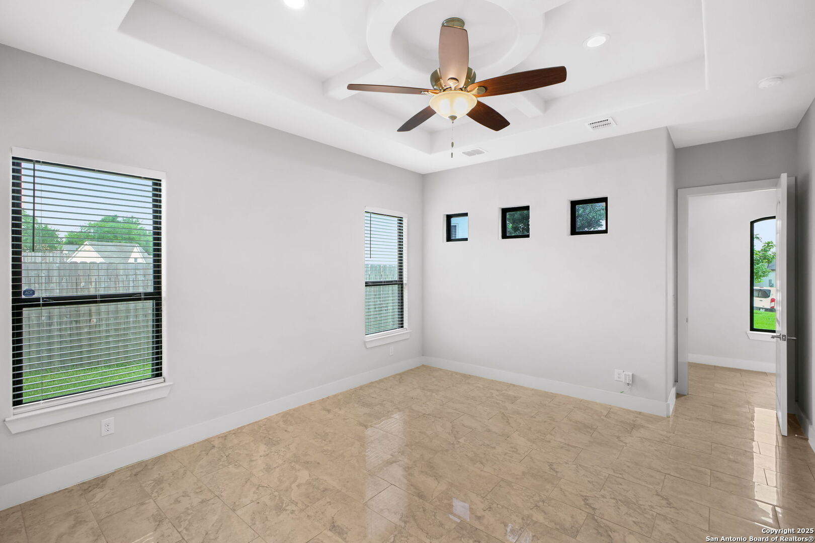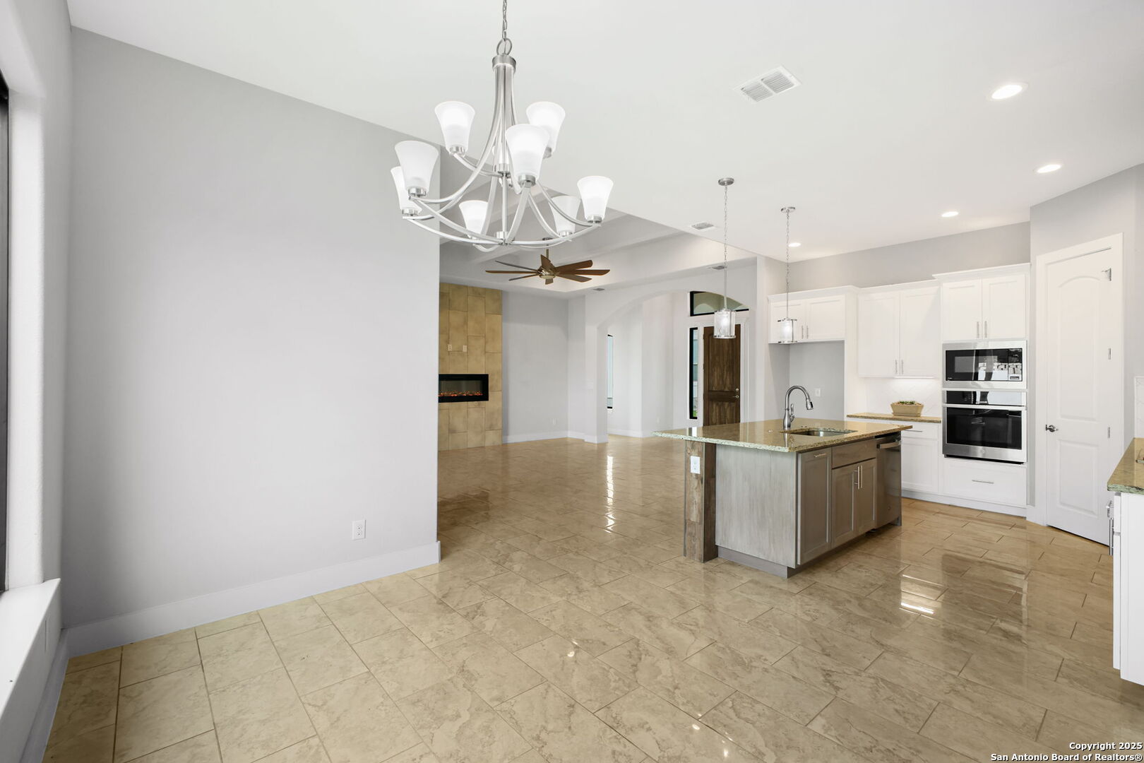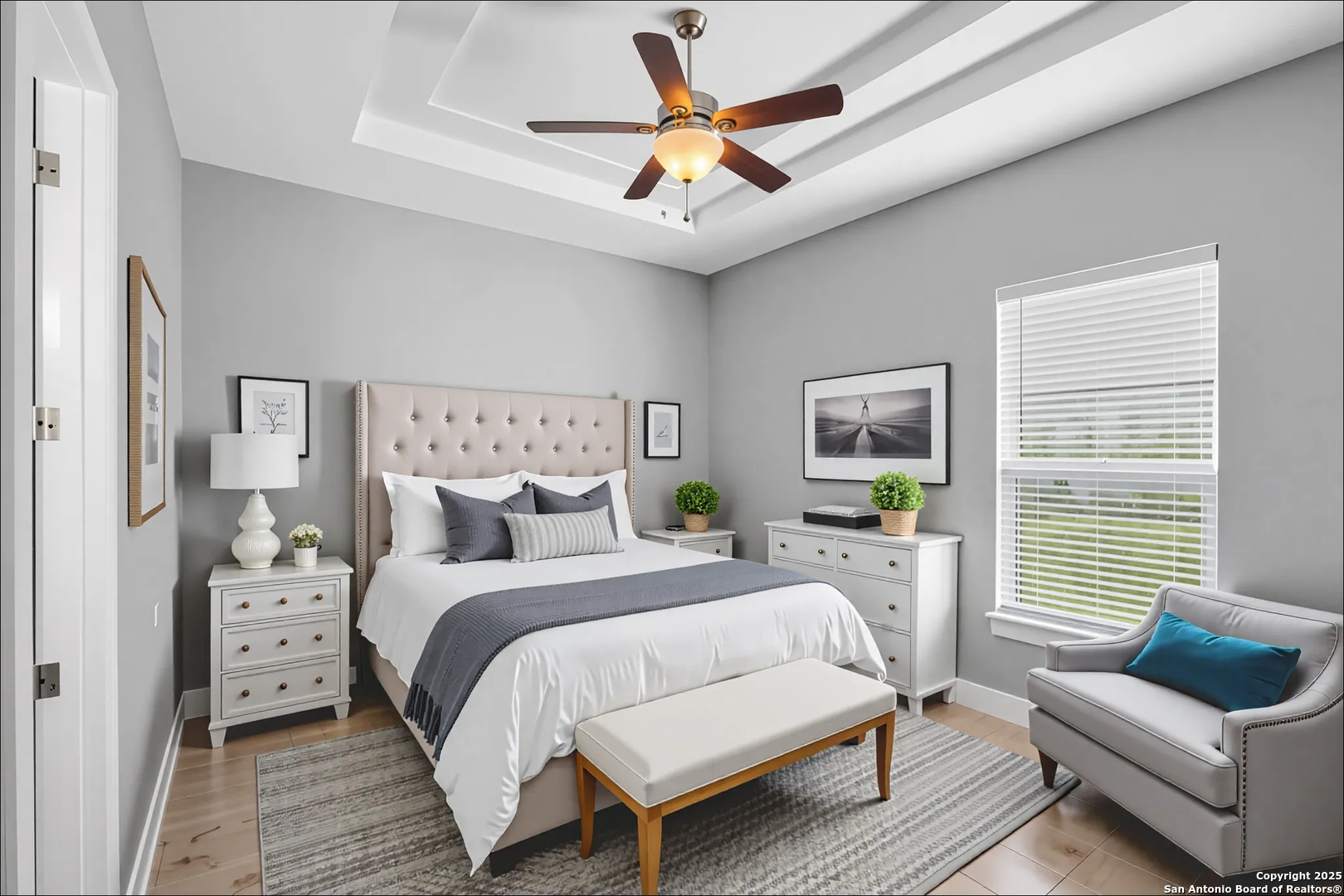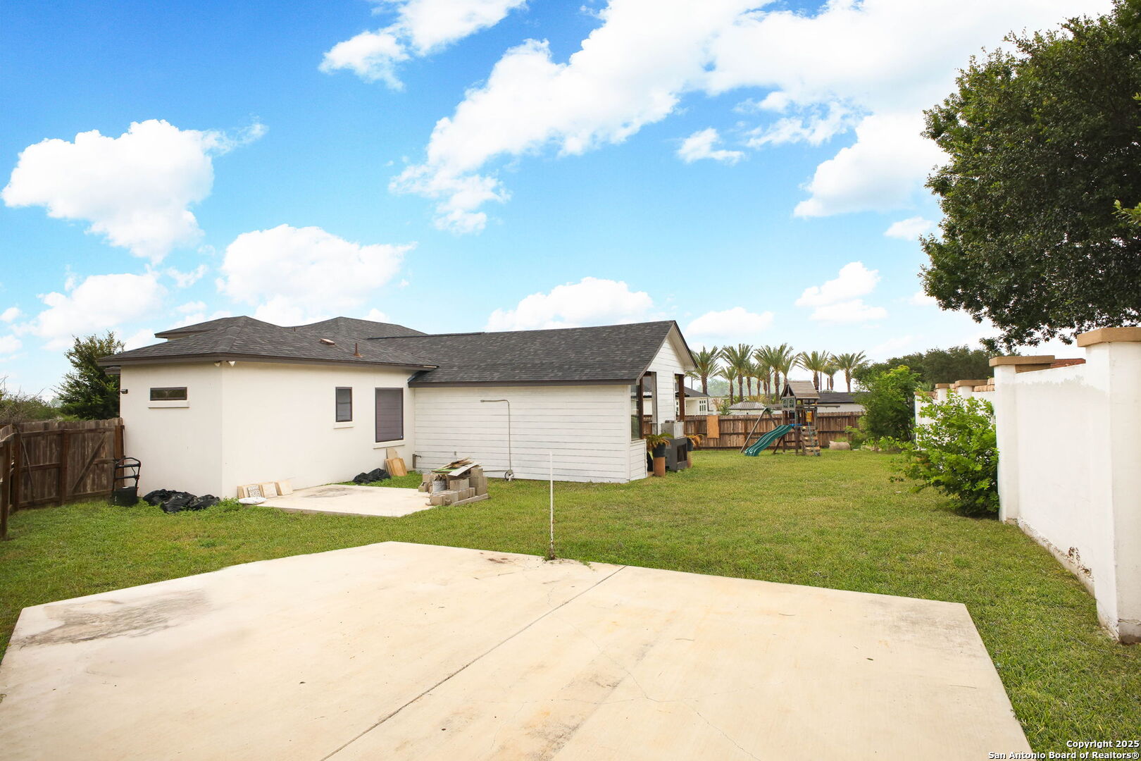 Seller offers $10,000 toward buyer closing costs or an interest rate buydown with an acceptable offer. Craving year round resort vibes? 1726 Claudia Vista is where every sunrise feels like a vacation-without ever leaving South San Antonio. This 4bed, 3bath, 2,195sqft custom Spanish style showpiece (built 2020) delivers intention in every detail. Step through the carved wood door to soaring tray ceilings, sun warmed ceramic tile, and sleek architectural lines that keep the vibe airy yet grounded. The chef's hub serves up granite counters, soft close cabinetry, gas cooktop, and an island ready for tamale making marathons or Monday night homework. Retreat to a primary suite with room to breathe-spacious bedroom, walk-in closet, and a spa-inspired bath featuring double vanity and rainfall walk-in shower built for true relaxation. Three additional bedrooms gives plenty of elbow room. But the real magic happens outdoors. Slide open the glass door and step into an alfresco living room complete with stone fireplace, built-in grill + sink, TV hookups, and space for a long table for gatherings -or a solo sunrise coffee. Location perks? Three minutes to Palo Alto College, fast lanes to I410 & I35, and a straight shot to Toyota, Downtown, or Mission Reach trails-so you spend less time commuting and more time enjoying your personal oasis.