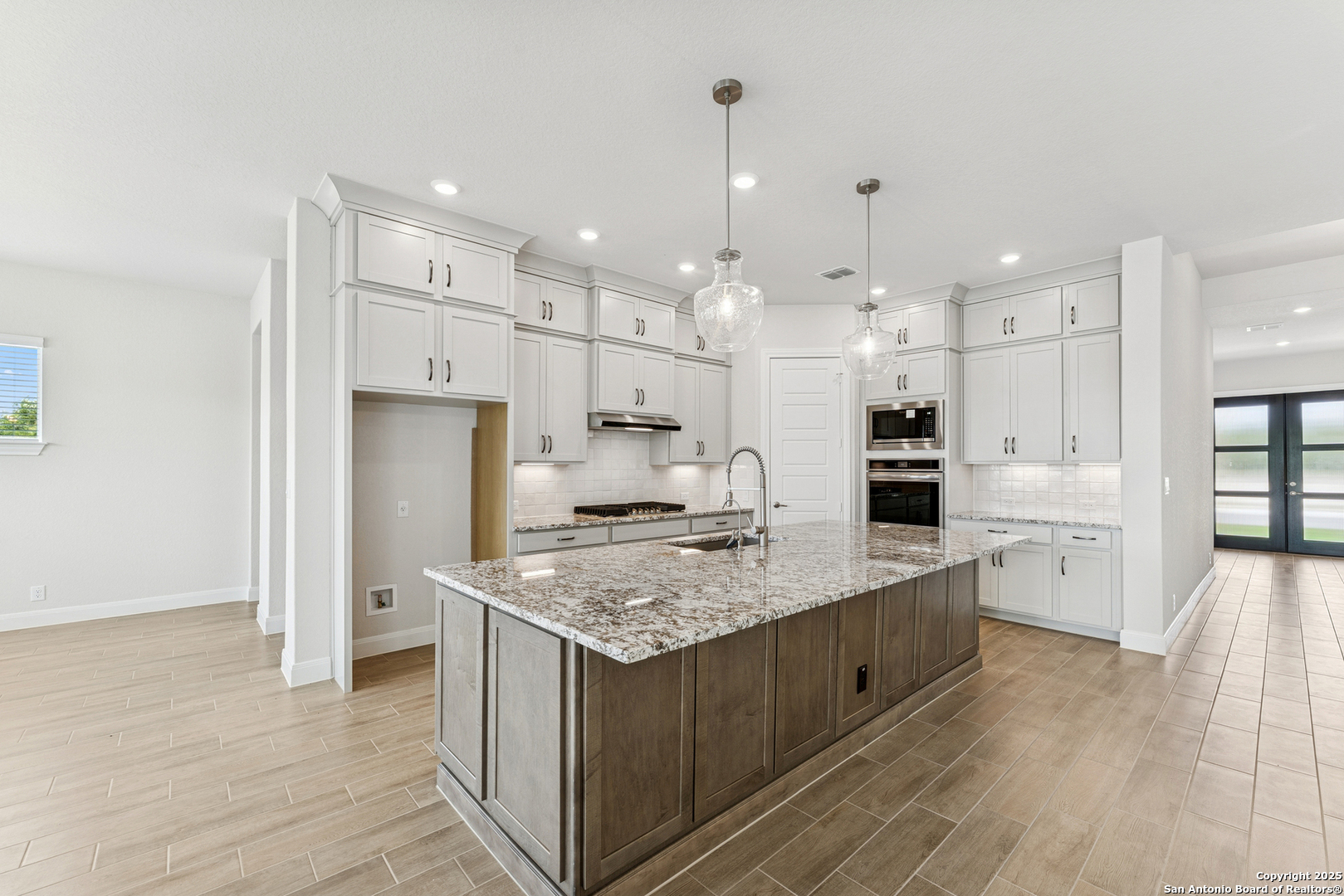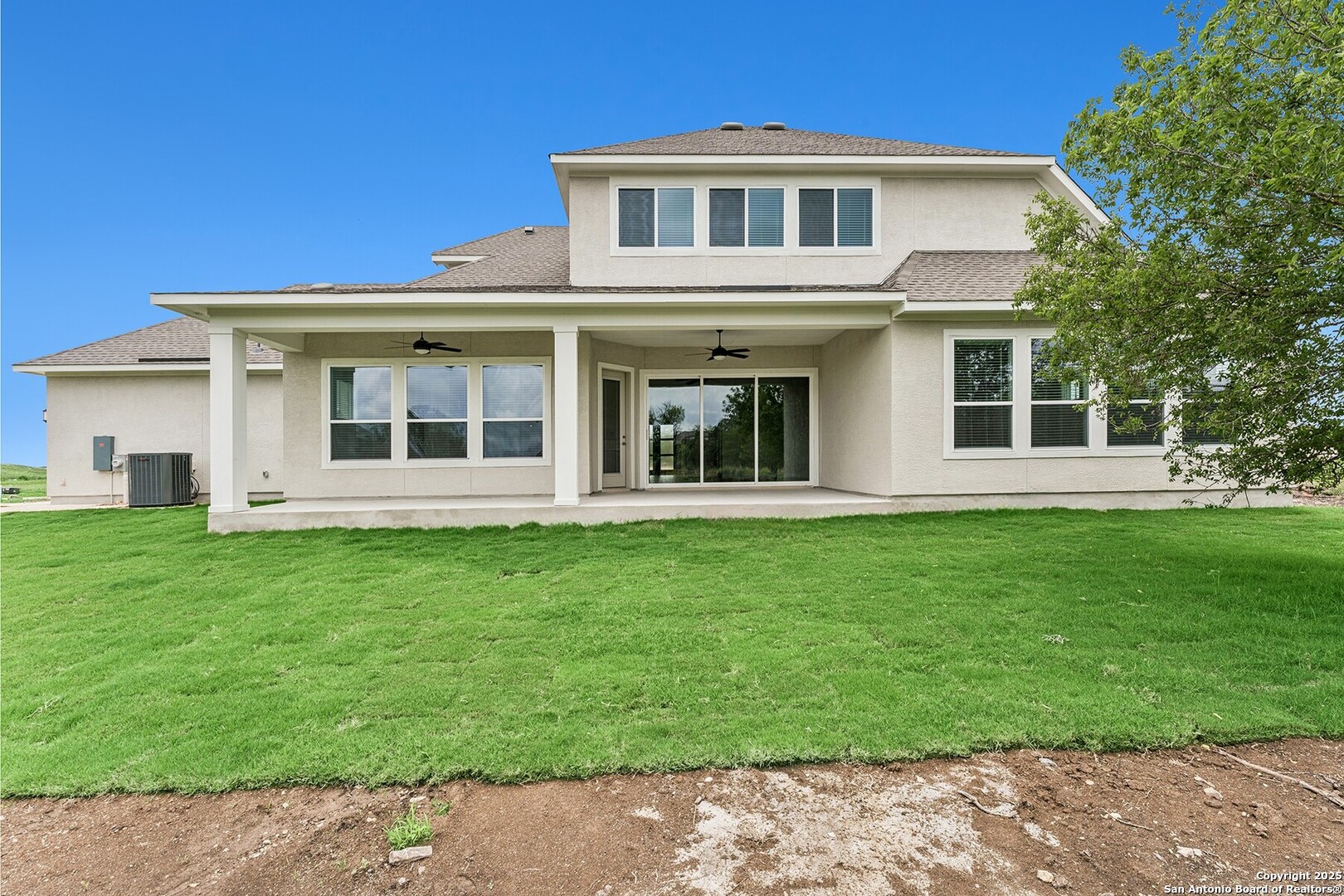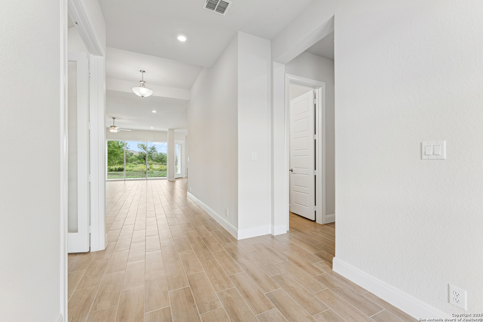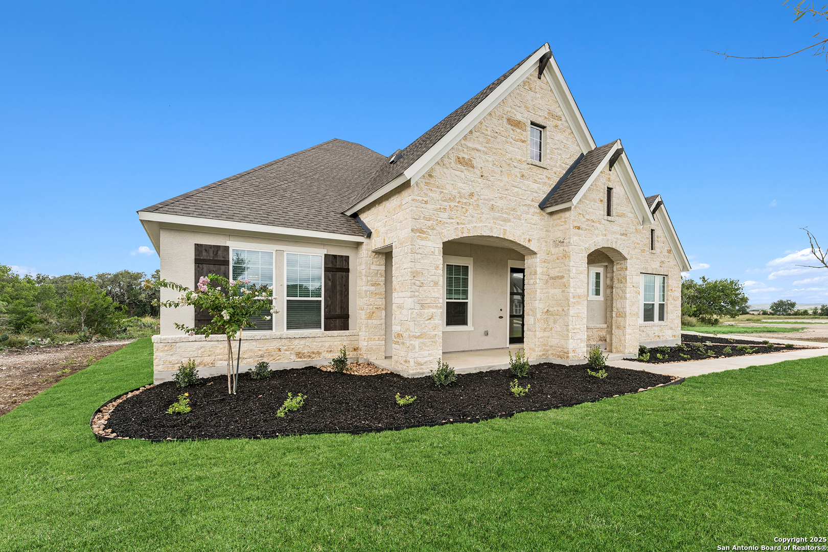 Welcome to your beautiful new home in Megan's Landing! This Sagebrook by David Weekley Homes is wide open like the Texas Hill Country, and welcomes you in through double 8' front doors to this open floor plan with high ceilings and architectural details. Sliding glass doors from the family room bring in so much natural light and open to the extended covered patio, the perfect spot to enjoy an ice-cold beverage on a hot summer day. You'll discover elegant 8' doors throughout the first floor, a spacious Study with French doors, and an enormous Owner's Retreat and relaxing Owner's Bath complete with Super Shower and rainfall showerhead. When family and friends visit you can hang out upstairs in the large Bonus Room with full bath, playing ping pong or watching the latest movie. This beautiful home sits on a lovely 1/2 acre home site and includes blinds, garage door openers, and everything to need to feel right at home! Visit David Weekley Homes at Megan's Landing Team to learn about the industry-leading warranty and energy-efficiency features included with this new home for sale in Castroville, Texas!