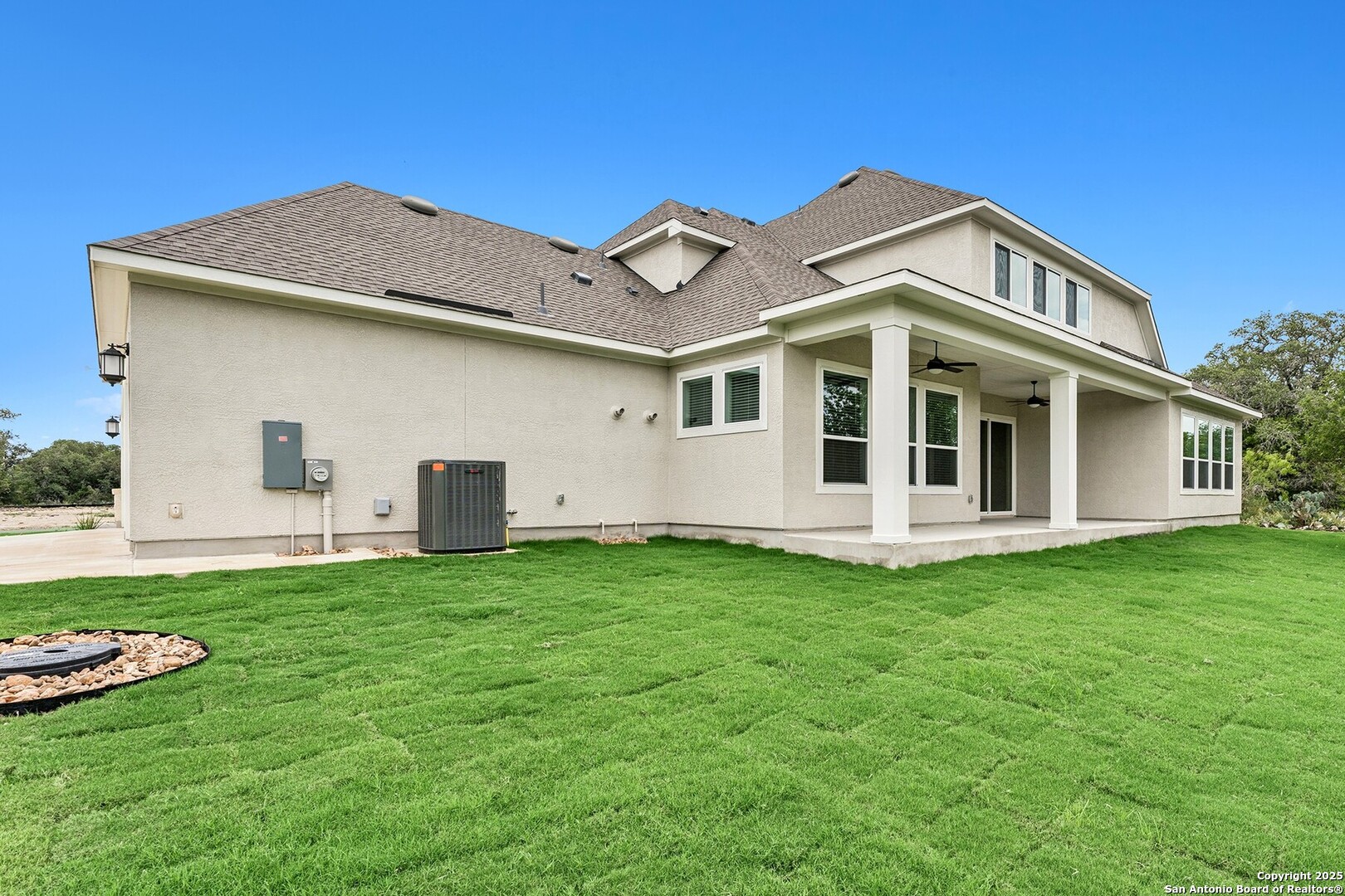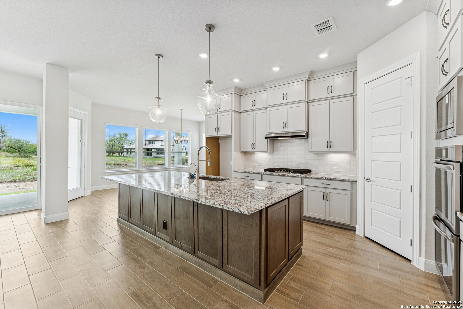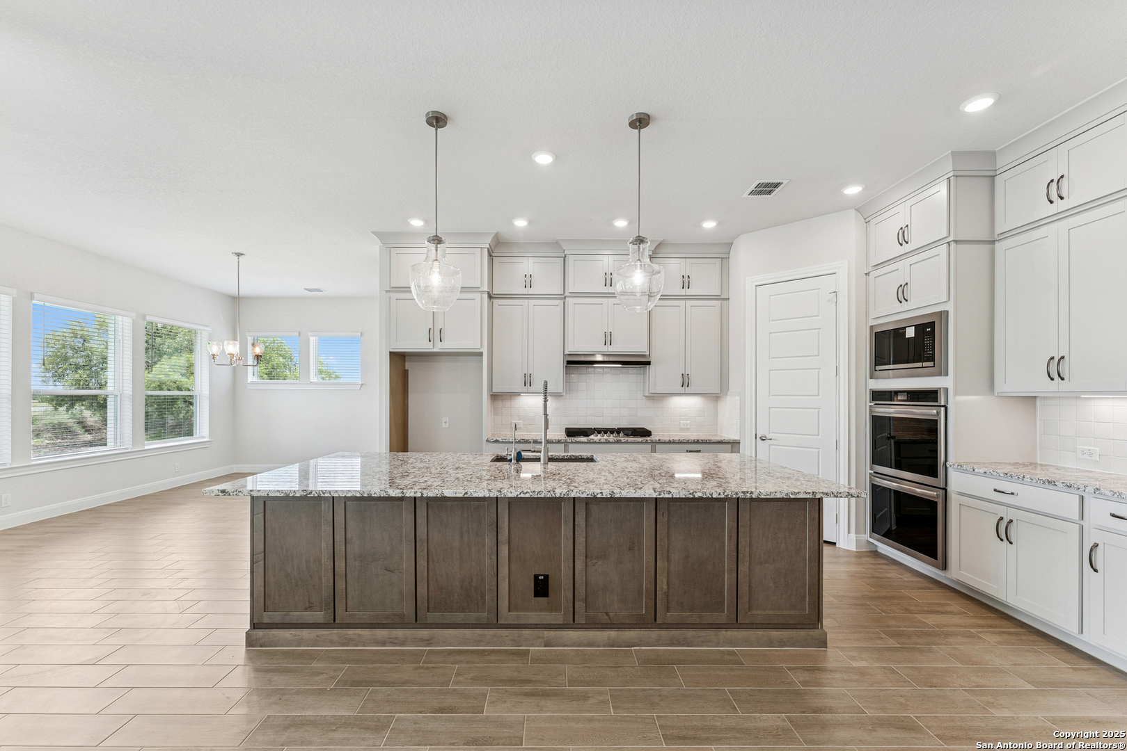 Welcome to your beautiful new home in Megan's Landing! This Sagebrook by David Weekley Homes is wide open like the Texas Hill Country, and welcomes you in through double 8' front doors to this open floor plan with high ceilings and architectural details. Sliding glass doors from the family room bring in so much natural light and open to the extended covered patio, the perfect spot to enjoy an ice-cold beverage on a hot summer day. You'll discover elegant 8' doors throughout the first floor, a spacious Study with French doors, and an enormous Owner's Retreat and relaxing Owner's Bath complete with Super Shower and rainfall showerhead. When family and friends visit you can hang out upstairs in the large Bonus Room with full bath, playing ping pong or watching the latest movie. This beautiful home sits on a lovely 1/2 acre home site and includes blinds, garage door openers, and everything to need to feel right at home! Visit David Weekley Homes at Megan's Landing Team to learn about the industry-leading warranty and energy-efficiency features included with this new home for sale in Castroville, Texas!