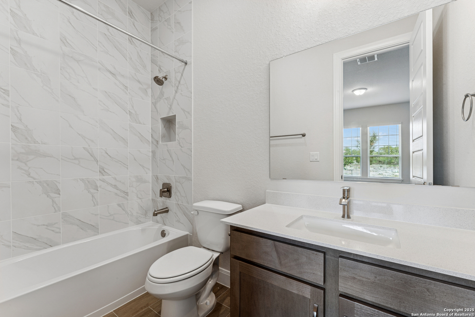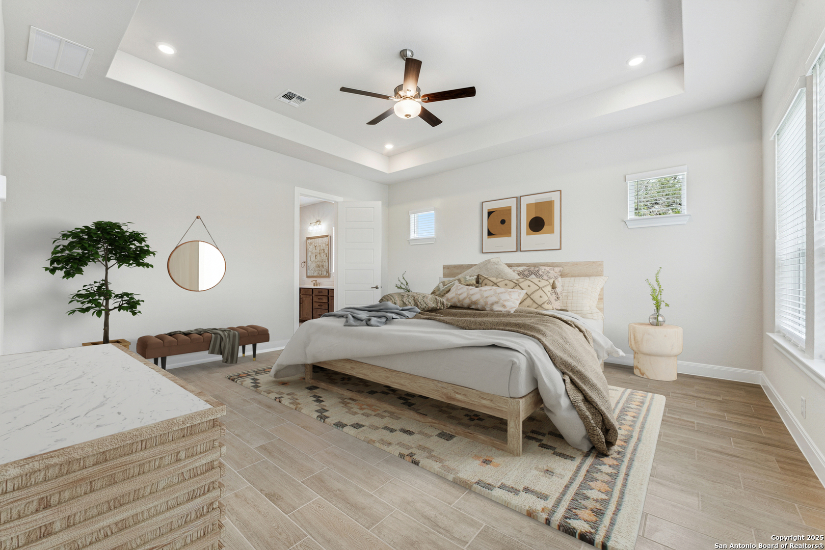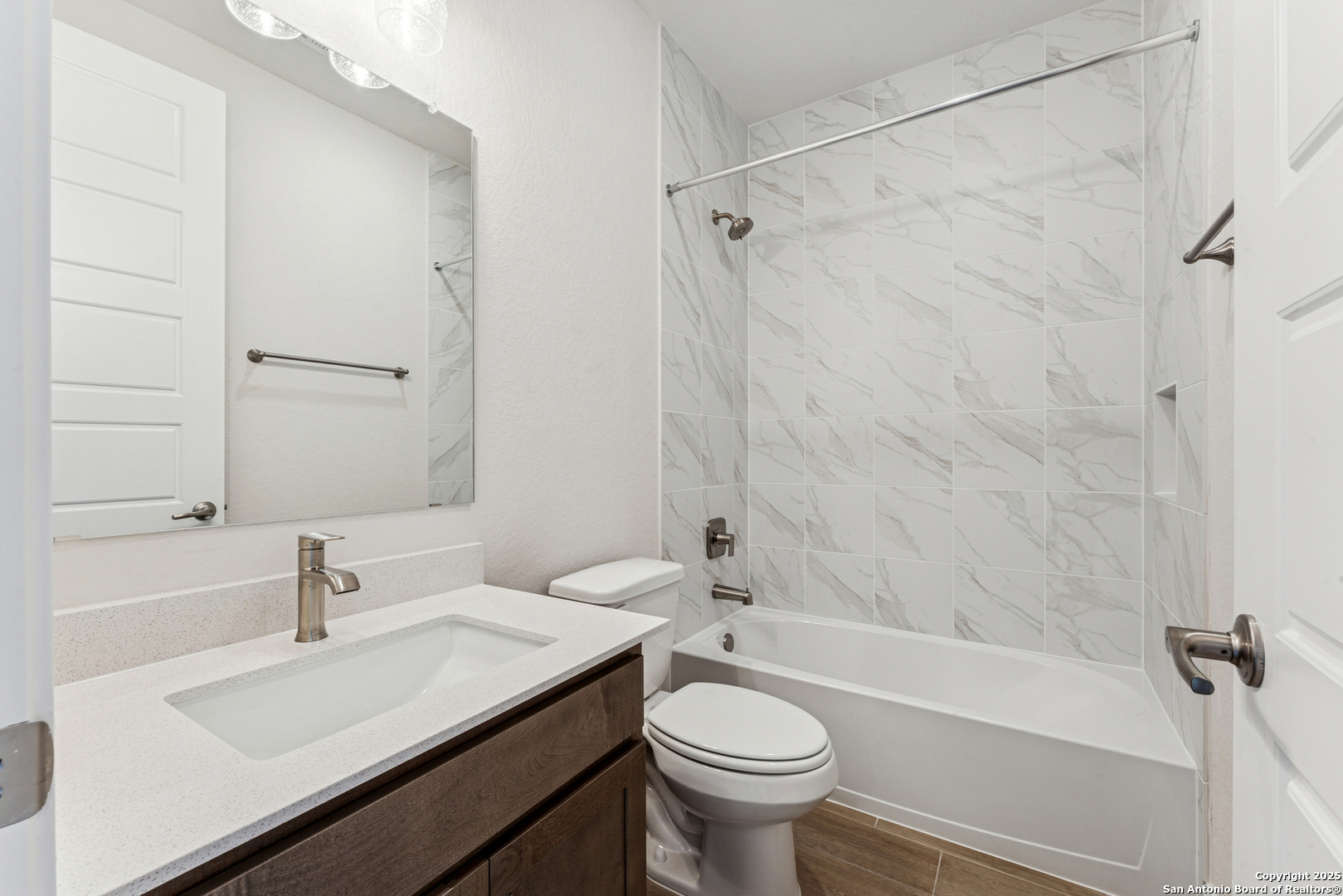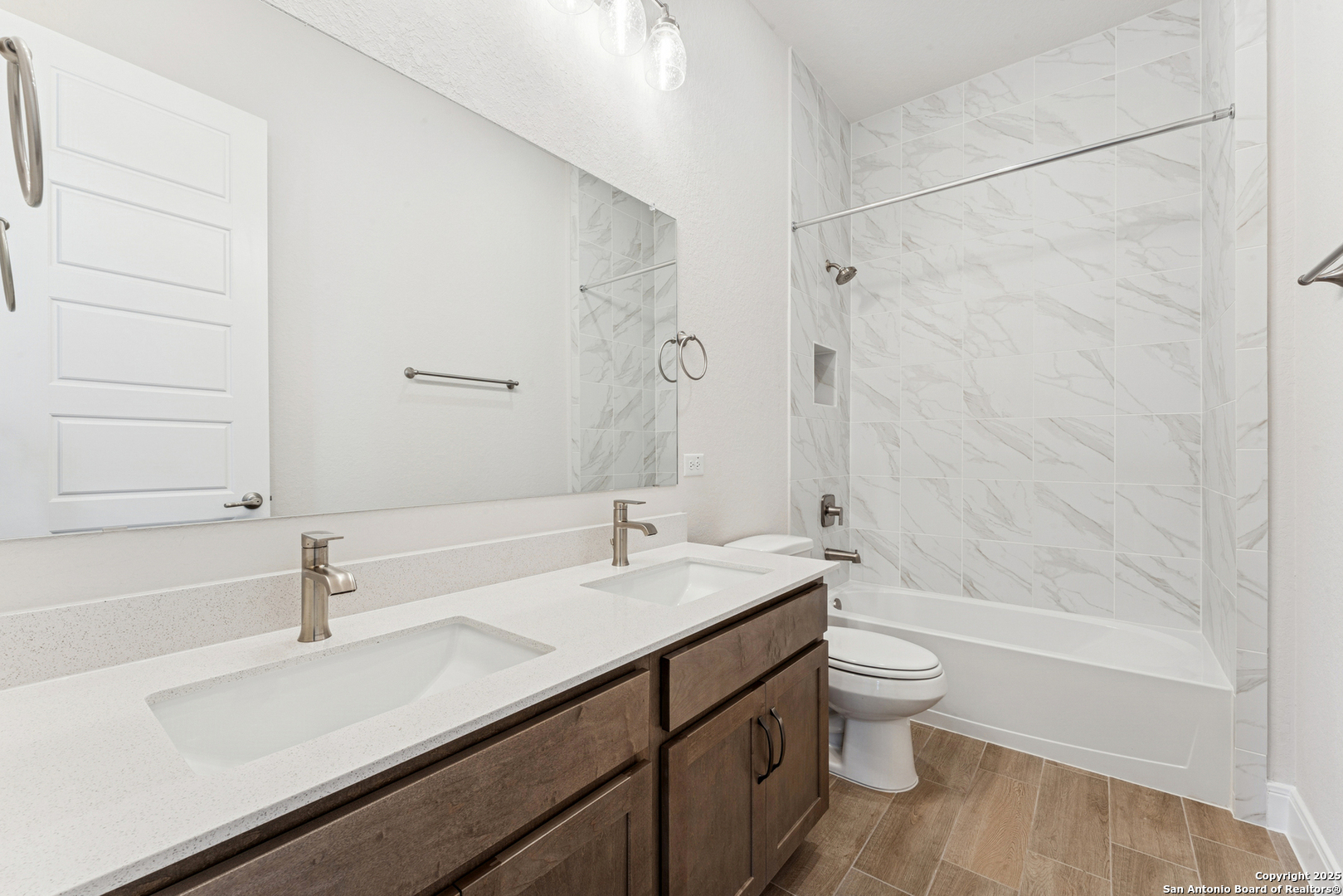 Welcome to your beautiful new home in Megan's Landing! This Sagebrook by David Weekley Homes is wide open like the Texas Hill Country, and welcomes you in through double 8' front doors to this open floor plan with high ceilings and architectural details. Sliding glass doors from the family room bring in so much natural light and open to the extended covered patio, the perfect spot to enjoy an ice-cold beverage on a hot summer day. You'll discover elegant 8' doors throughout the first floor, a spacious Study with French doors, and an enormous Owner's Retreat and relaxing Owner's Bath complete with Super Shower and rainfall showerhead. When family and friends visit you can hang out upstairs in the large Bonus Room with full bath, playing ping pong or watching the latest movie. This beautiful home sits on a lovely 1/2 acre home site and includes blinds, garage door openers, and everything to need to feel right at home! Visit David Weekley Homes at Megan's Landing Team to learn about the industry-leading warranty and energy-efficiency features included with this new home for sale in Castroville, Texas!