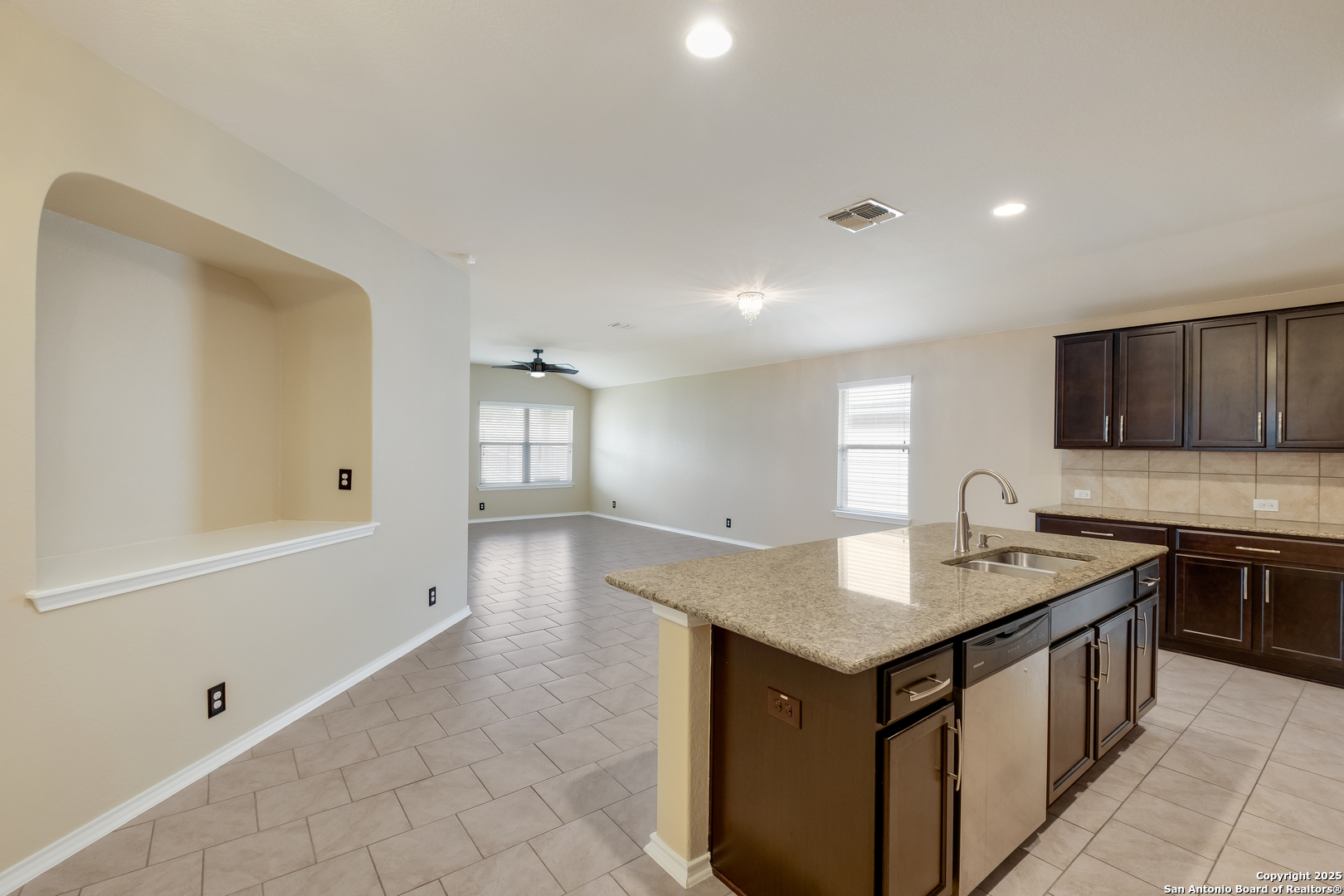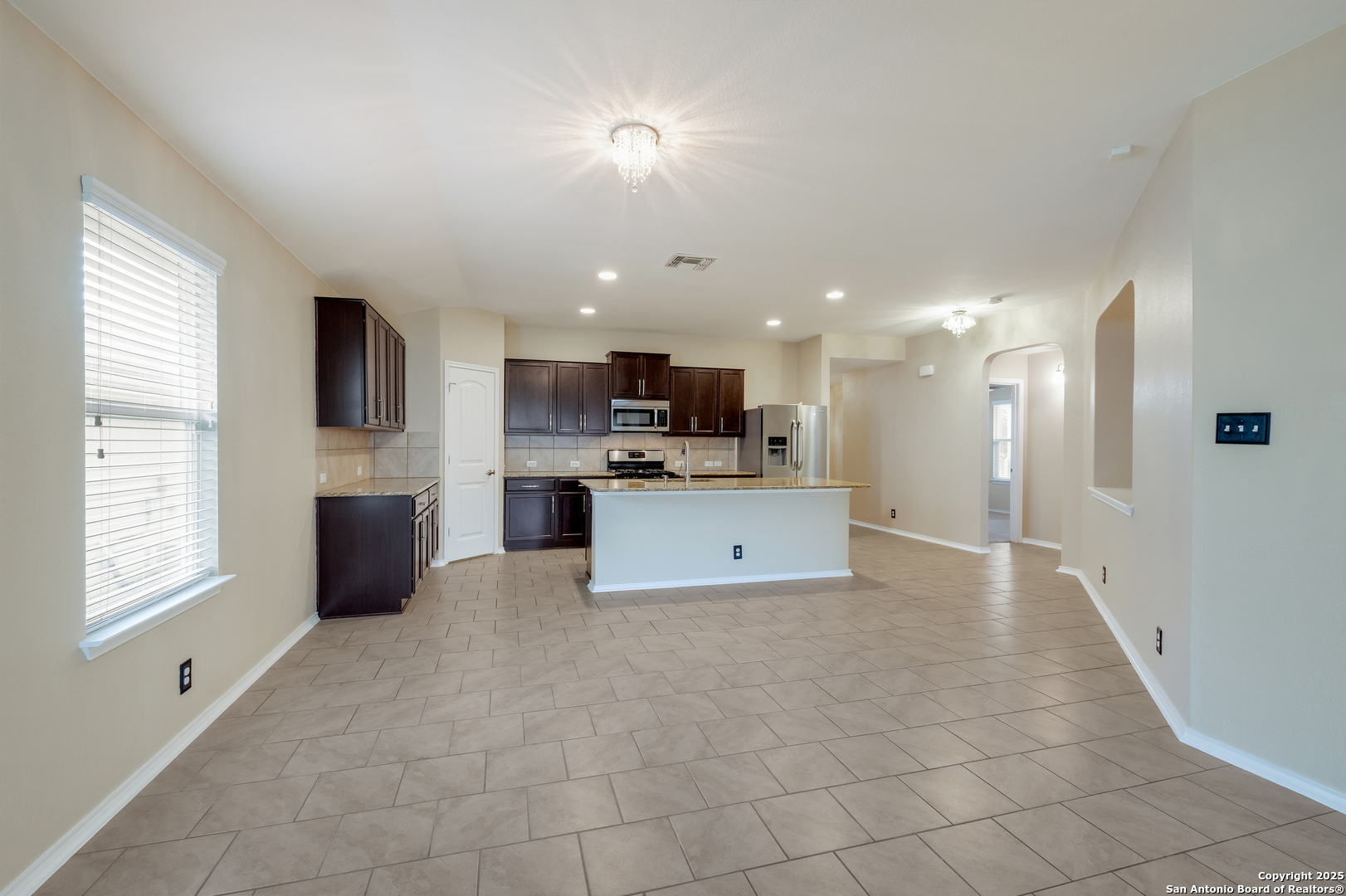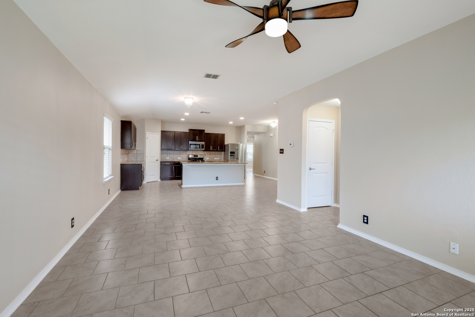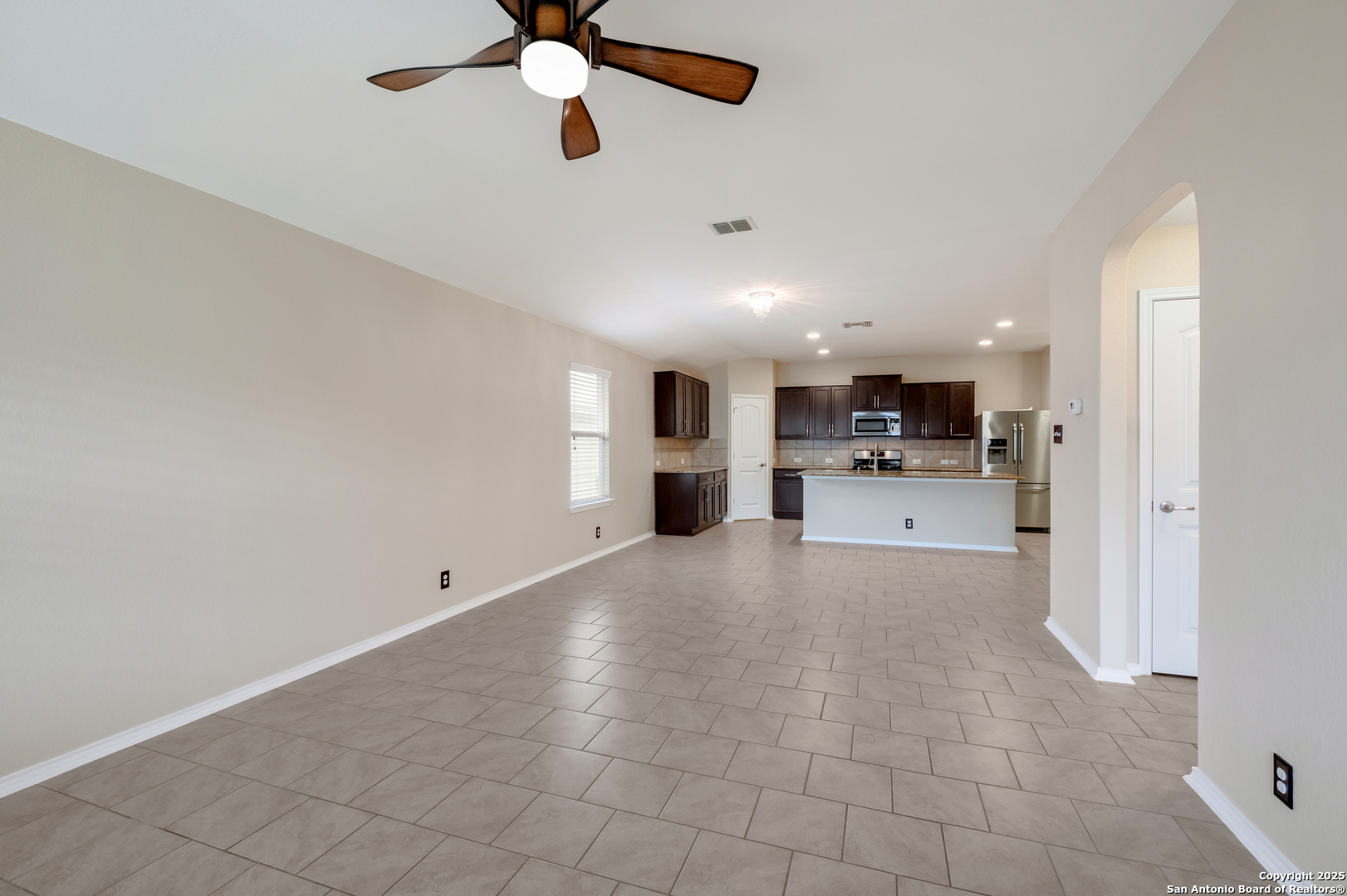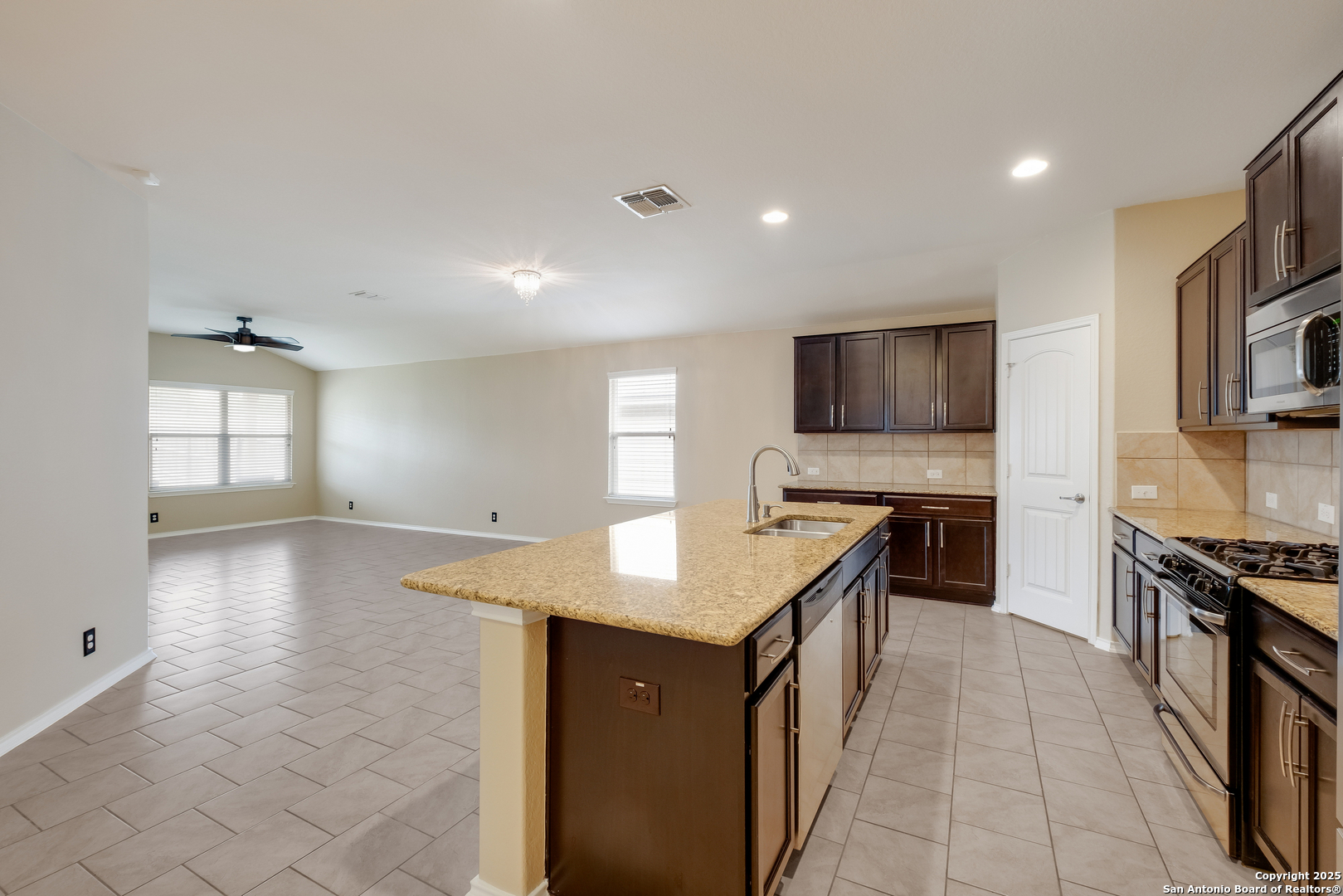 This beautifully maintained single-story home features 4 bedrooms and 2 bathrooms, designed with a bright, open layout and abundant natural light. The kitchen offers stainless steel appliances, a spacious island, and ample storage-perfect for everyday cooking and entertaining. The front bedroom provides flexible use, ideal as a home office or guest space. All bedrooms include ceiling fans for added comfort, and a washer and dryer are included for your convenience. Step outside to a covered patio overlooking a large, fenced-in backyard-great for relaxing or hosting gatherings. Located in a vibrant community with top-tier amenities including sports and basketball courts, BBQ grills, jogging trails, playgrounds, a pool, and tennis courts, this home delivers the perfect blend of comfort, functionality, and lifestyle.