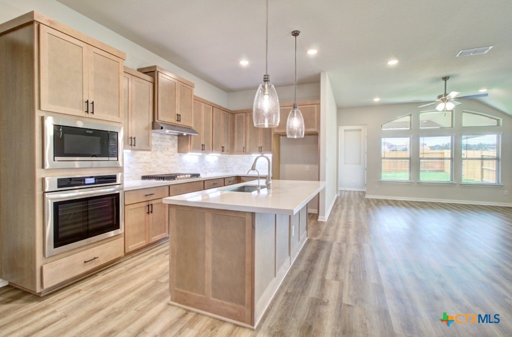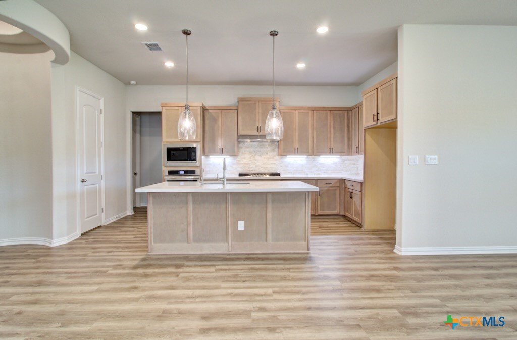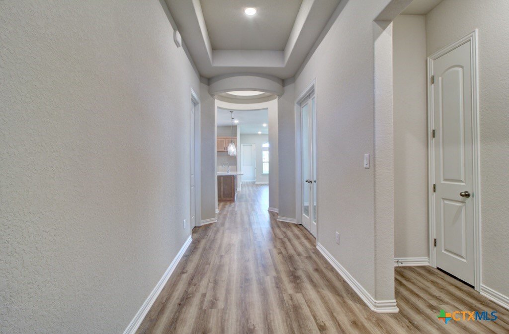 Welcome home to the Juniper floorplan by Brightland Homes. This 4-bedroom, 3-bath home includes a private study and a rotunda connecting the foyer to the kitchen. The upgraded kitchen offers a built-in oven and gas cooktop. The extended covered patio enhances the outdoor space. The owner’s suite is split from the secondary bedrooms and includes an enlarged tile shower, garden tub with a window above, and a walk-in closet.