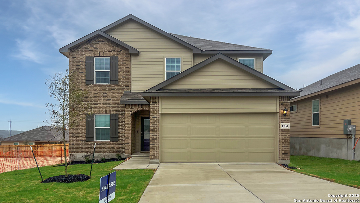 The Landry is one of our larger floor plans. This layout features two-stories, 2678 square feet, 5 bedrooms, and 3.5 bathrooms. The covered front patio opens into a foyer, utility room, and beautiful formal dining room with natural light. The dining room leads into an open concept kitchen with stainless steel appliances, granite countertops, white subway tile backsplash, and angled kitchen island that faces the spacious family room, perfect for entertaining! A covered covered patio (per plan) (per plan) is located off the family room. The private main bedroom suite is also located off the family room and features ceramic tile flooring, desirable double vanity sinks, separate garden tub and shower, private water closet, and large walk-in closet with plenty of shelving. A half bath and storage closet are located by the stairs. The second story features a versatile loft filled with natural light, two full bathrooms, four secondary bedrooms with spacious closets and a linen closet. You'll enjoy added security in your new home with our Home is Connected features. Using one central hub that talks to all the devices in your home, you can control the lights, thermostat and locks, all from your cellular device. Additional features include tall 9-foot ceilings, 2-inch faux wood blinds throughout the home, luxury vinyl plank flooring in the entry, family room, kitchen, and dining area, ceramic tile in the bathrooms and utility room, pre-plumb for water softener loop, and full yard landscaping and irrigation.