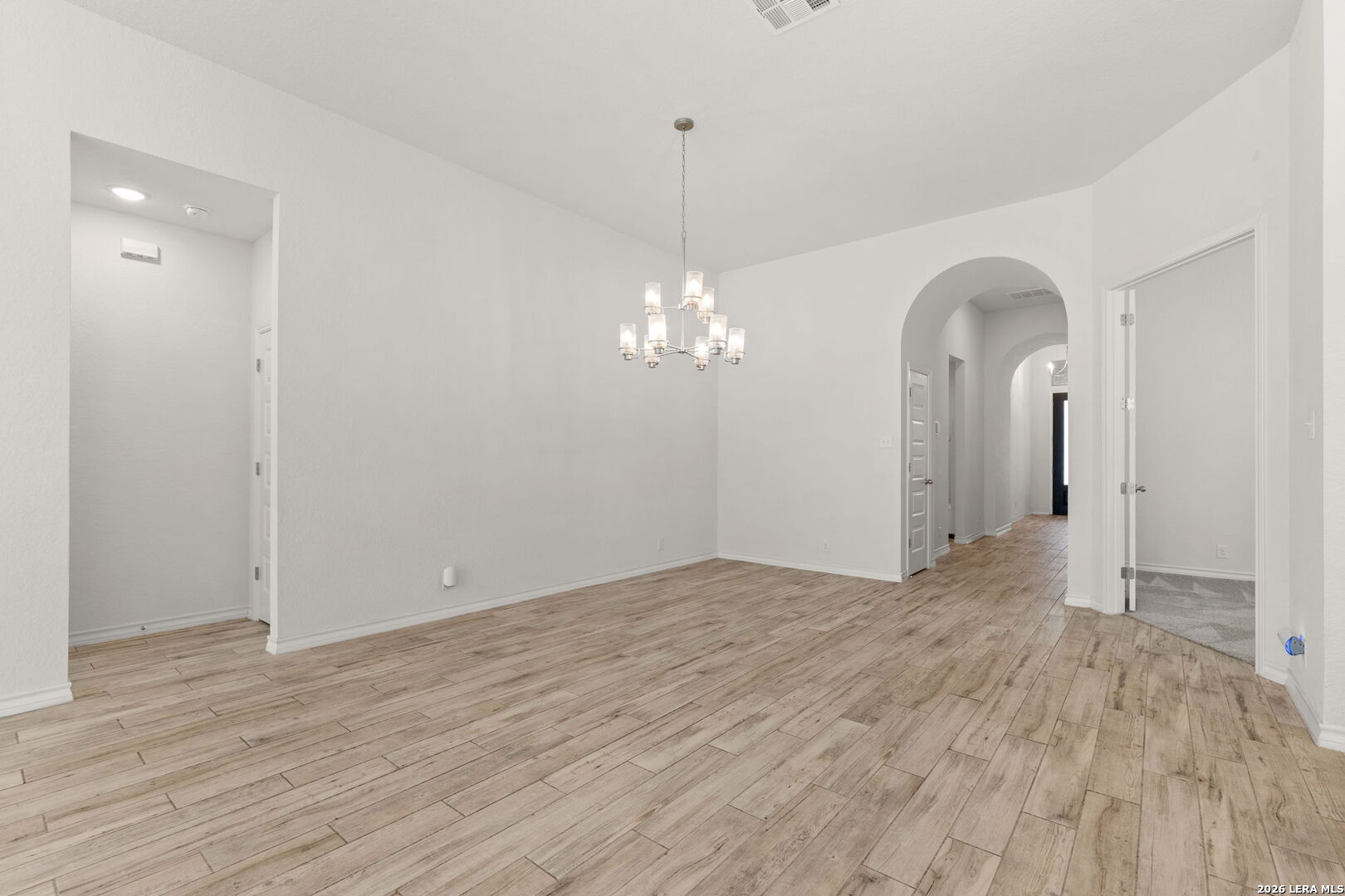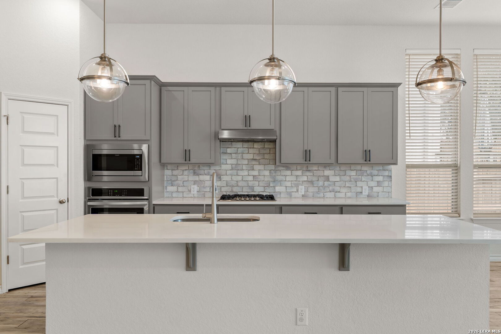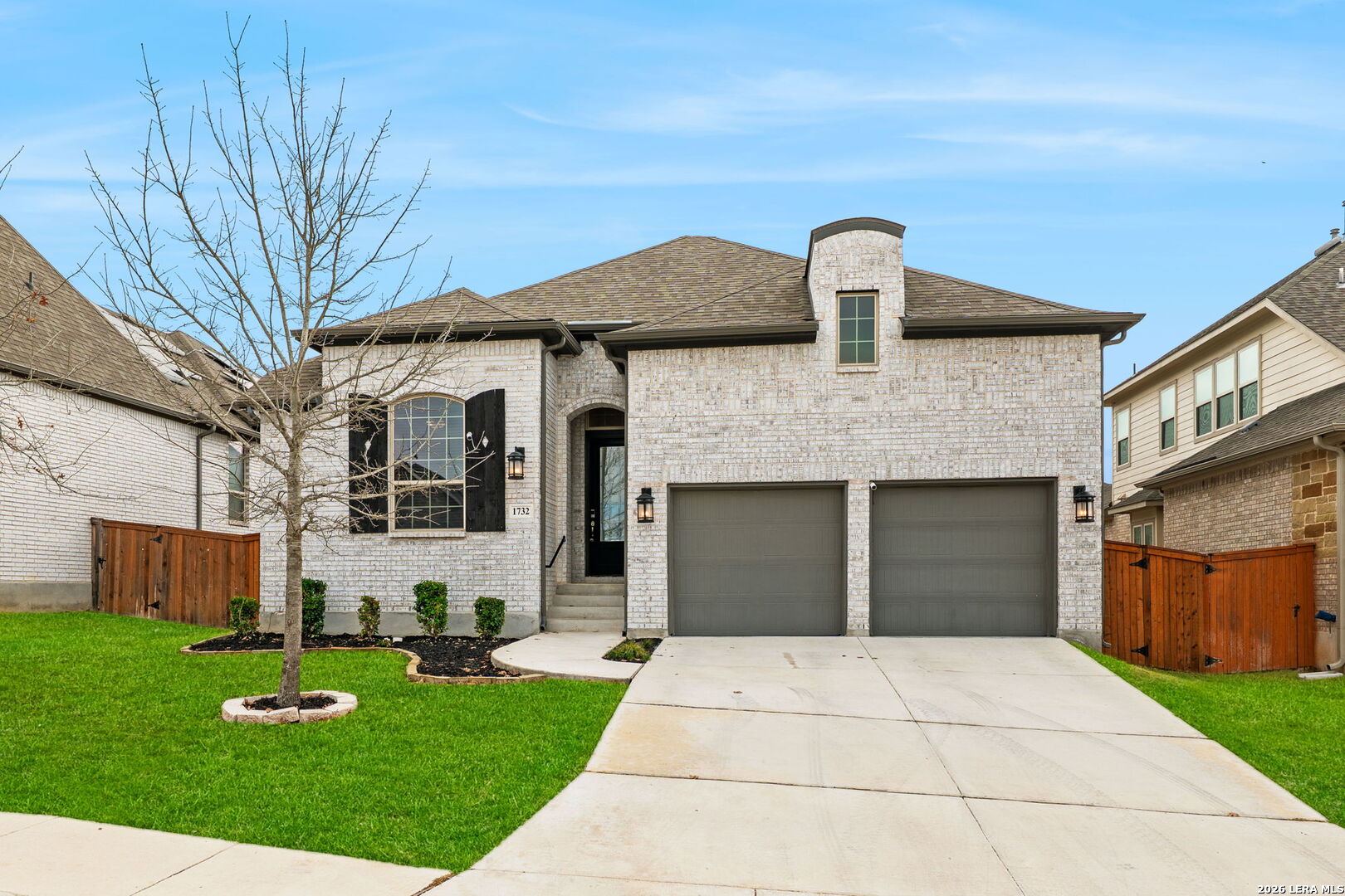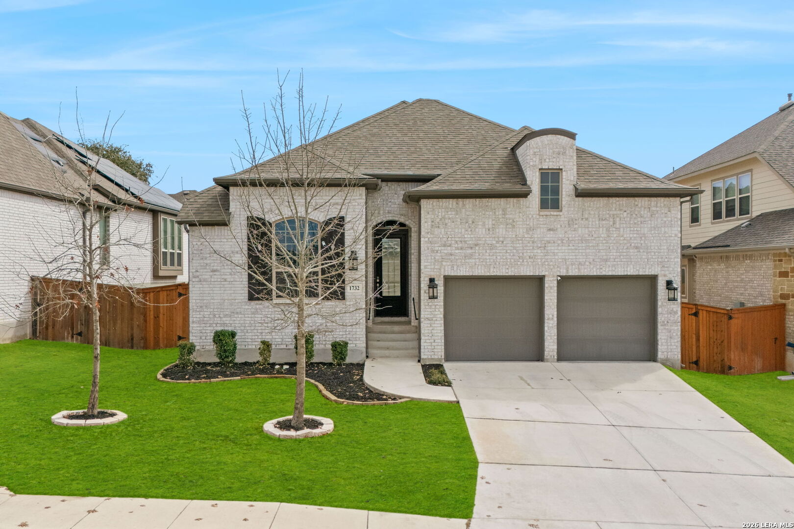 Beautifully maintained single story home offering an elegant blend of comfort and style. Thoughtfully designed with high ceilings, tile wood style flooring, arched entryways, and an open floor plan enhanced by recessed lighting throughout. A stunning chandelier at the entrance sets a refined tone from the moment you step inside. The kitchen is a true centerpiece, featuring a large kitchen island with breakfast bar, quartz countertops, stainless steel built in oven and microwave, gas cooktop, and a striking stone tile backsplash that adds timeless appeal. The living area flows seamlessly and includes a gas log fireplace, creating a warm and inviting atmosphere. This home offers four bedrooms, with two of the additional bedrooms having their own bathroom! Plus a flex room ideal for a home office, creative space, or additional living area. The primary suite showcases graceful bay windows and a spacious bath with garden tub, separate shower, double vanity, and an oversized walk in closet. Outdoor living is equally impressive with a covered patio and extended deck, perfect for relaxing or entertaining. Notable upgrades include a water softener, security cameras that convey, rain gutters, epoxied garage with storage racks, tankless water heater, RO system, brand new carpet and a Trane XR A C unit with a whole house air purifier. Conveniently located in San Antonio within the award winning Northside Independent School District and zoned to William J Brennan High School. Harmony School of Science is within walking distance and just opened up a middle/highschool. They currently have 2 schools with grades PK-9th. Enjoy a short commute to Northwest Vista College, SeaWorld San Antonio, and Lackland Air Force Base with easy access to Loop 1604.
