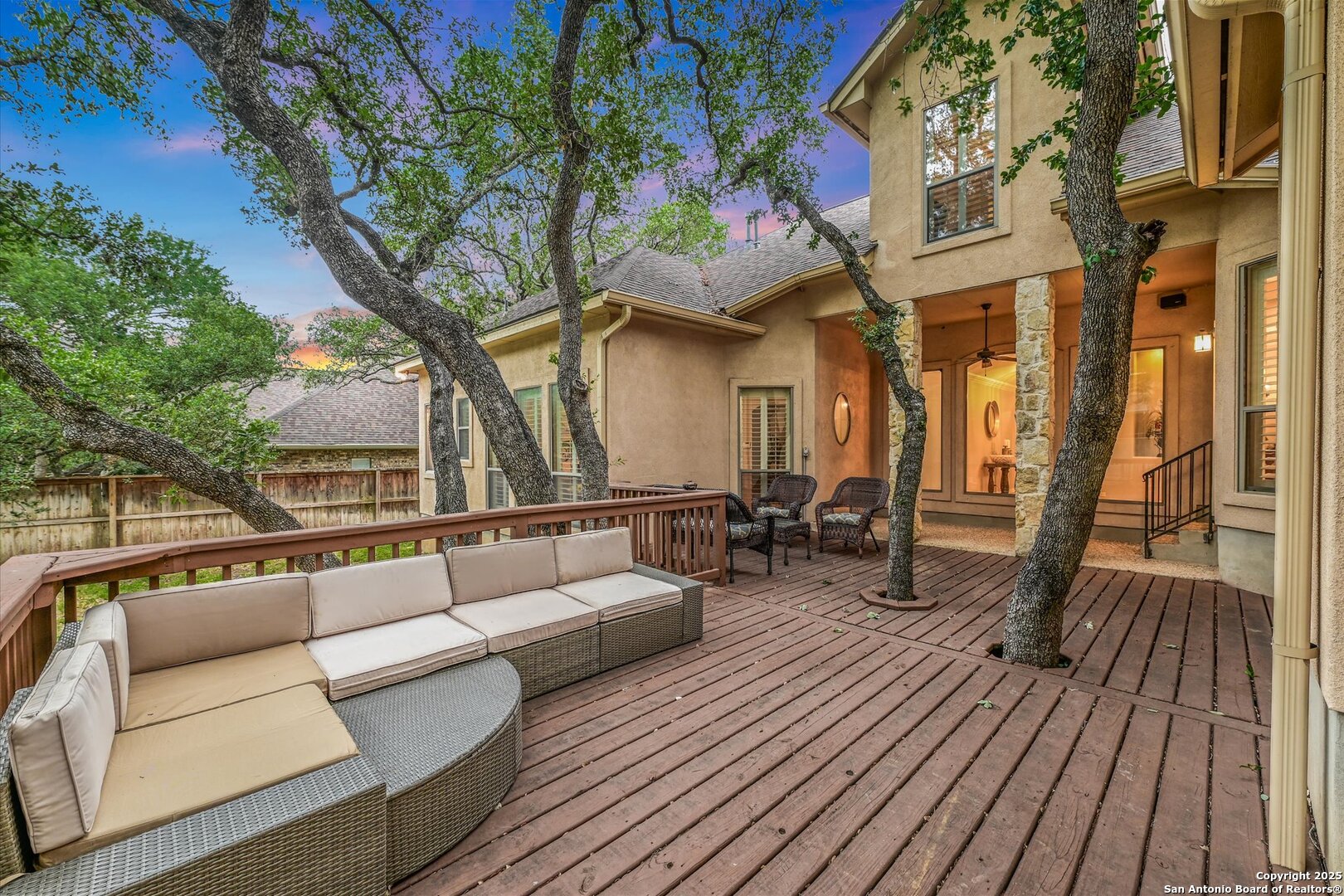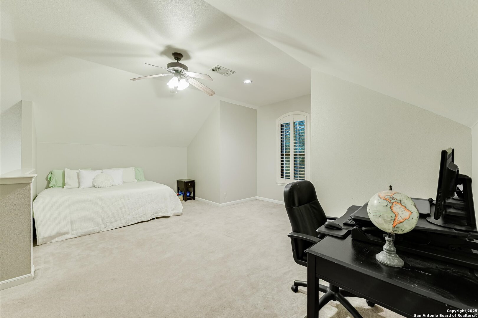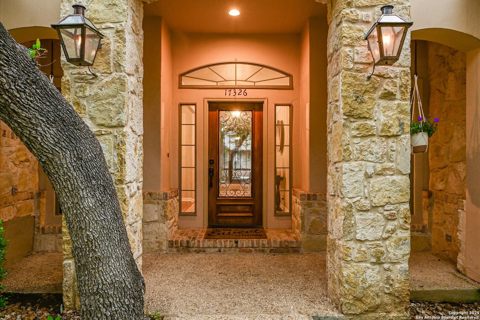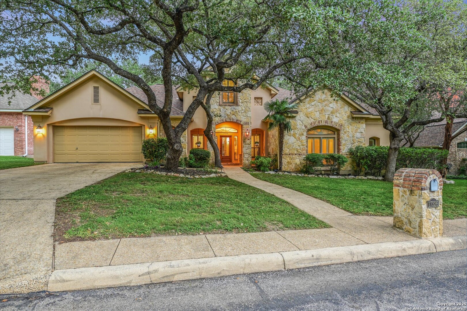 Welcome to 17326 Fountain Bluff, a beautifully maintained home in the gated community of The Fountains of Deerfield. Ideally located near excellent schools, shopping, and dining, this property combines everyday comfort with thoughtful upgrades and standout amenities. This mostly one-story layout offers four bedrooms and two and a half baths, with a spacious upstairs game room and private office-perfect for work, play, or extra living space. The home features an updated primary bathroom, designed with style and functionality in mind. Step outside and enjoy an expansive backyard built for relaxation and fun, featuring a playground with a playscape, plenty of green space, and a beautiful pool-ideal for gatherings or quiet afternoons at home. Gas lanterns add a charming and classic touch to the exterior, creating warm curb appeal in the evenings. This is a rare opportunity to own a move-in ready home in one of North Central San Antonio's most sought-after gated communities