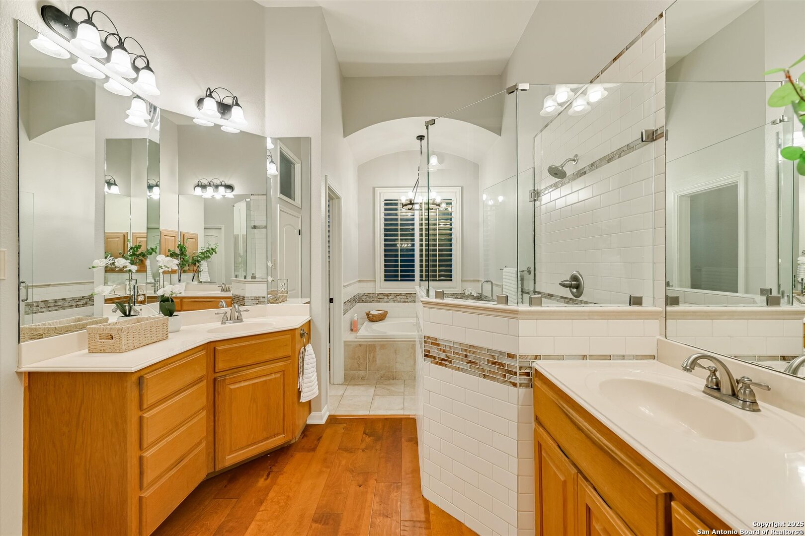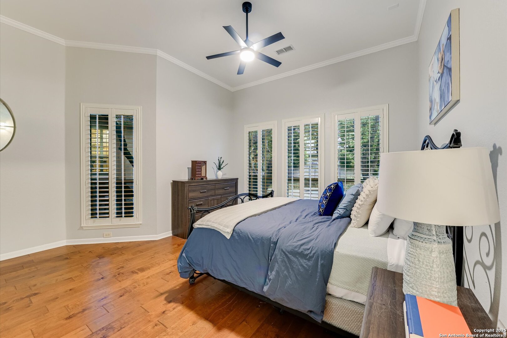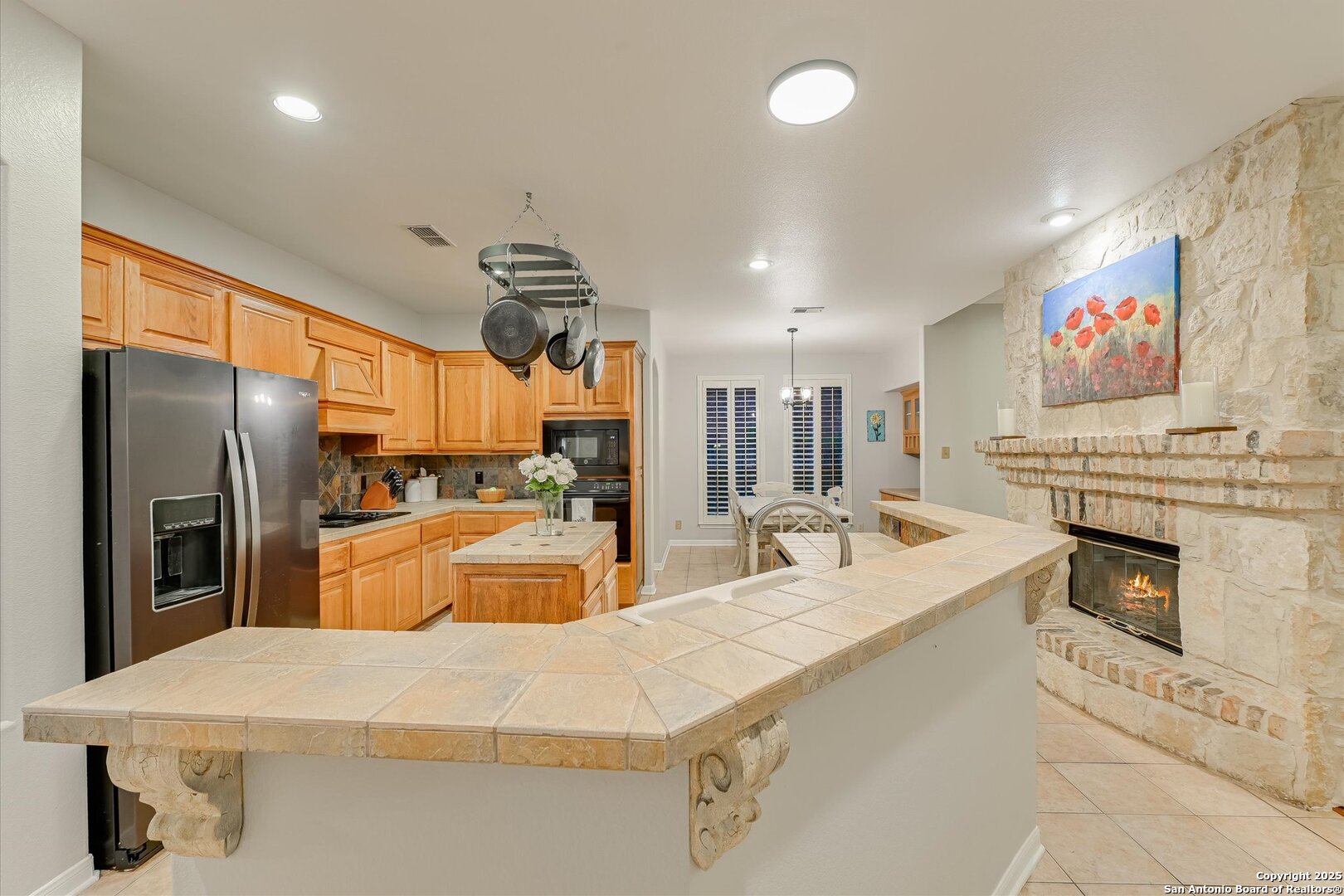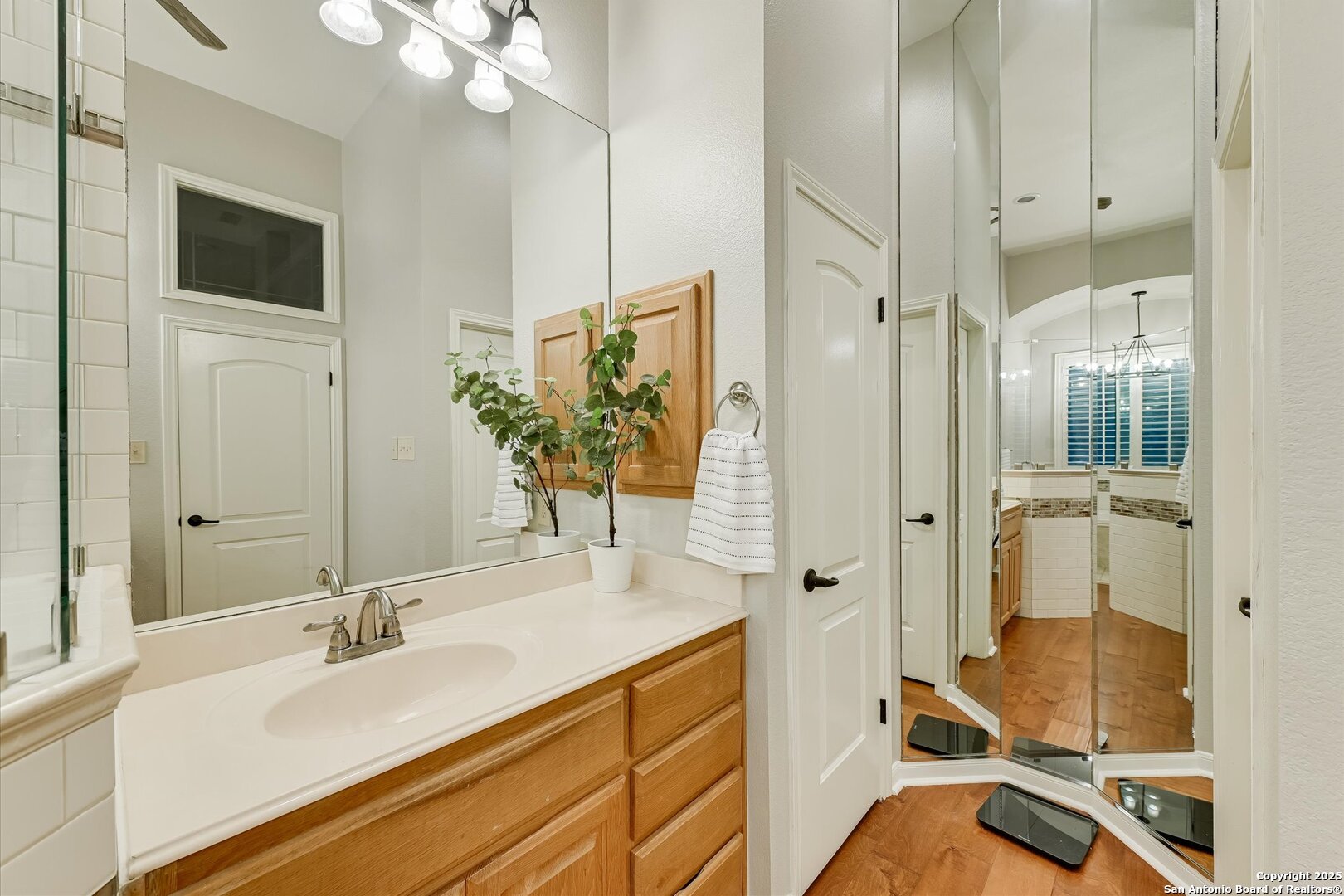 Welcome to 17326 Fountain Bluff, a beautifully maintained home in the gated community of The Fountains of Deerfield. Ideally located near excellent schools, shopping, and dining, this property combines everyday comfort with thoughtful upgrades and standout amenities. This mostly one-story layout offers four bedrooms and two and a half baths, with a spacious upstairs game room and private office-perfect for work, play, or extra living space. The home features an updated primary bathroom, designed with style and functionality in mind. Step outside and enjoy an expansive backyard built for relaxation and fun, featuring a playground with a playscape, plenty of green space, and a beautiful pool-ideal for gatherings or quiet afternoons at home. Gas lanterns add a charming and classic touch to the exterior, creating warm curb appeal in the evenings. This is a rare opportunity to own a move-in ready home in one of North Central San Antonio's most sought-after gated communities