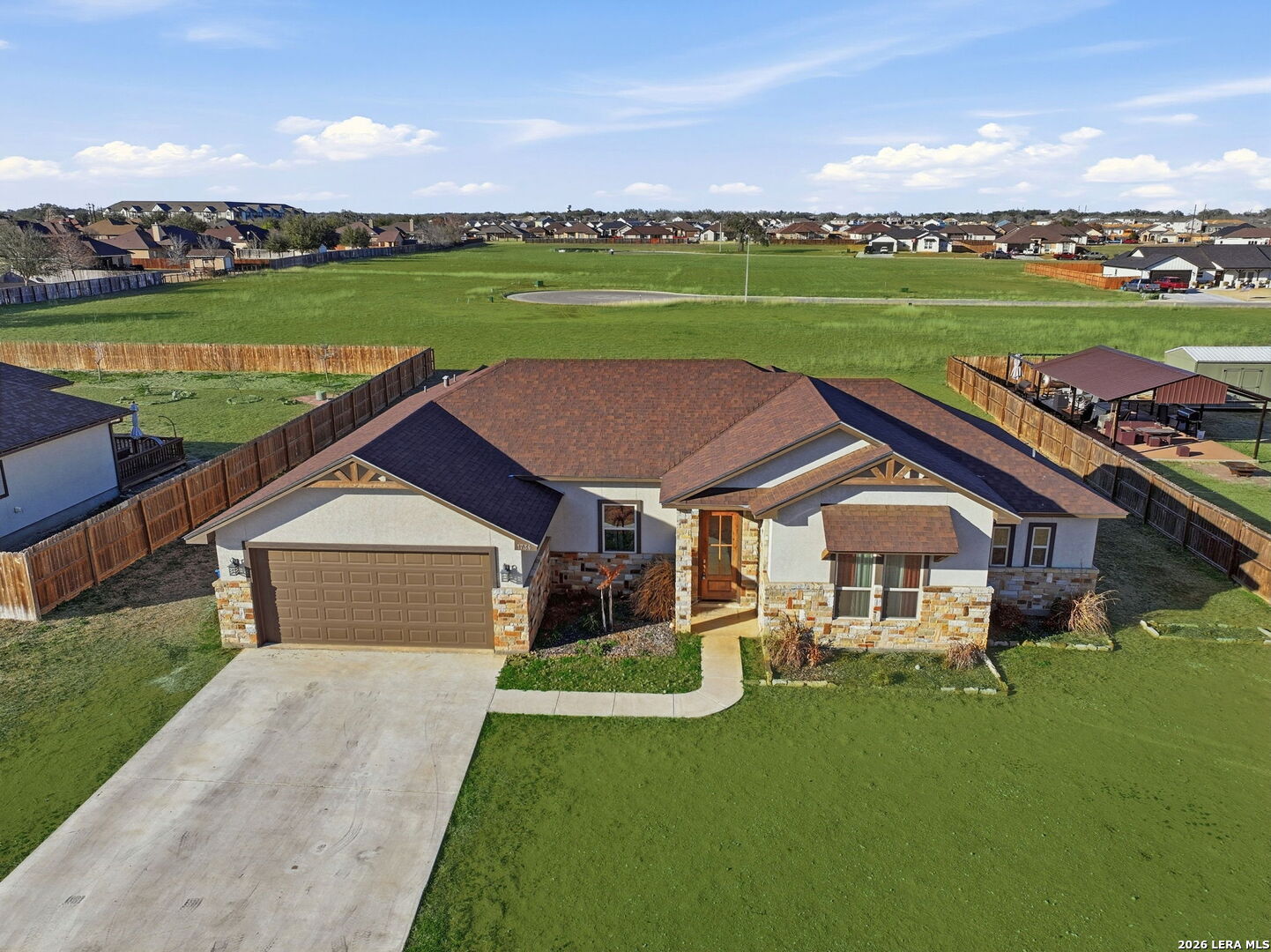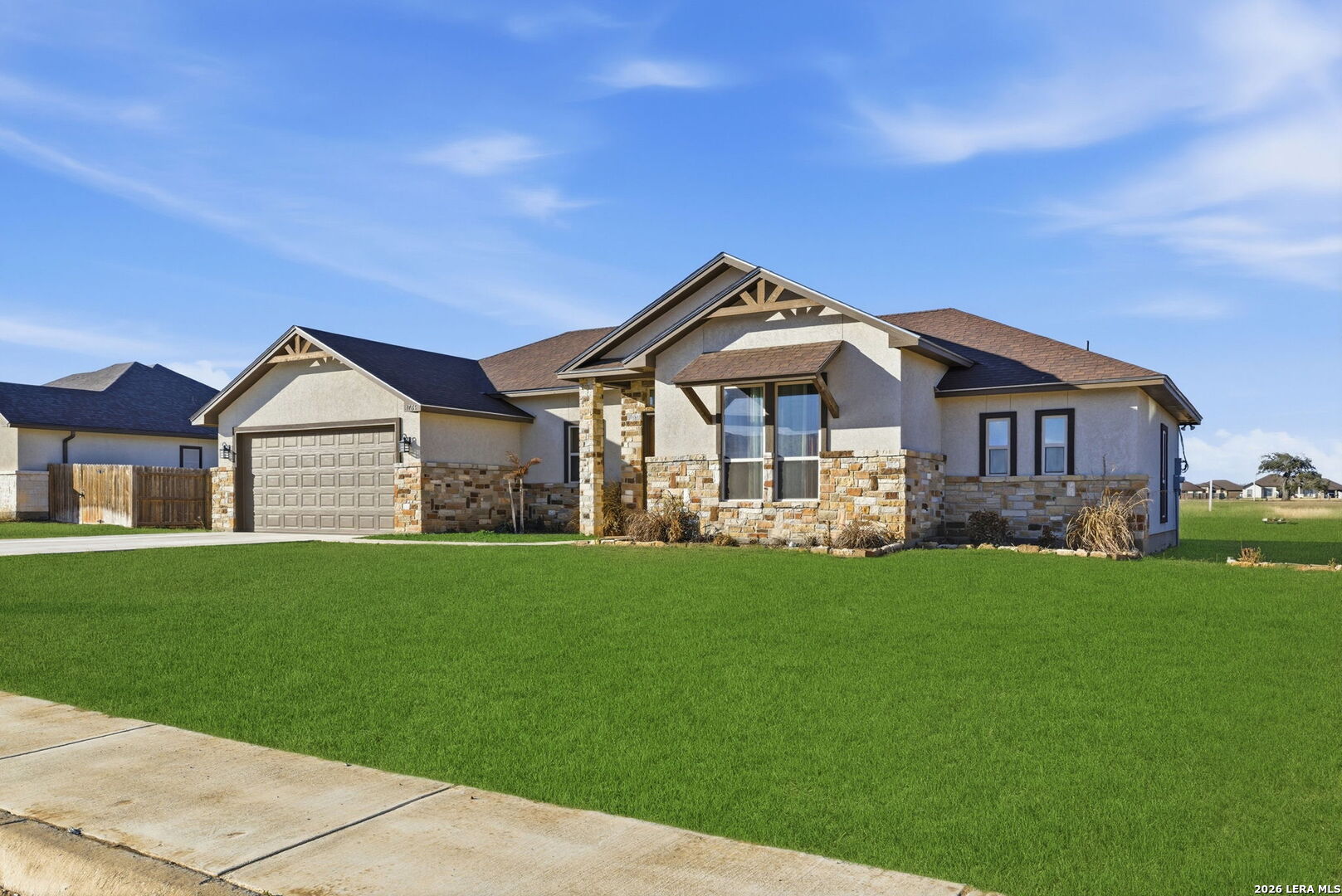 Current interest rate may be assumable. Located in the desirable Bonita Vista subdivision, this inviting home offers a well-designed open and split floor plan that creates a seamless flow between the living and dining spaces, making everyday living and entertaining effortless. The chef's kitchen is the heart of the home, featuring abundant cabinetry and storage to keep everything organized while remaining open to the main living areas. The primary bedroom is thoughtfully positioned for privacy and comfort, complete with an ensuite bathroom and set apart from the secondary bedrooms. Step outside to enjoy the oversized covered back patio, ideal for relaxing or hosting gatherings while overlooking the beautifully landscaped lawn that adds charm and curb appeal. Conveniently situated near area amenities, this home combines comfort, functionality, and location in one appealing package.