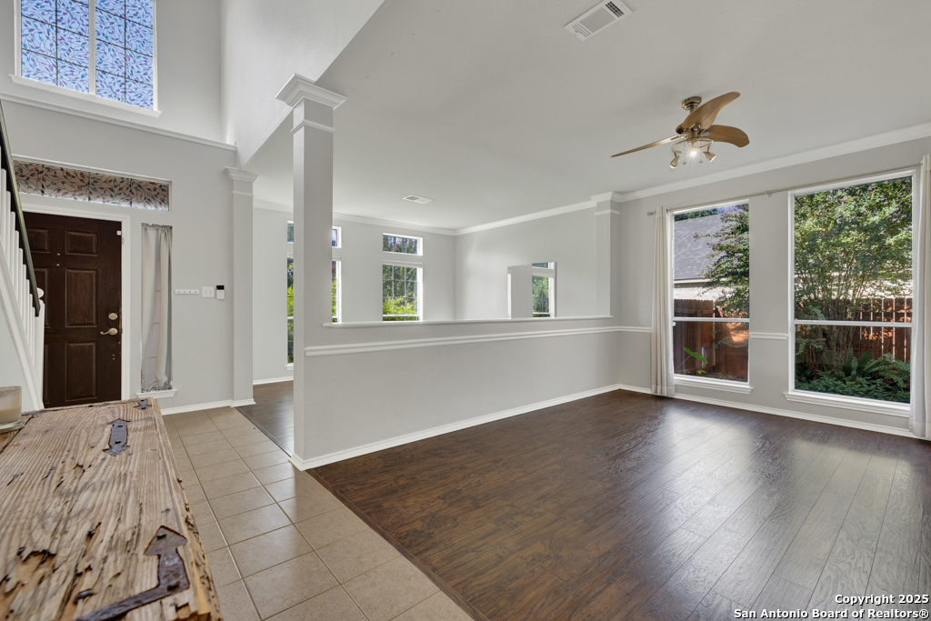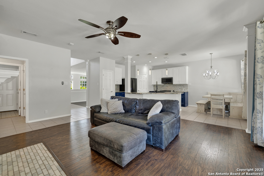 ** NEW ROOF BEING INSTALLED wk of 11/3/25. ** This home has it all! A backyard oasis complete with pool and spa, space to spread out with multiple living areas, upgrades galore, and a neighborhood amenities center. This welcoming 4 bed, 2.5 bath residence offers the perfect blend of comfort, style, and functionality. Step inside to find a separate formal living and dining room downstairs, complemented by an open family room with a cozy fireplace, a beautifully upgraded kitchen with sunny breakfast nook with views of your private backyard sanctuary. The downstairs primary suite offers ample space for relaxation with an upgraded en suite with dual sinks and a princess makeup space. Upstairs, a versatile loft-style flex space connects three bedrooms, plus an office/study with French doors, perfect for working from home or quiet reading. Thoughtful upgrades to the kitchen and bathrooms add modern flair, while abundant storage ensures everything has its place. Step outside to your resort-worthy backyard, complete with a shimmering pool and spa, and an impressive pergola-covered patio (27x14) for outdoor living and dining. Whether hosting a gathering or savoring a quiet evening, this space delivers the ultimate in indoor-outdoor living. Located in a vibrant community with pool, playground, tennis courts, basketball, and scenic walking trails, this home is ideal for families who love both activity and relaxation. Easily walk to Veramendi Elementary or Oak Run Middle. Located close to shopping and restaurants. Short distance to Gruene and downtown. Come enjoy all that New Braunfels has to offer.