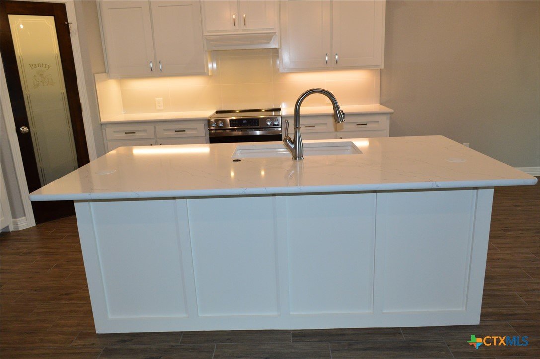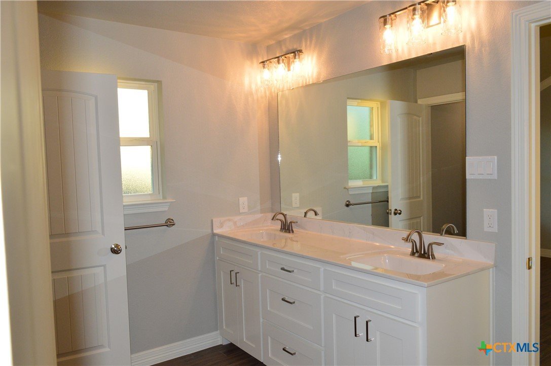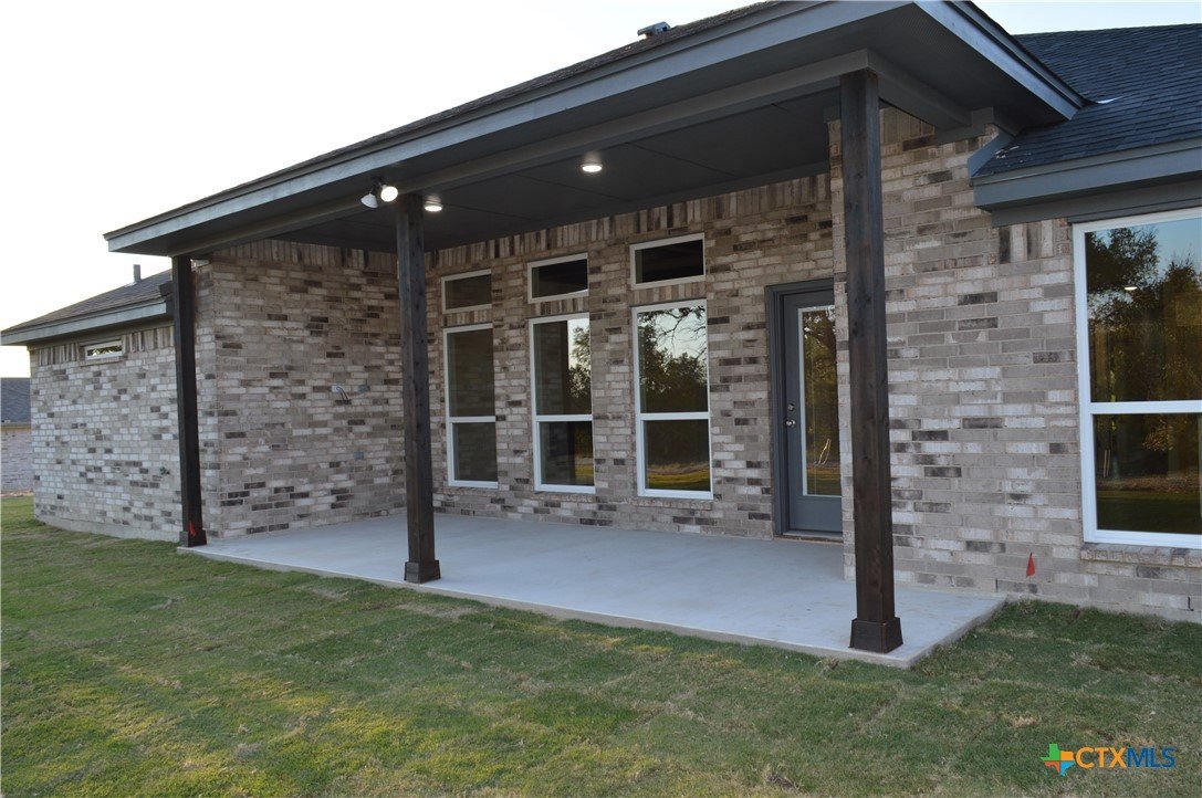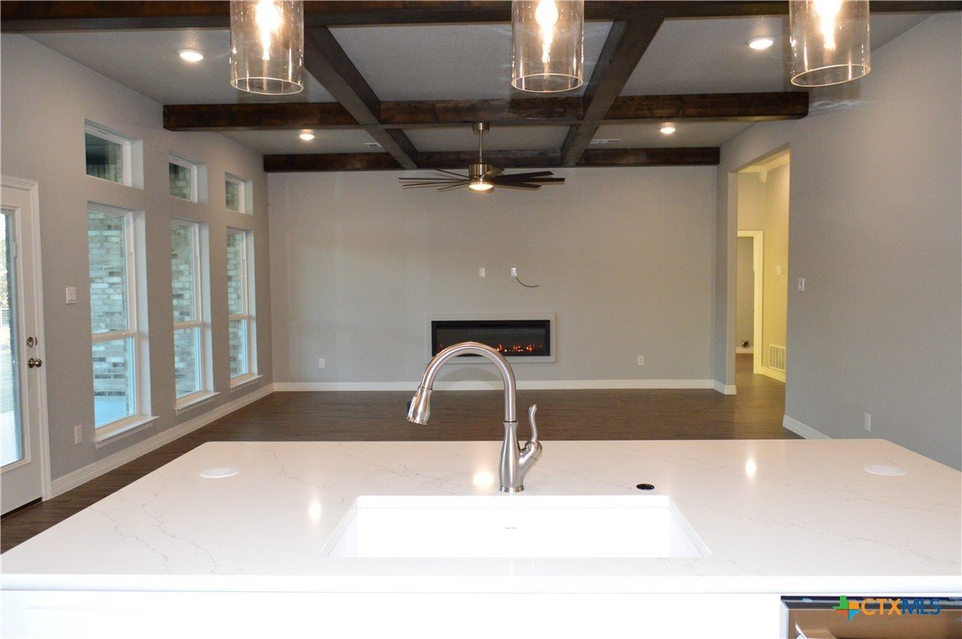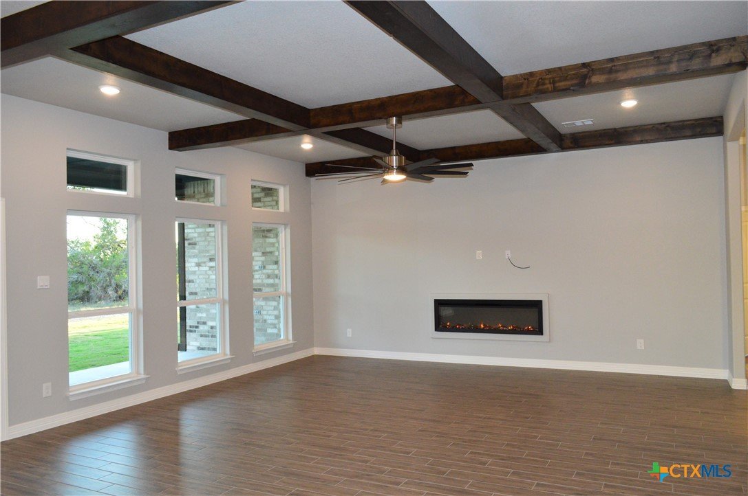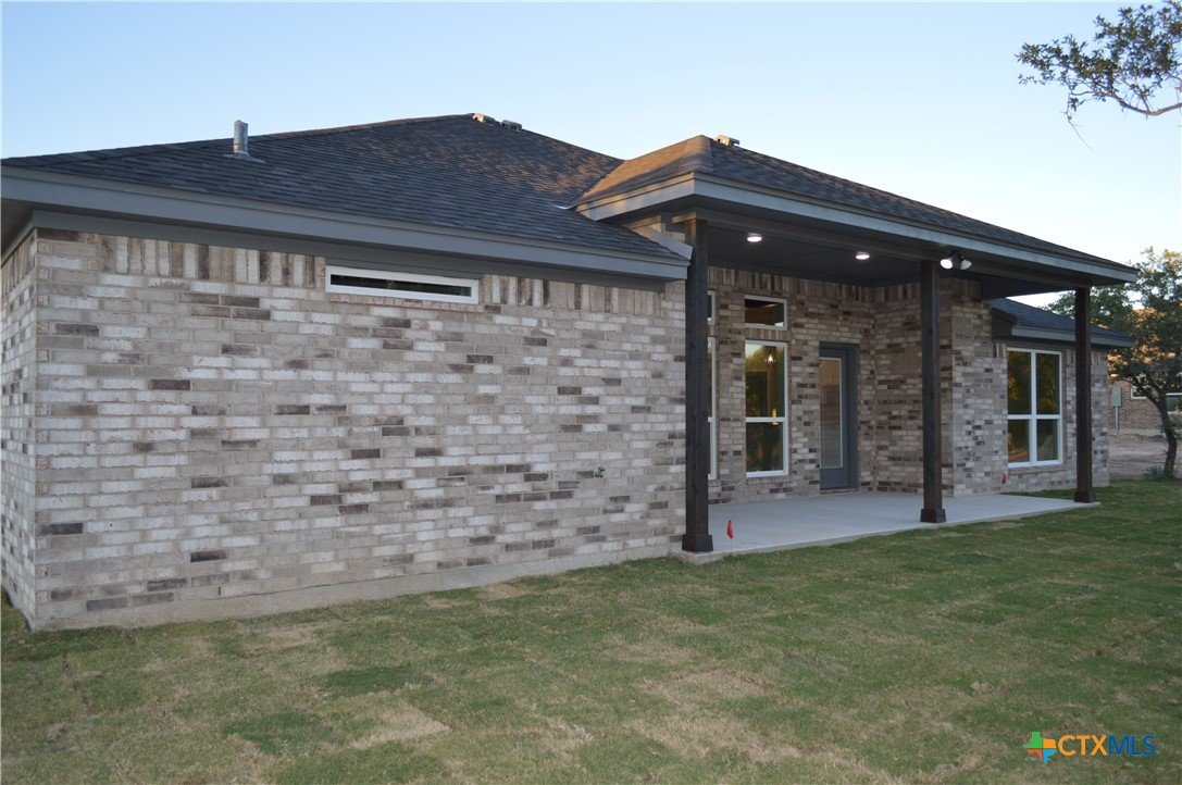 STUNNING NEW CONSTRUCTION HOME BY KEITH CAROTHERS HOMES, INC. IN SOUGHT-AFTER RIVER PLACE IN KEMPNER, GROVES OF MATURE OAK TREES, LOCATED ON A LOW TRAFFIC CUL-DE-SAC This 2077 square feet new home sits on a 1.036 acre lot and has four bedrooms, two full baths, and a two-car, side entry garage. The home is bricked on all four sides with Texas stone trim on the front and has a covered front porch and covered patio with wiring for an outdoor TV. All flooring is wood-look tile. Lighting and hardware are brushed nickel. The home features an open floor plan, neutral colors, a great room design and high ceilings. All bedrooms have ceiling fans and are wired for wall mounted TVs. The family room has a decorative ceiling with a ceiling fan, recessed lighting, electric fireplace, and crown molding. The chef's dream kitchen is brightly lit with recessed lighting, pendant lighting, and under-cabinet lighting. The kitchen features a huge island with electricity and breakfast bar, ornate granite countertops, farmer sink, a walk-in pantry, and white cabinets. The G.E. stainless appliances include a five burner glass top range, built-in microwave, and dishwasher. The split floor plan allows peace and quiet for the owners. The master suite offers a high ceiling with crown molding, walk-in closet and a romantic master bath. The master bath has two sinks in an adult-height vanity, an over-sized walk-in shower, and a private water closet. ~ A concrete driveway leads to the two car, side-entry garage that has a garage door opener, storage in the back, recessed lighting, windows for natural light, and a sink. The yard has an in-ground sprinkler system in the top soiled areas. There is a covered front porch and a 23' X 9' covered patio that has electricity and wiring for an outdoor TV. Utilities are provided by Hamilton County Electric Coop, Kempner Water Supply, and NextLink fiber optics high speed internet service. Please visit the virtual tour for videos of this beautiful home.