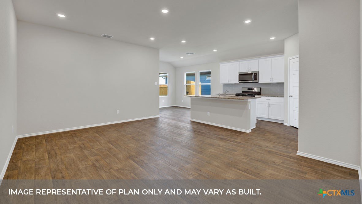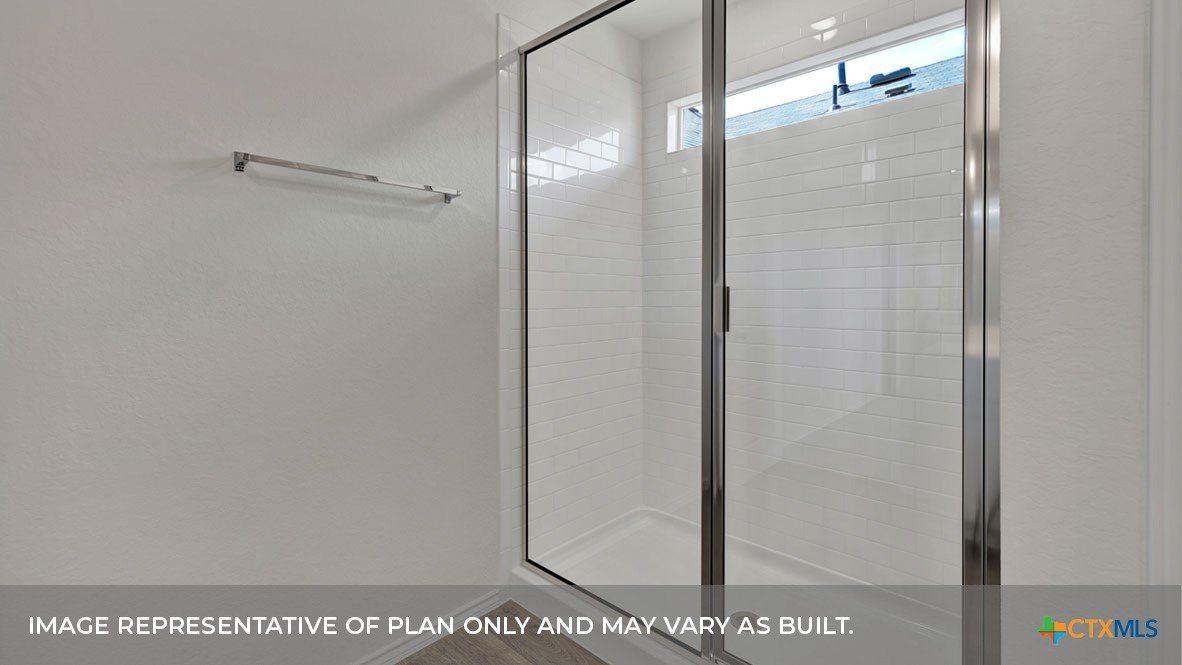 MOVE IN READY! . Step into the Baxtor at Saengerhalle Meadows, one of our communities in New Braunfels, Texas. This one-story home is perfect for small families or homeowners looking to downsize. Inside this 1,402 square foot home, you will find 3 bedrooms, 2 bathrooms and a 2-car garage. Our homes in Saengerhalle Meadows feature farmhouse exteriors. Coming into the home from the covered front porch, you’ll find a foyer that leads you to the heart of the house, the living area. The open concept design of kitchen, dining and family room allows for easy entertaining and everyday living. The kitchen includes granite countertops, a large island with an undermount sink, a corner pantry closet, stainless-steel appliances and 36’’ upper cabinets. The primary bedroom is off the dining room and includes its own attached bathroom, making the start of your day a seamless step from sleep to your morning routine. Enjoy the 5’ walk in shower, double vanity, and separate door to the toilet for privacy. A walk-in closet with generous shelving is connected to the bathroom. The secondary bedrooms are off the foyer at the front of the home. In the hall between the bedrooms is the secondary bathroom, which includes a shower/tub combination. Each bedroom includes a closet with shelving. The utility room is tucked away between the foyer and kitchen, convenient to all bedrooms once the clothes are cleaned. The Baxtor includes vinyl flooring throughout the common areas of the home, and carpet in the bedrooms. All our new homes feature a covered back patio, full sod, an irrigation system in the front and back yard, and a 6’ privacy fence around the back yard. This home includes our America’s Smart Home base package, which includes the Amazon Echo Pop, Front Doorbell, Front Door Deadbolt Lock, Home Hub, Thermostat, and Deako® Smart Switches.