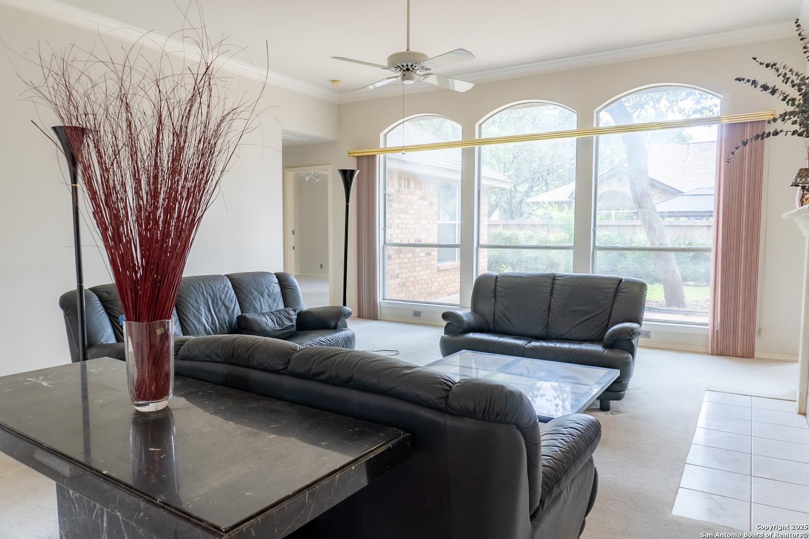 Welcome to 17410 Canyon Breeze Dr, a well-maintained one story home located in the gated Canyon Creek Bluff community in San Antonio. Built in 1993, this 3 bedroom, 2 bath property offers approximately 2,082 square feet of living space with a thoughtful layout that includes a formal dining room and a family room with a fireplace. The kitchen features ample cabinetry, and a cozy breakfast nook, while the primary suite includes a walk-in closet and en-suite bath with a separate tub and shower. Outside, enjoy a lush backyard ready for your own home garden with mature trees and a patio perfect for relaxing or those with a green thumb. With its prime location near Loop 1604 and Blanco Rd, this home provides convenient access to shopping, dining, and top-rated schools within North East ISD. Don't miss this opportunity to own a home in this prime location - you won't find a better deal elsewhere!