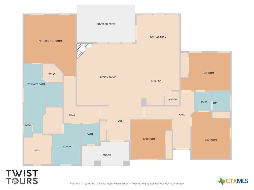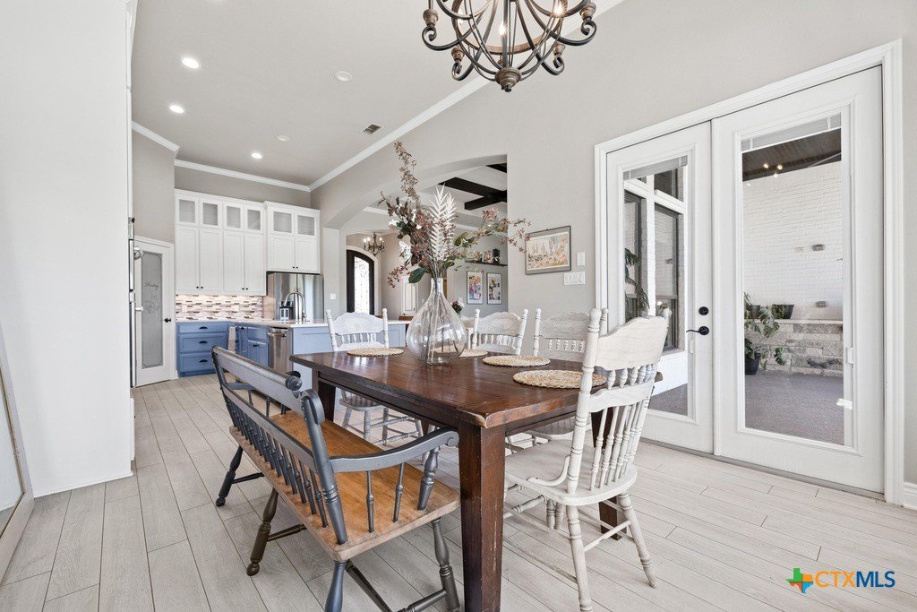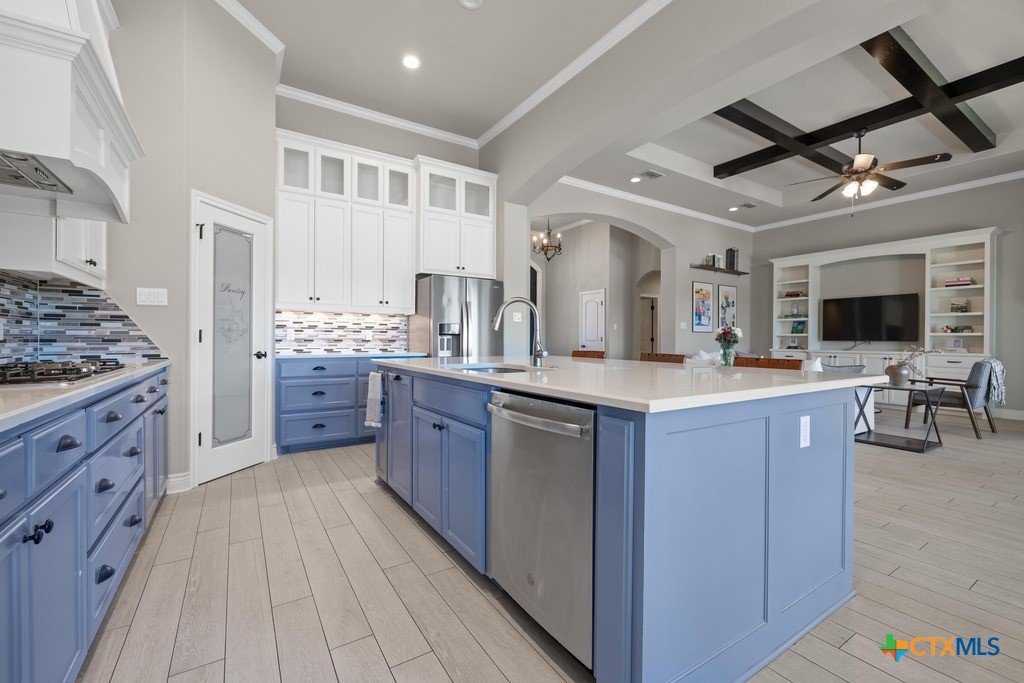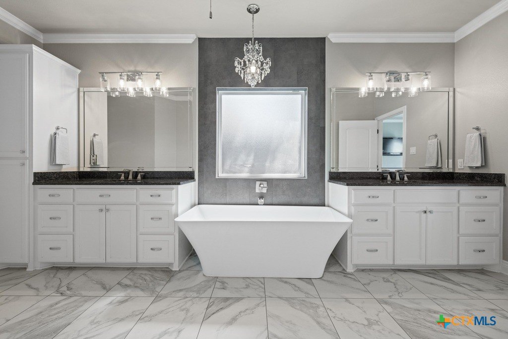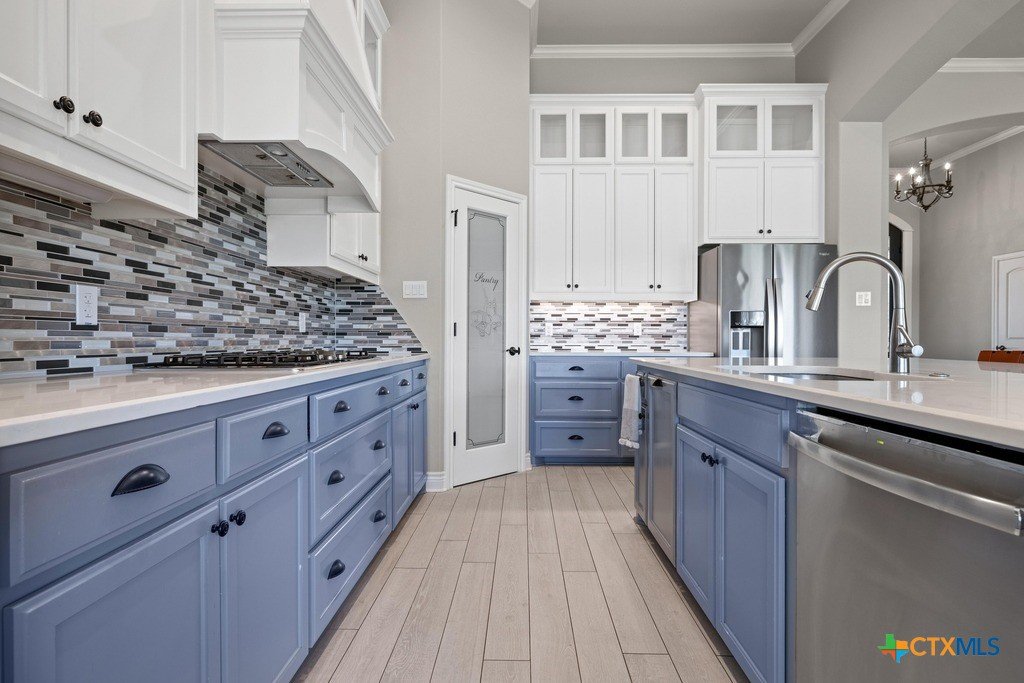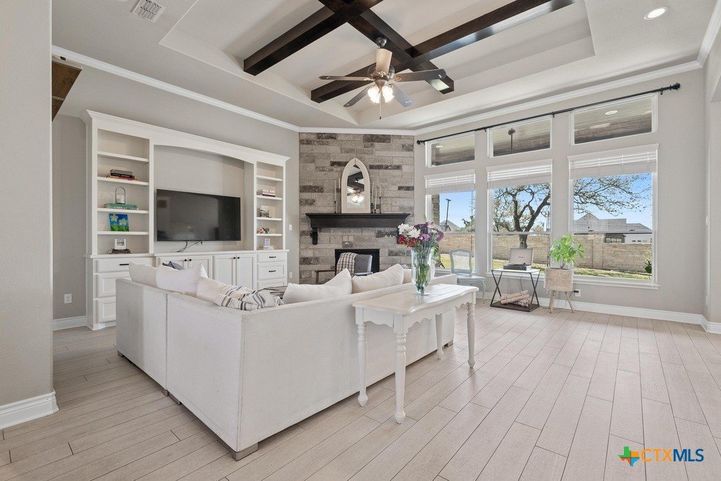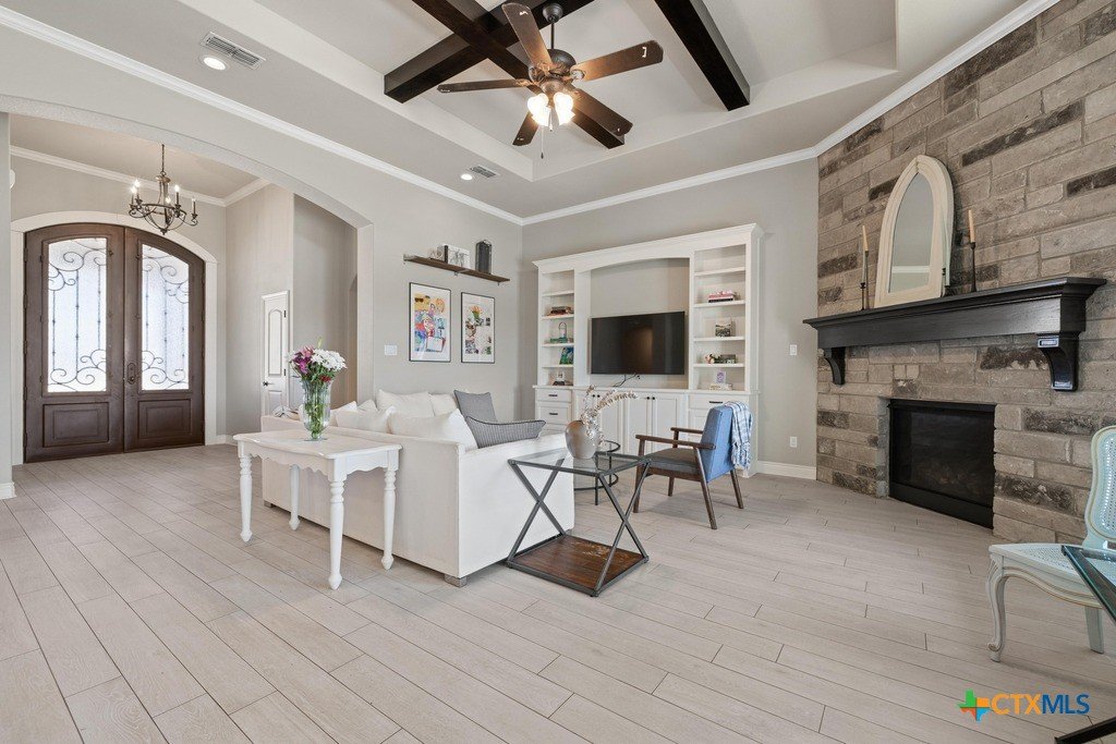 Nestled in a charming and peaceful neighborhood, this beautifully maintained home in Temple sits on a spacious corner lot of nearly half an acre. Elegant iron double doors welcome you into this inviting retreat, featuring an expansive open floor plan. The kitchen seamlessly flows into the living and dining areas, creating the perfect space for entertaining. High ceilings throughout enhance the airy feel, while abundant natural light adds warmth to every room. The outdoor area is designed for relaxation and gatherings, boasting a built-in grill and electricity for an outdoor TV. The thoughtfully designed primary suite is positioned separately from the other bedrooms for ultimate privacy and comfort. Its luxurious layout includes a spacious walk-through laundry room leading into a grand closet adorned with a chandelier, and a spa-like bathroom with a soaking tub, separate double vanities, and a large walk-in shower. The home also offers ample storage, his-and-hers primary closets, a mudroom, and a convenient side-entry garage. 1745 Alta Vista Loop is perfectly situated for an easy commute to downtown Temple and Belton.