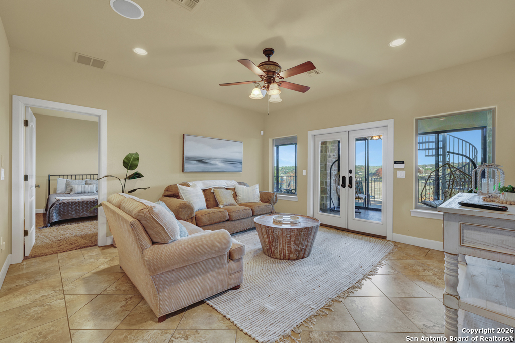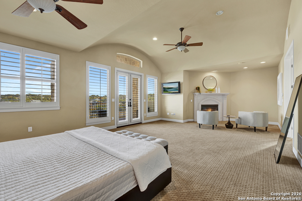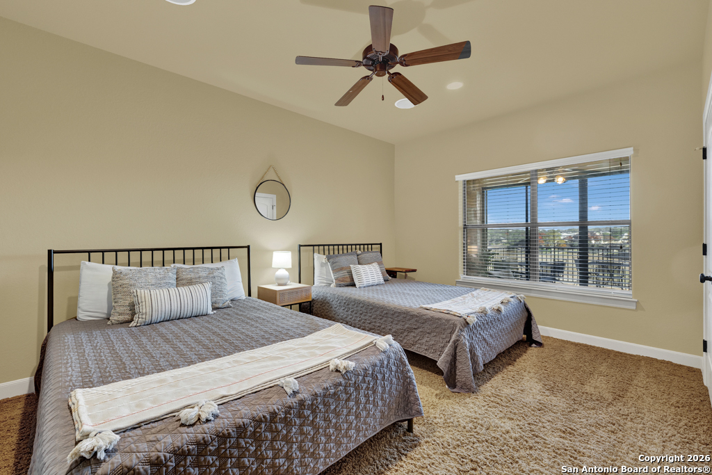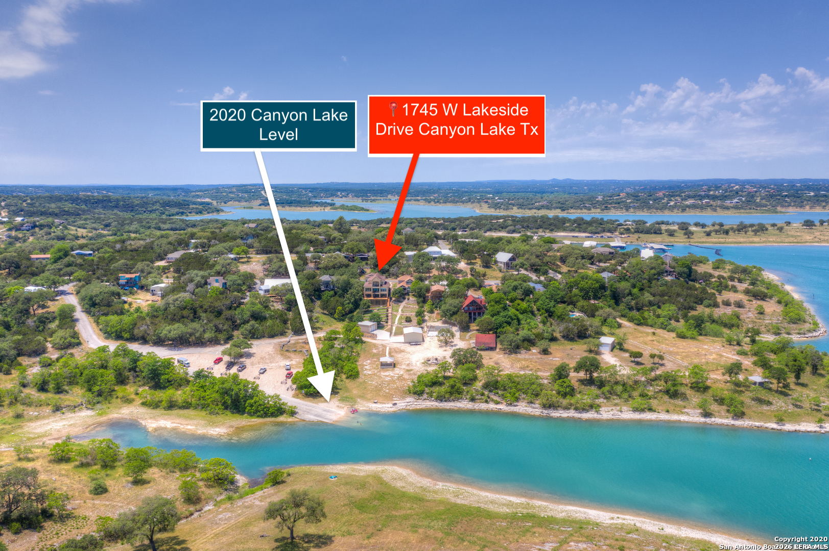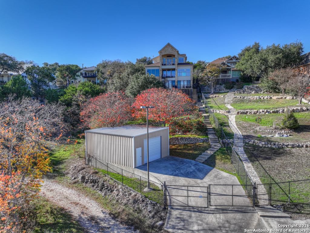 Experience luxury lakeside living in this exquisite 4,219 sq ft waterfront home, complete with an additional 1 bed, 1 bath 672 sq ft guest apartment-perfect for hosting family, friends, or generating rental income. Backing right up to the lake and Boat Ramp 8, this property offers unmatched convenience with dedicated boat storage which can be accessed directly to and from the ramp, making it a dream for boating and water-sport enthusiasts. This custom residence features a NEW ROOF, soaring ceilings, expansive glass-enclosed porches, and multiple private balconies that create a seamless connection between indoor comfort and the natural beauty of the lake. The main level offers true effortless living with an impressive 40' x 22' living room, framed by floor-to-ceiling windows and anchored by a cozy gas fireplace. The open-concept kitchen provides both function and elegance with granite counters and added conveniences that include a second kitchen sink, a generous pantry, and a reverse osmosis system for quality drinking water. An oversized laundry room and half bath complete this level. Ascend to the upper level, dedicated entirely to the stunning primary suite. This 30 x 16 private sanctuary includes its own gas fireplace, an oversized 22-foot closet, a generous office/landing area, and a serene private balcony-ideal for morning coffee or sunset relaxation. The spacious primary bath includes a walk-in shower and separate jetted tub. The lower level is designed for versatile living and entertainment, featuring a spacious second living room, two additional bedrooms, a full bathroom, and a large, enclosed porch with a built-in grill that brings the outdoors in, no matter the season. Conveniently located on the South Side of Canyon Lake with easy access to the nearby cities of San Antonio and New Braunfels. Less than 20 min to concerts and tubing at Whitewater on the Guadalupe and close to many great restaurants and wineries. Whether you're seeking a peaceful retreat or a show-stopping home this exceptional lakefront property offers an unmatched blend of luxury, space, and breathtaking views. Come out and make this dream your reality today!