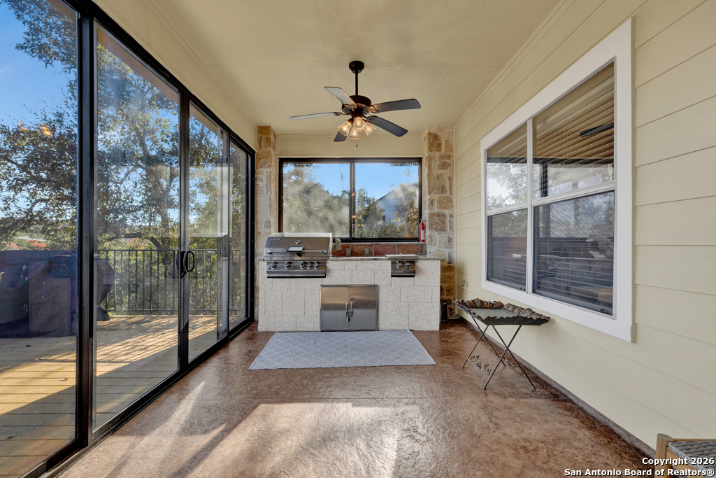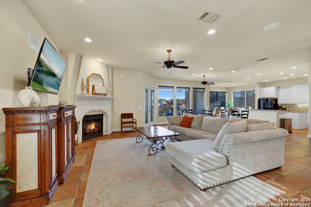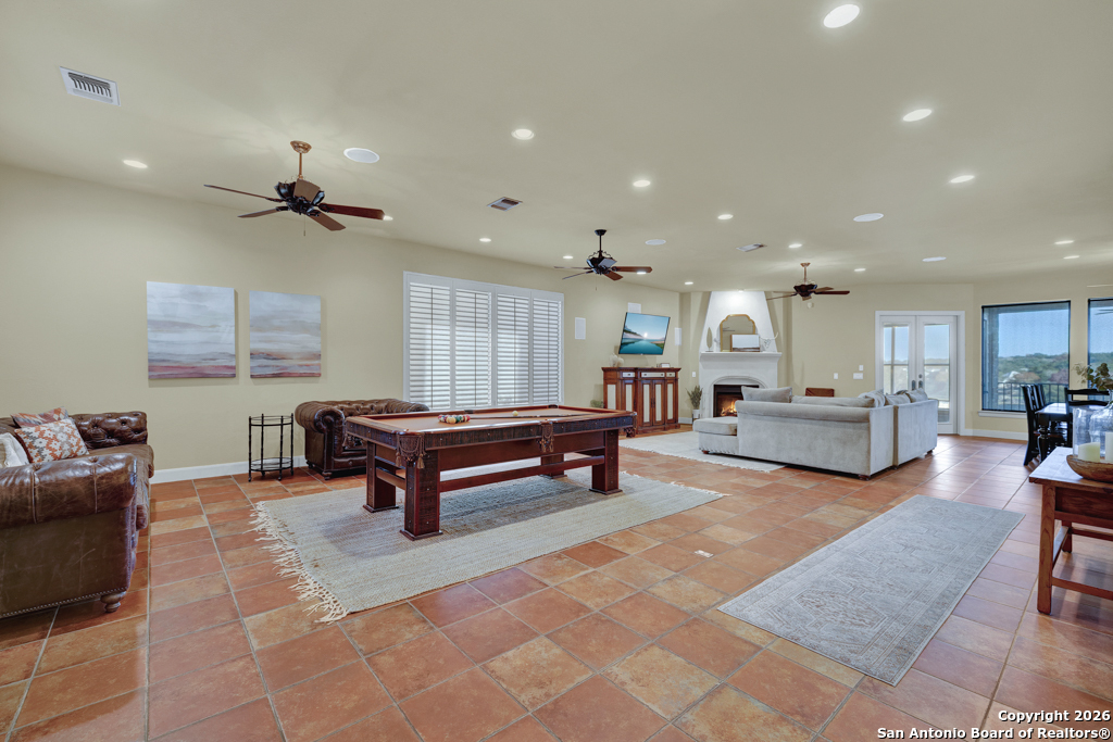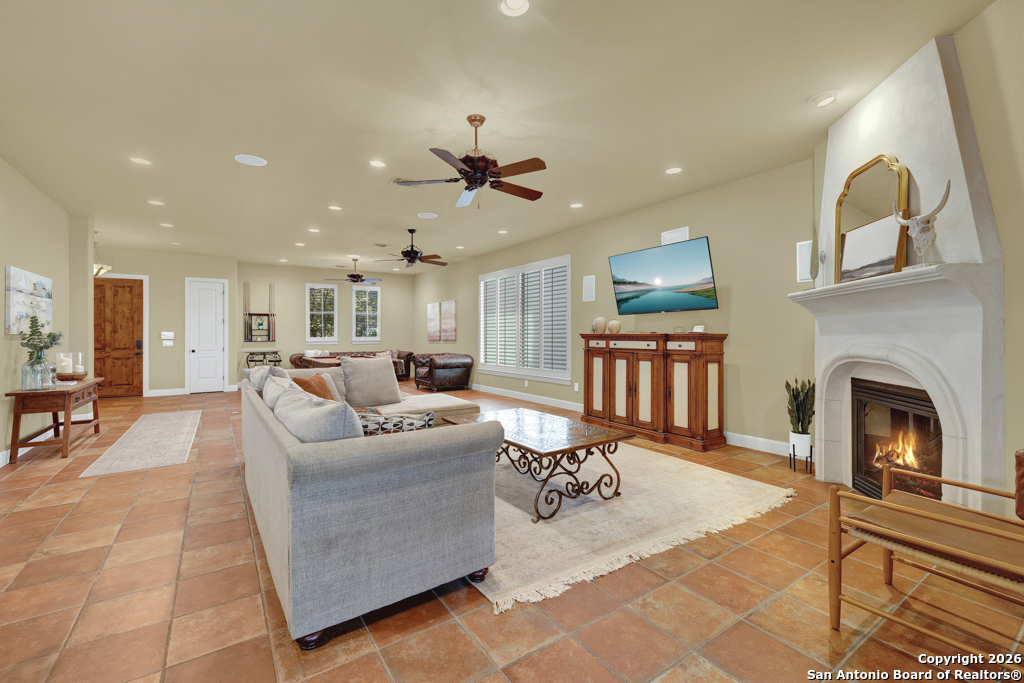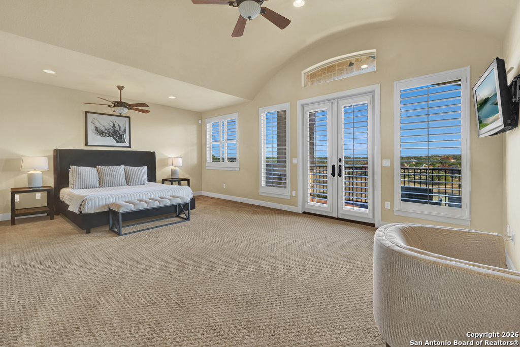 Experience luxury lakeside living in this exquisite 4,219 sq ft waterfront home, complete with an additional 1 bed, 1 bath 672 sq ft guest apartment-perfect for hosting family, friends, or generating rental income. Backing right up to the lake and Boat Ramp 8, this property offers unmatched convenience with dedicated boat storage which can be accessed directly to and from the ramp, making it a dream for boating and water-sport enthusiasts. This custom residence features a NEW ROOF, soaring ceilings, expansive glass-enclosed porches, and multiple private balconies that create a seamless connection between indoor comfort and the natural beauty of the lake. The main level offers true effortless living with an impressive 40' x 22' living room, framed by floor-to-ceiling windows and anchored by a cozy gas fireplace. The open-concept kitchen provides both function and elegance with granite counters and added conveniences that include a second kitchen sink, a generous pantry, and a reverse osmosis system for quality drinking water. An oversized laundry room and half bath complete this level. Ascend to the upper level, dedicated entirely to the stunning primary suite. This 30 x 16 private sanctuary includes its own gas fireplace, an oversized 22-foot closet, a generous office/landing area, and a serene private balcony-ideal for morning coffee or sunset relaxation. The spacious primary bath includes a walk-in shower and separate jetted tub. The lower level is designed for versatile living and entertainment, featuring a spacious second living room, two additional bedrooms, a full bathroom, and a large, enclosed porch with a built-in grill that brings the outdoors in, no matter the season. Conveniently located on the South Side of Canyon Lake with easy access to the nearby cities of San Antonio and New Braunfels. Less than 20 min to concerts and tubing at Whitewater on the Guadalupe and close to many great restaurants and wineries. Whether you're seeking a peaceful retreat or a show-stopping home this exceptional lakefront property offers an unmatched blend of luxury, space, and breathtaking views. Come out and make this dream your reality today!