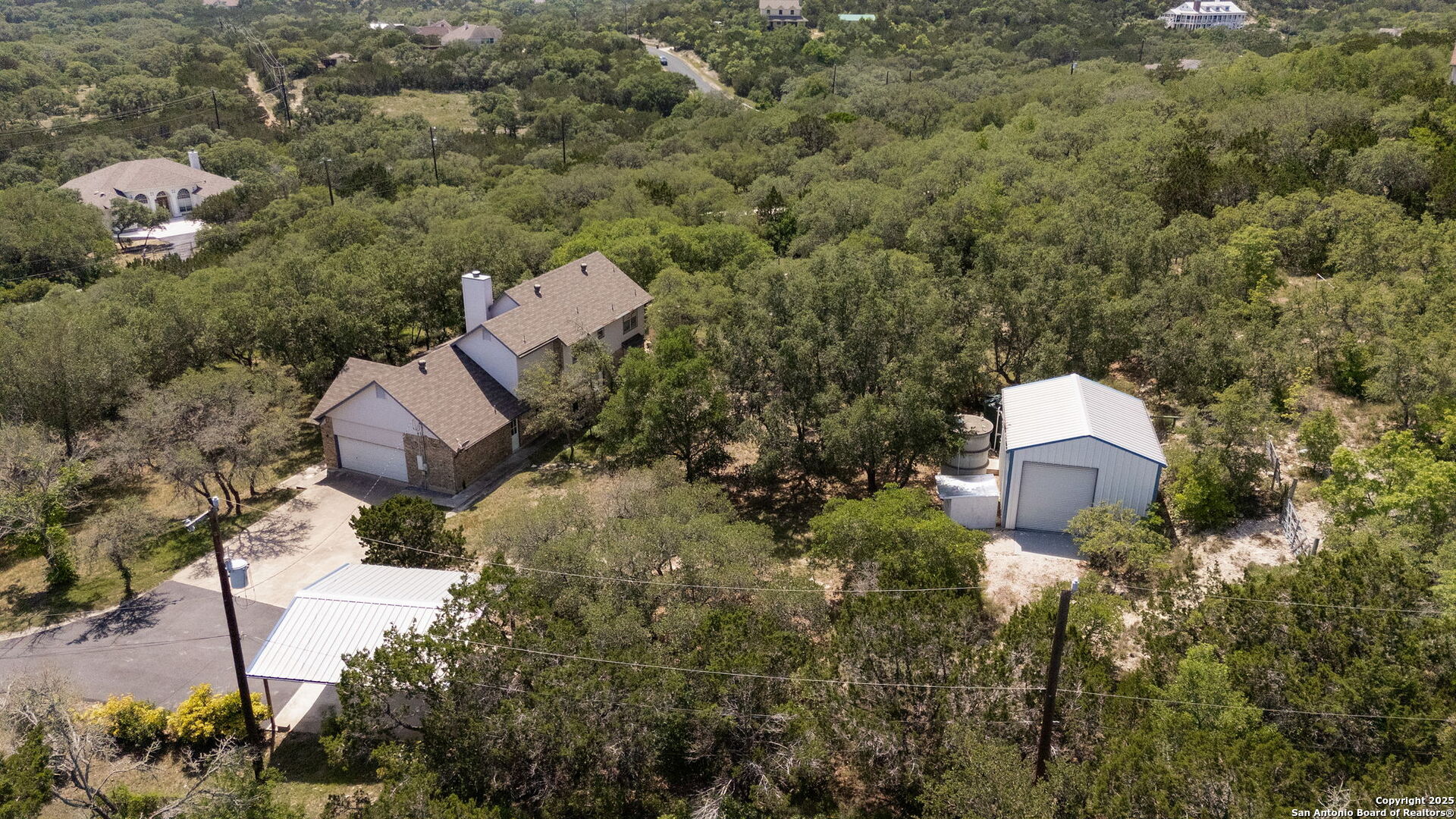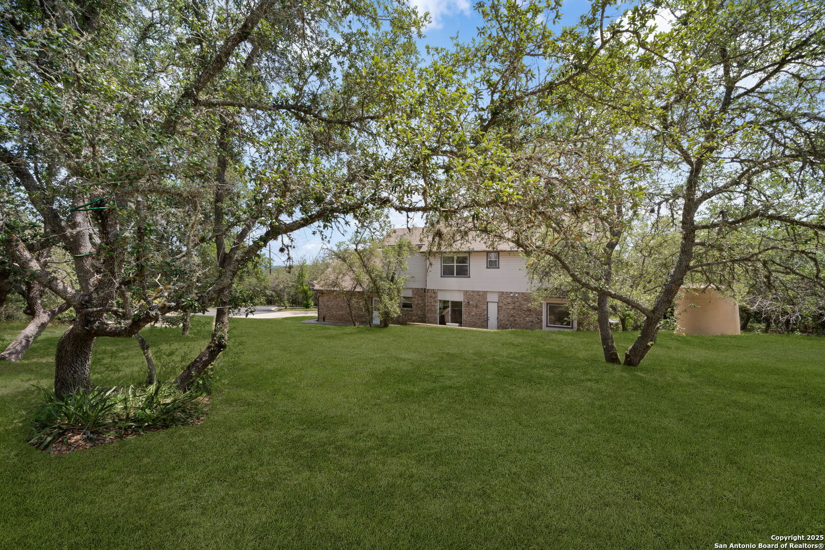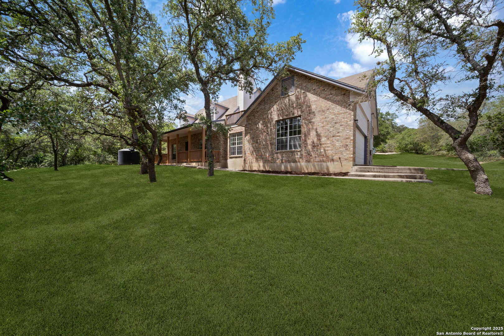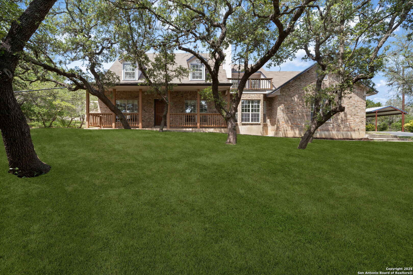 Welcome to your own private retreat in the heart of Helotes! Tucked away at the end of a peaceful cul-de-sac, this well-maintained brick home sits on an expansive 2.57-acre lot shaded by mature oak trees, offering unmatched privacy, serenity, and space to roam-with no city taxes! Step inside to discover three oversized bedrooms, including a luxurious primary suite, 2 bathrooms, and a flexible bonus room upstairs-perfect for a home office, gym, or playroom. The kitchen is bright and functional, outfitted with energy-efficient LED lighting and views of the peaceful backyard. Step out onto the sprawling upstairs balcony deck and feel like you're living in a treehouse-an ideal spot for morning coffee or unwinding at sunset. Outdoors, enjoy the 30-foot covered front porch, a 24x20 detached workshop! The generous backyard offers space to garden, entertain, or simply enjoy nature in total privacy. Owners have lovingly cared for this home, and it shows. With so much land and flexible space, this property offers endless potential to live, work, and play in one of the most desirable areas of Helotes. Don't miss your chance to own this rare gem-schedule your private tour today!