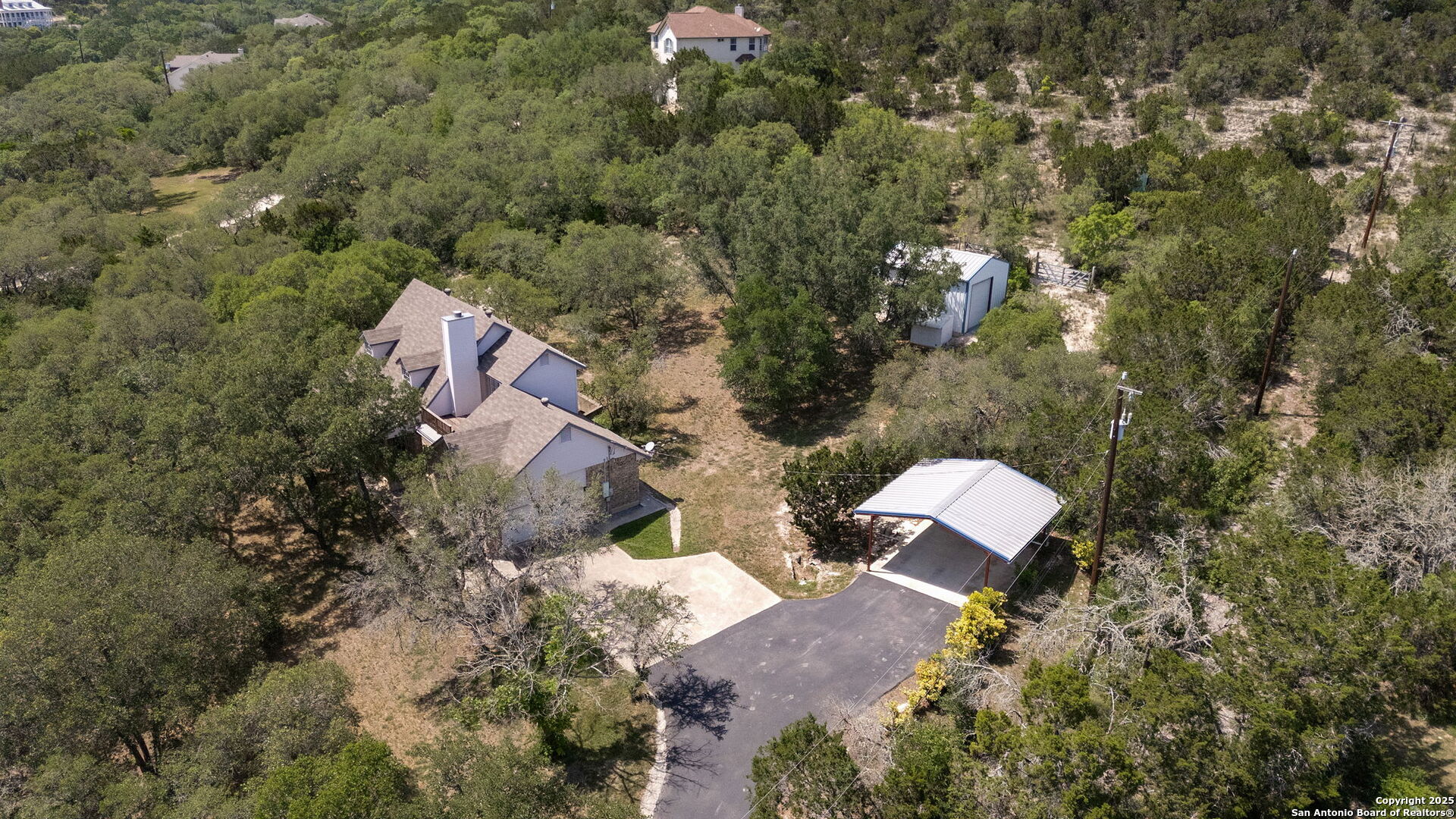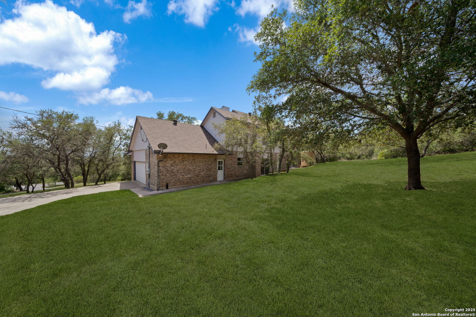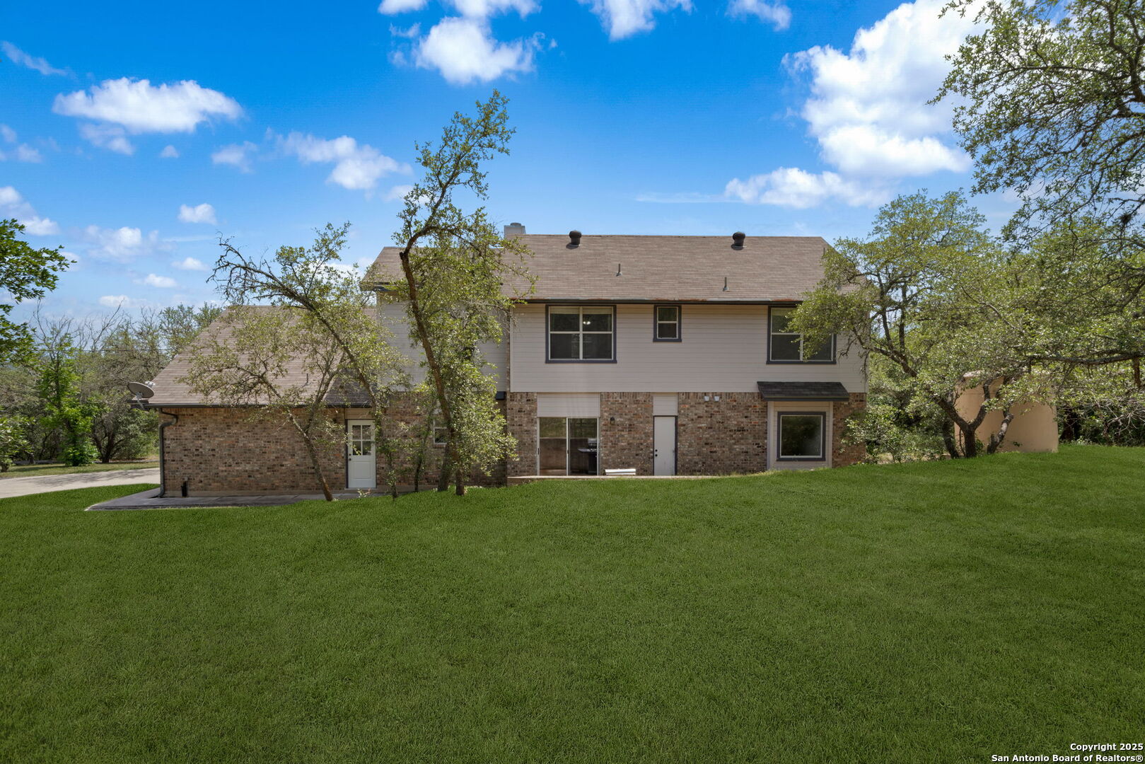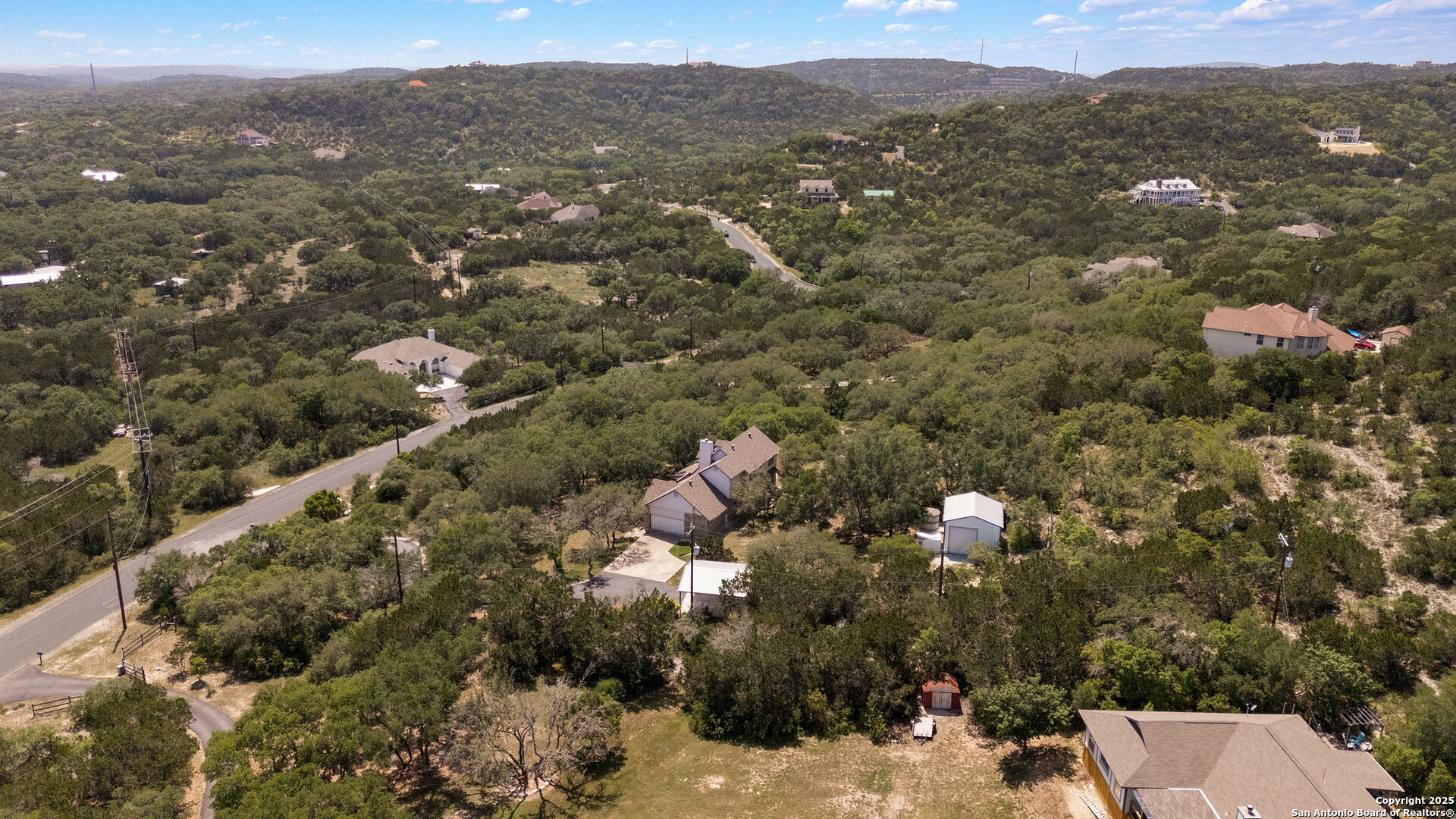 Welcome to your own private retreat in the heart of Helotes! Tucked away at the end of a peaceful cul-de-sac, this well-maintained brick home sits on an expansive 2.57-acre lot shaded by mature oak trees, offering unmatched privacy, serenity, and space to roam-with no city taxes! Step inside to discover three oversized bedrooms, including a luxurious primary suite, 2 bathrooms, and a flexible bonus room upstairs-perfect for a home office, gym, or playroom. The kitchen is bright and functional, outfitted with energy-efficient LED lighting and views of the peaceful backyard. Step out onto the sprawling upstairs balcony deck and feel like you're living in a treehouse-an ideal spot for morning coffee or unwinding at sunset. Outdoors, enjoy the 30-foot covered front porch, a 24x20 detached workshop! The generous backyard offers space to garden, entertain, or simply enjoy nature in total privacy. Owners have lovingly cared for this home, and it shows. With so much land and flexible space, this property offers endless potential to live, work, and play in one of the most desirable areas of Helotes. Don't miss your chance to own this rare gem-schedule your private tour today!