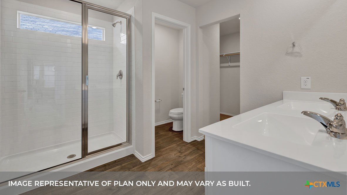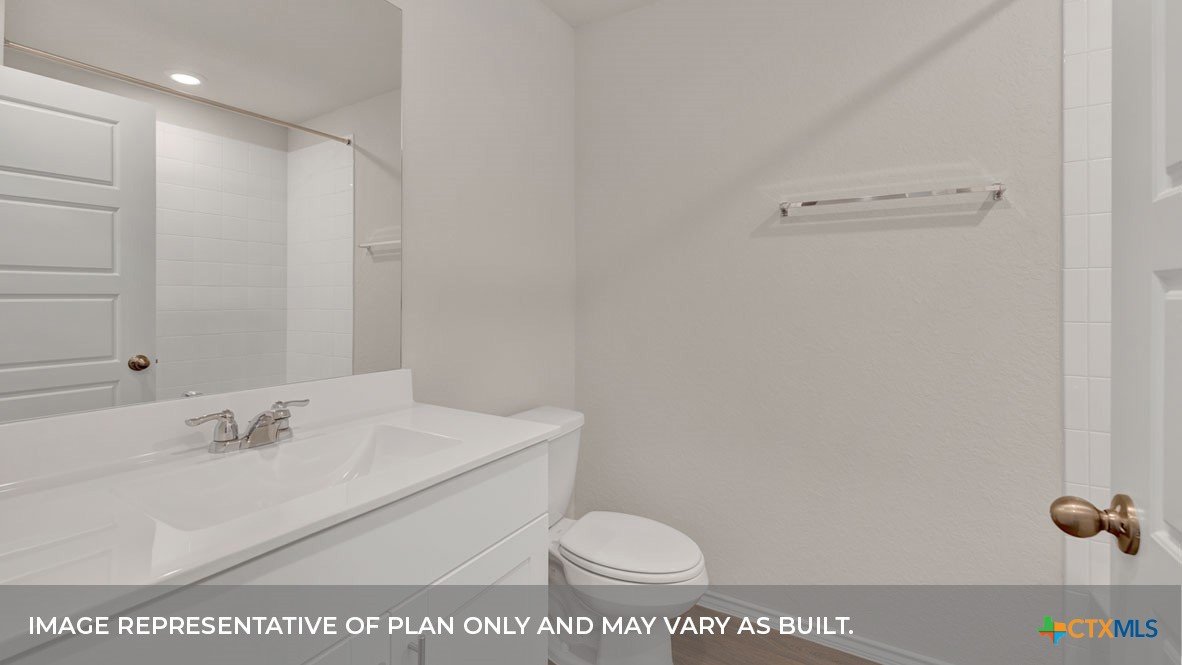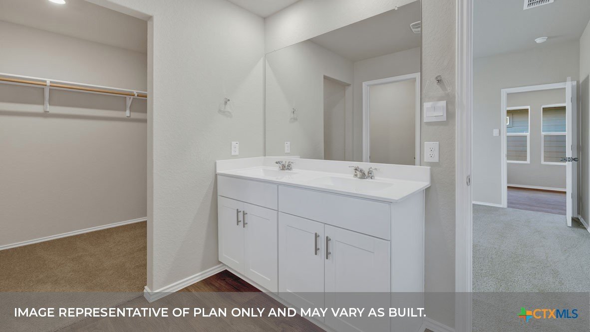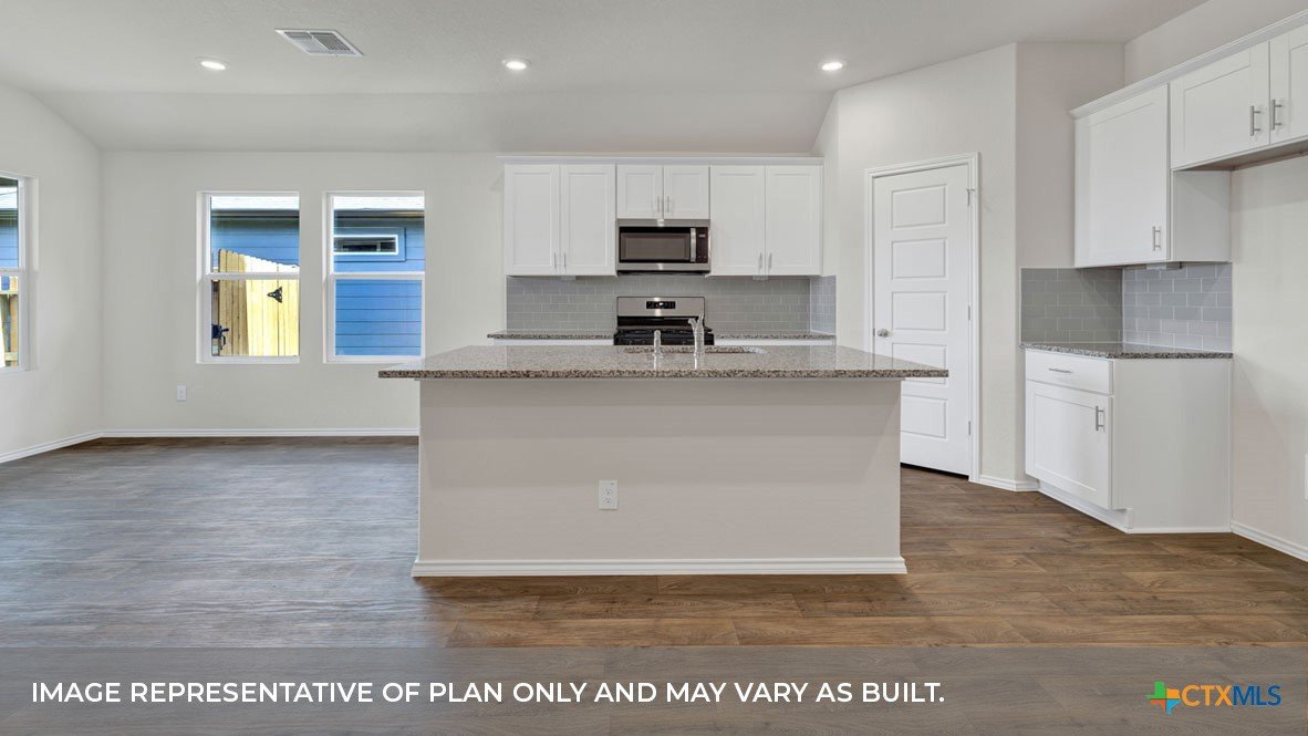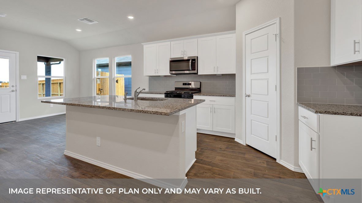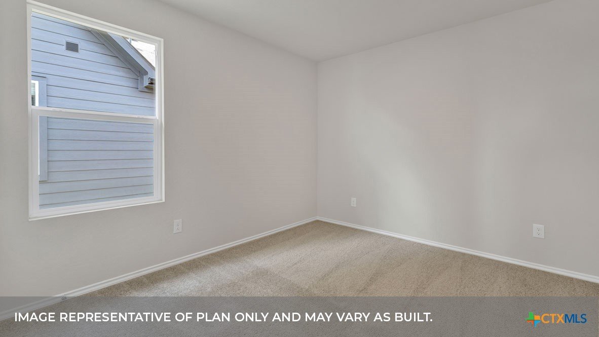 MAY/JUNE COMPLETION DATE. Step into the Baxtor at Saengerhalle Meadows, one of our communities in New Braunfels, Texas. This one-story home is perfect for small families or homeowners looking to downsize. Inside this 1,402 square foot home, you will find 3 bedrooms, 2 bathrooms and a 2-car garage. Our homes in Saengerhalle Meadows feature farmhouse exteriors. Coming into the home from the covered front porch, you’ll find a foyer that leads you to the heart of the house, the living area. The open concept design of kitchen, dining and family room allows for easy entertaining and everyday living. The kitchen includes granite countertops, a large island with an undermount sink, a corner pantry closet, stainless-steel appliances and 36’’ upper cabinets. The primary bedroom is off the dining room and includes its own attached bathroom, making the start of your day a seamless step from sleep to your morning routine. Enjoy the 5’ walk in shower, double vanity, and separate door to the toilet for privacy. A walk-in closet with generous shelving is connected to the bathroom. The secondary bedrooms are off the foyer at the front of the home. In the hall between the bedrooms is the secondary bathroom, which includes a shower/tub combination. Each bedroom includes a closet with shelving. The utility room is tucked away between the foyer and kitchen, convenient to all bedrooms once the clothes are cleaned. The Baxtor includes vinyl flooring throughout the common areas of the home, and carpet in the bedrooms. All our new homes feature a covered back patio, full sod, an irrigation system in the front and back yard, and a 6’ privacy fence around the back yard. This home includes our America’s Smart Home base package, which includes the Amazon Echo Pop, Front Doorbell, Front Door Deadbolt Lock, Home Hub, Thermostat, and Deako® Smart Switches.