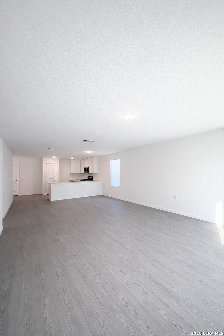 Brand new 3-bedroom, 2-bath home featuring an open floor plan and quartz island kitchen with white cabinetry, stainless steel appliances including dishwasher and microwave, and gas cooking. Private primary suite is separated from the two secondary bedrooms and includes a large walk-in closet. Home backs to a greenbelt, offering added privacy with no rear neighbors. Additional features include a dedicated laundry room, private backyard, and two-car garage. Located near the new University Hospital, Texas A&M campus, with convenient access to Downtown San Antonio and Lackland Air Force Base.