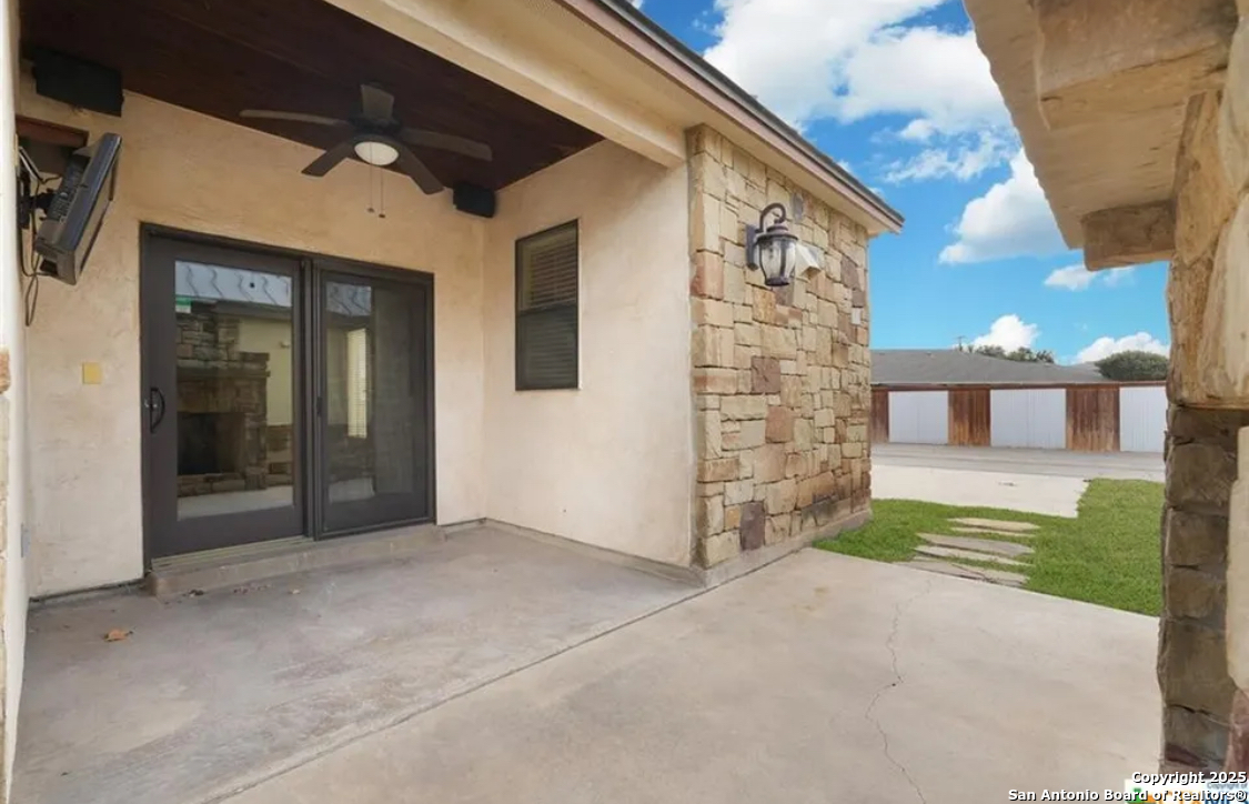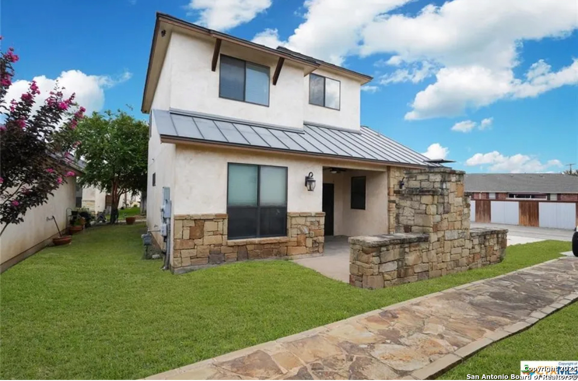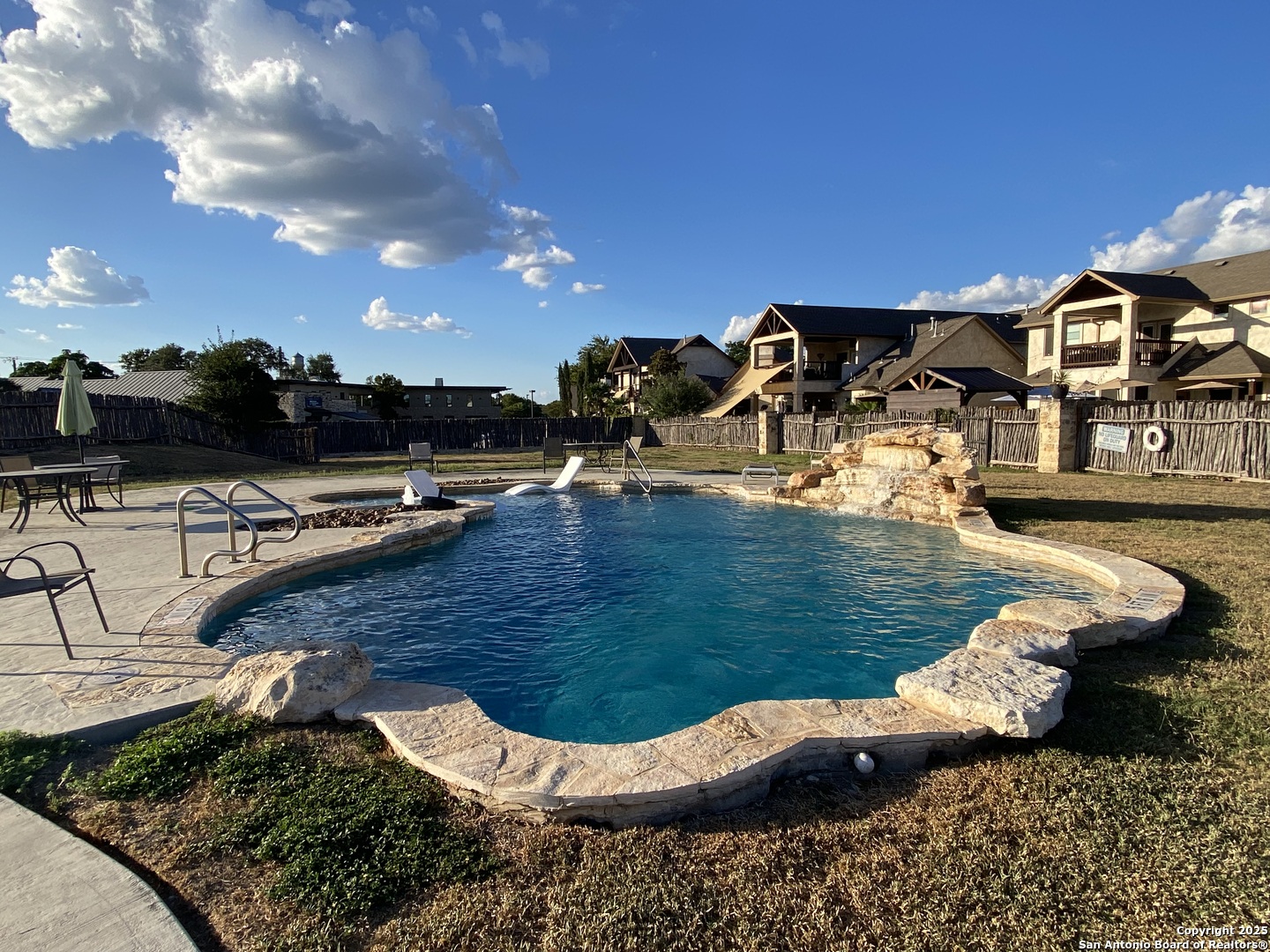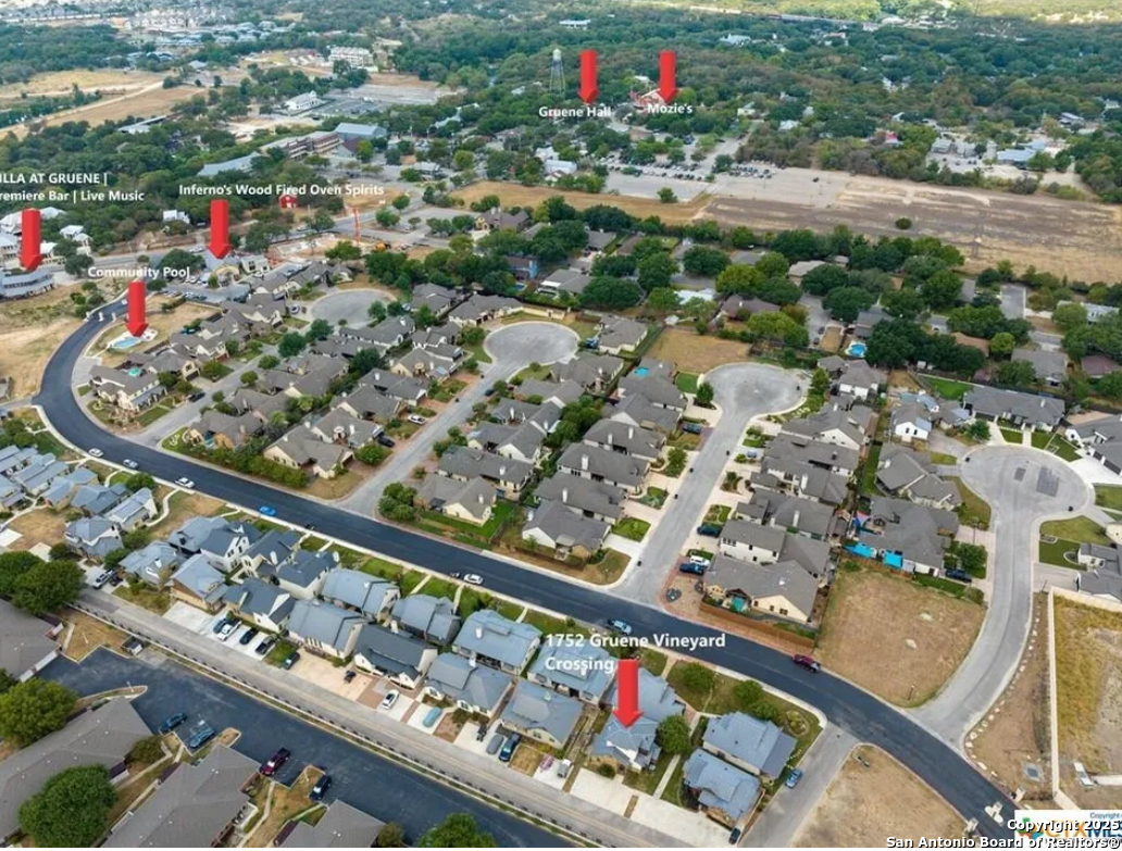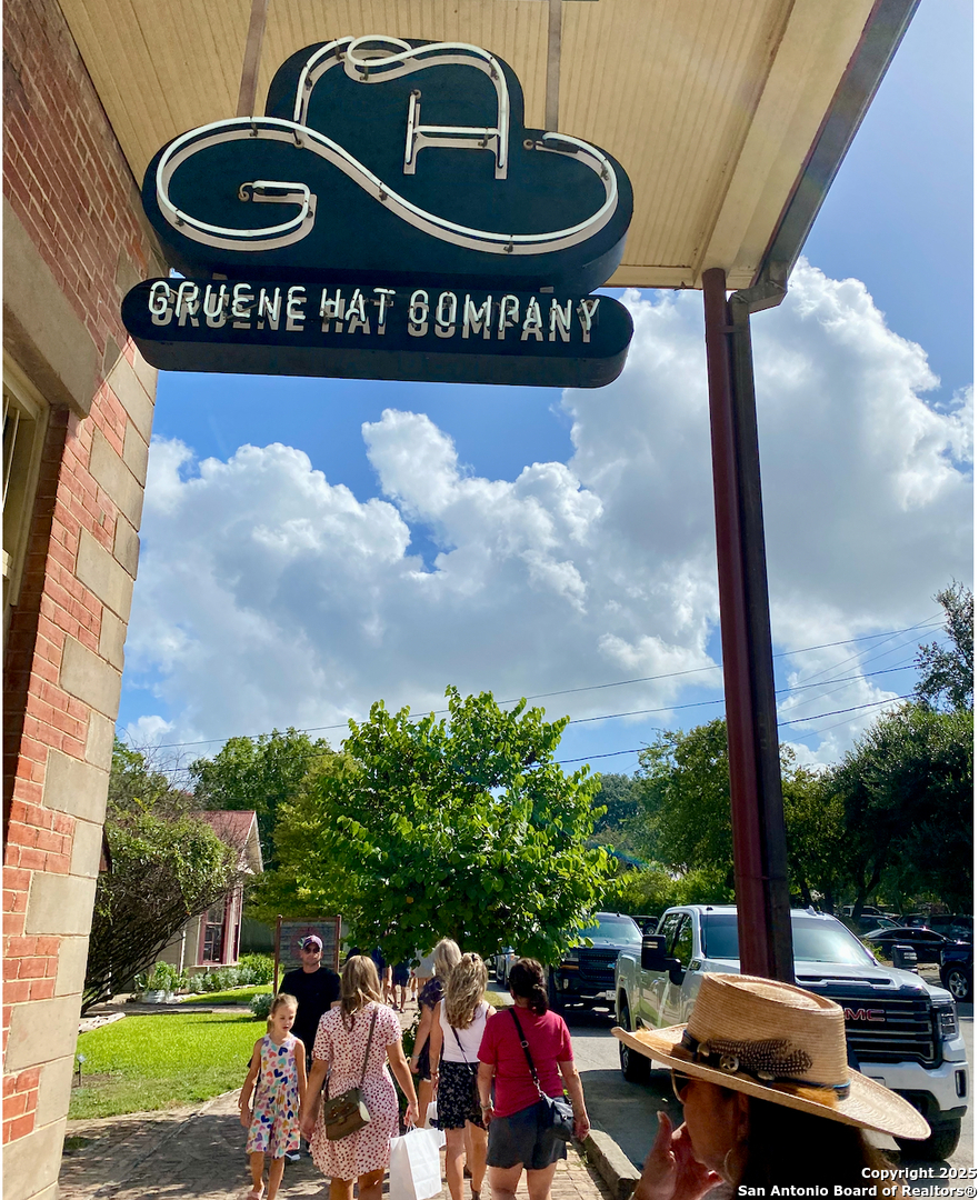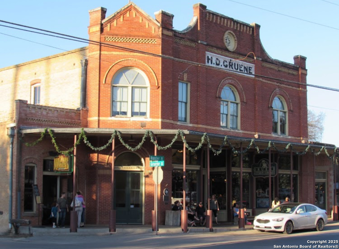 If you are looking for a stylish, well-built place to live near all of the fun in Historic Gruene, look no further! This charming 3 Bedroom, 2.5 bath townhome comes fully equipped with all appliances, two mounted TV's, and the yard is maintained for you, making it turn key and ready for you now! The kitchen has an abundance of custom cabinetry for its size, upgraded gas range, stainless steel appliances and gorgeous granite countertops. The primary suite on the main level boasts a large upgraded tile shower, walk in closet and offers privacy. Another 2 bedrooms, a full bath and a loft office area are on the next level up. You will notice the custom cabinetry is continued throughout the home, easy to maintain stained concrete floors, and a gorgeous solid wood rustic front door to welcome your guests. The secure gated community also offers a sparkling large pool with rock waterfall for you to enjoy! Enjoy an evening at home on your back patio with a huge rock fireplace. Live music is only steps away to The Villa and Gruene Hall! Fine dining at The Gruene Door, Gruene River Grill, Gristmill, Mozies, The Birdhouse, among many other popular go-to spots. Live music venues are endless and then there is the numerous shopping venues. Gruene Putt Putt is also open daily! Live the lifestyle without the commitment. Call today for a private viewing before this home is gone!