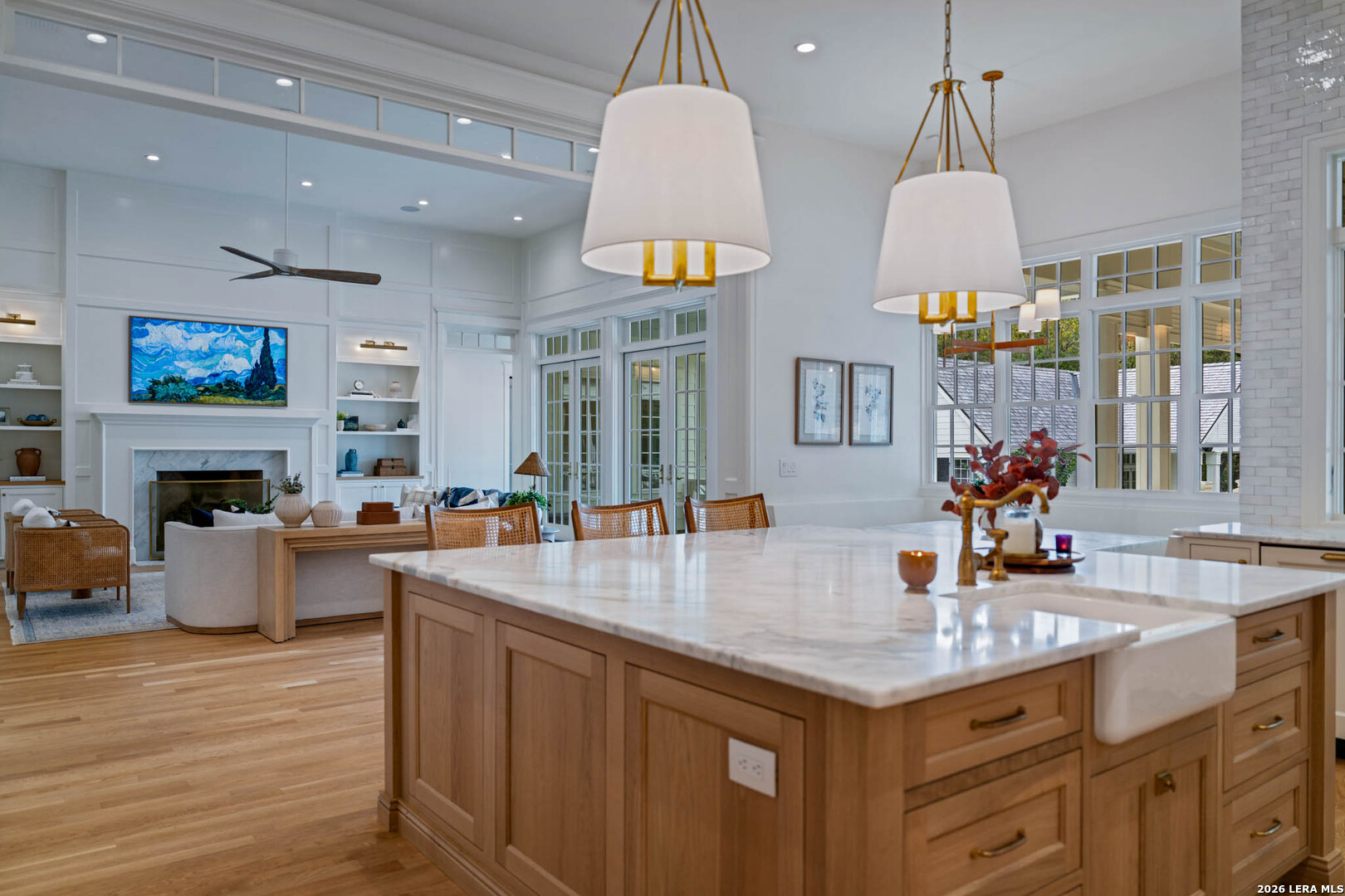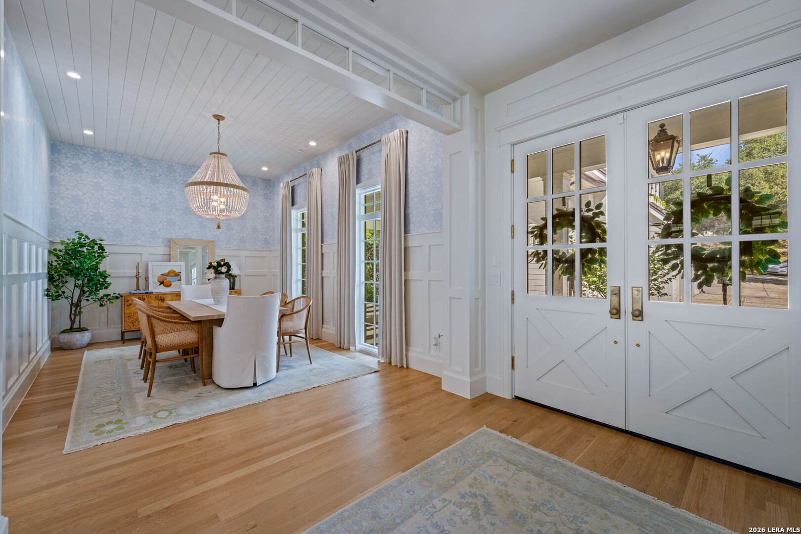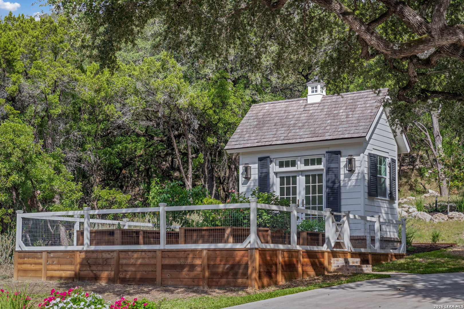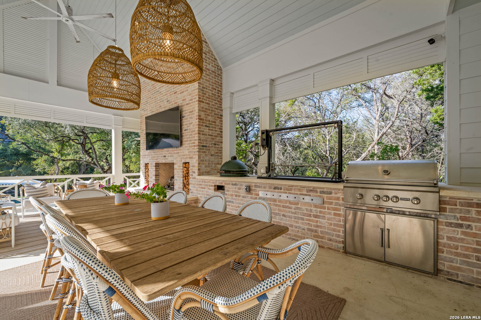 Nestled within the private, gated community of Riada, 1755 Riada Drive sits on 1.48 meticulously landscaped acres with a grand entrance and 100 feet of private Guadalupe River frontage. This rare estate is a blend of timeless elegance and modern luxury. Spanning over 6,550 sq ft, this extraordinary property includes a total of 6 bedrooms, 7.5 bathrooms, a detached casita, and a private office suite above the garage-perfect for guests or remote work. Inside, you're greeted by hardwood floors, custom millwork, and luxury finishes throughout. The heart of the home is a chef's dream kitchen featuring marble countertops, white oak cabinetry, banquette seating, a Lacanche Sully French range, and top-of-the-line appliances, all complemented by unlacquered brass fixtures that will naturally develop a beautiful patina overtime, adding character and warmth to the home's refined finish. The main floor features a spacious primary suite with a luxurious bathroom, as well as 3 additional guest bedrooms, each with its own private bathroom. Upstairs, enjoy a bunkroom, media room, full bar, and top-of-the-line Uneekor golf simulator for entertainment and relaxation. The detached casita offers comfortable and private living with a bedroom, bathroom, kitchenette, and living room, all equipped with high-end Bosch appliances-ideal for guests or extended stays. Step outside to your turf-lined backyard oasis, complete with a heated pool and spa, automatic pool cover, and custom landscaping. The steps down from the pool lead to a lush St. Augustine pathway just steps away from the pristine Guadalupe River, where you'll find a private river patio and direct river access. At the front of the property, you'll be greeted with raised garden beds and a garden shed, adding charm and functionality. The landscape is supported by a full irrigation system with a river pump, while the home operates on a private water well, water softener system, tankless water heaters, an aerobic septic system, and NBU Electricity. Whether entertaining or enjoying peaceful riverfront views, 1755 Riada Drive offers the ultimate in Hill Country luxury-just minutes from the charm of Gruene, downtown New Braunfels, and the area's top attractions.