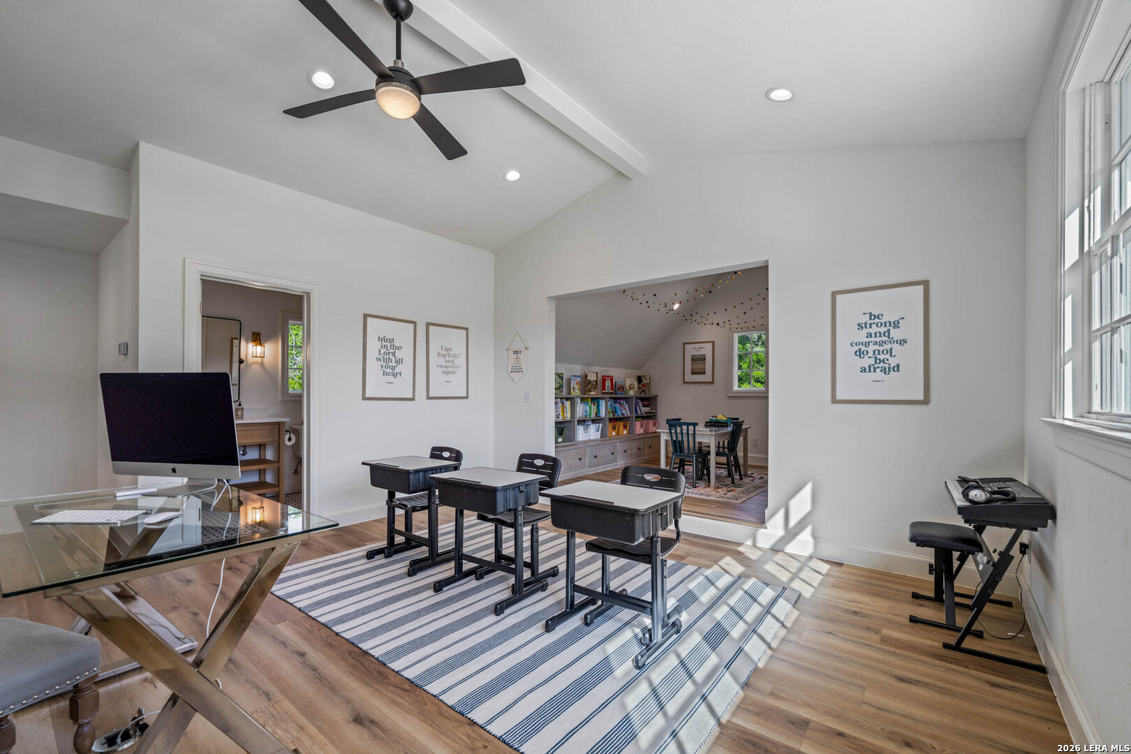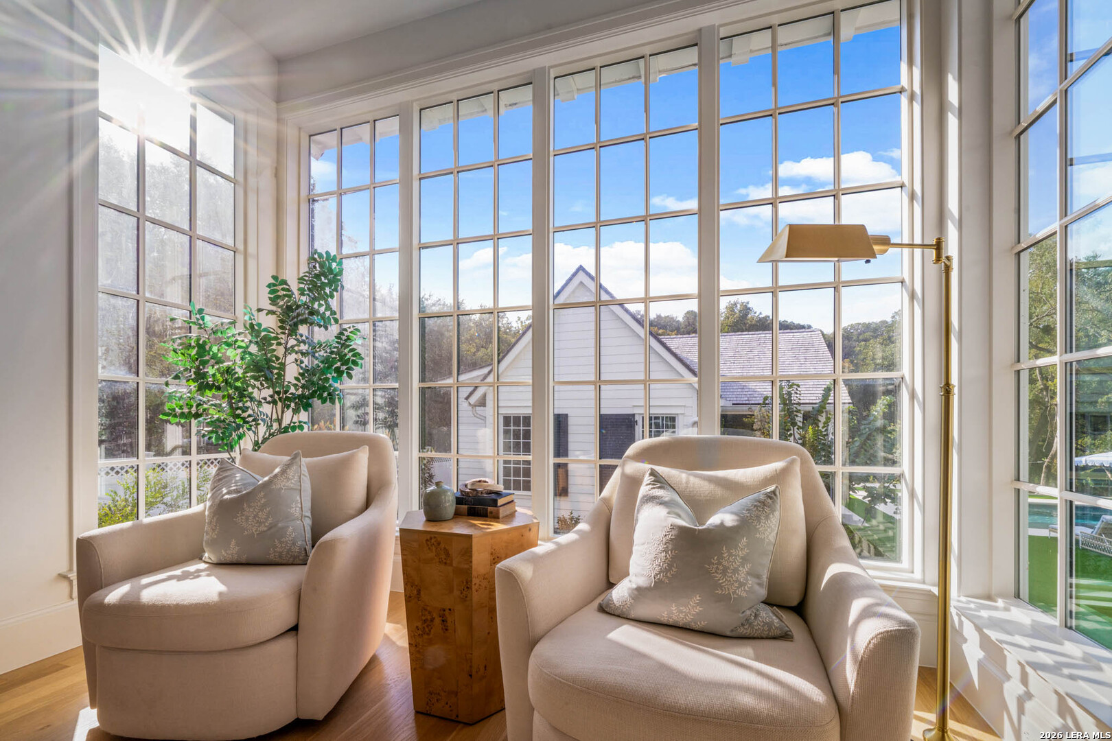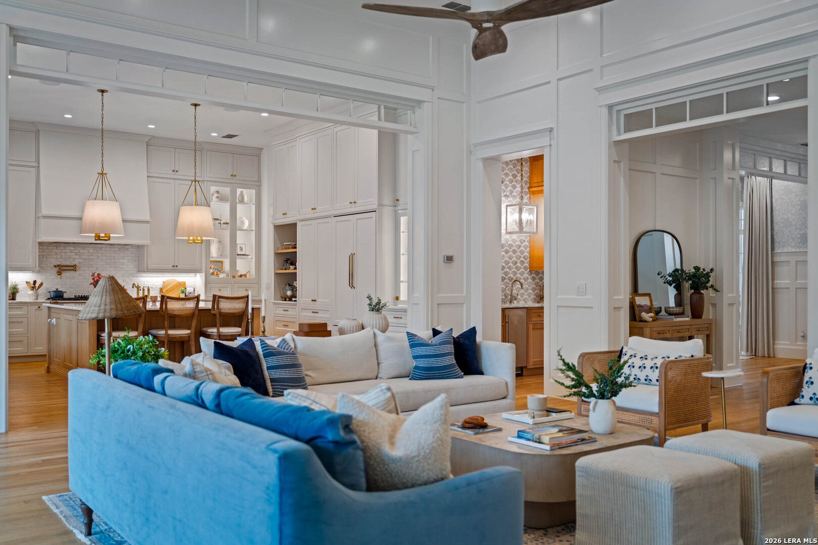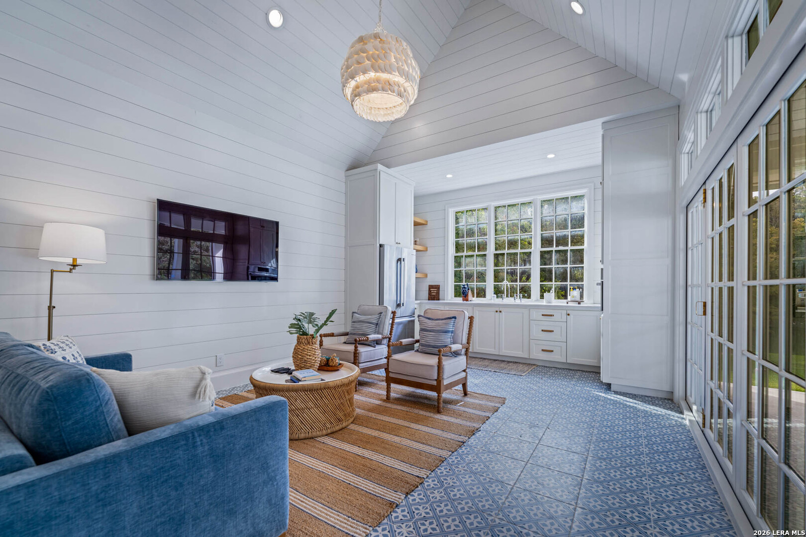 Nestled within the private, gated community of Riada, 1755 Riada Drive sits on 1.48 meticulously landscaped acres with a grand entrance and 100 feet of private Guadalupe River frontage. This rare estate is a blend of timeless elegance and modern luxury. Spanning over 6,550 sq ft, this extraordinary property includes a total of 6 bedrooms, 7.5 bathrooms, a detached casita, and a private office suite above the garage-perfect for guests or remote work. Inside, you're greeted by hardwood floors, custom millwork, and luxury finishes throughout. The heart of the home is a chef's dream kitchen featuring marble countertops, white oak cabinetry, banquette seating, a Lacanche Sully French range, and top-of-the-line appliances, all complemented by unlacquered brass fixtures that will naturally develop a beautiful patina overtime, adding character and warmth to the home's refined finish. The main floor features a spacious primary suite with a luxurious bathroom, as well as 3 additional guest bedrooms, each with its own private bathroom. Upstairs, enjoy a bunkroom, media room, full bar, and top-of-the-line Uneekor golf simulator for entertainment and relaxation. The detached casita offers comfortable and private living with a bedroom, bathroom, kitchenette, and living room, all equipped with high-end Bosch appliances-ideal for guests or extended stays. Step outside to your turf-lined backyard oasis, complete with a heated pool and spa, automatic pool cover, and custom landscaping. The steps down from the pool lead to a lush St. Augustine pathway just steps away from the pristine Guadalupe River, where you'll find a private river patio and direct river access. At the front of the property, you'll be greeted with raised garden beds and a garden shed, adding charm and functionality. The landscape is supported by a full irrigation system with a river pump, while the home operates on a private water well, water softener system, tankless water heaters, an aerobic septic system, and NBU Electricity. Whether entertaining or enjoying peaceful riverfront views, 1755 Riada Drive offers the ultimate in Hill Country luxury-just minutes from the charm of Gruene, downtown New Braunfels, and the area's top attractions.