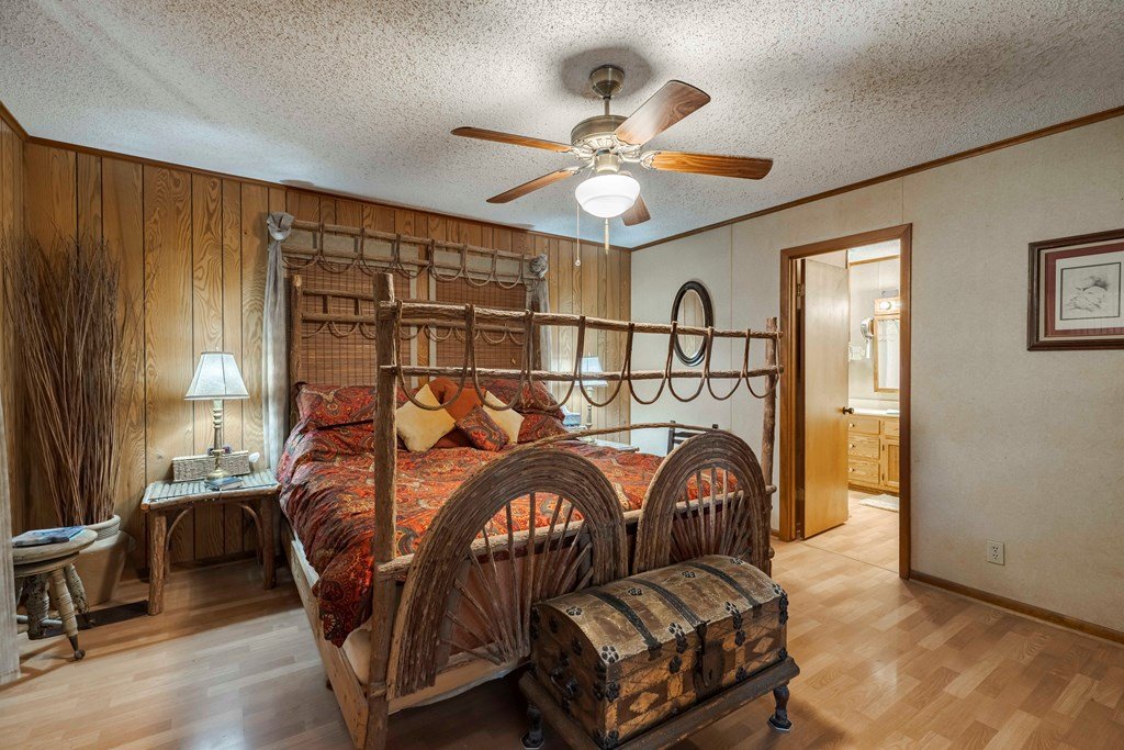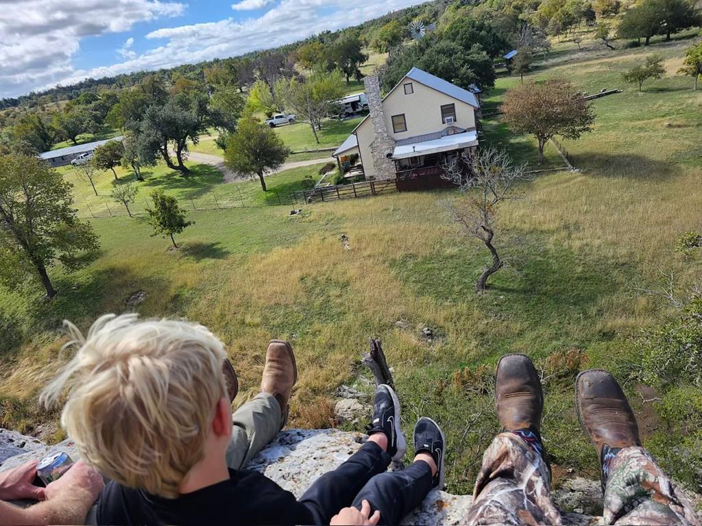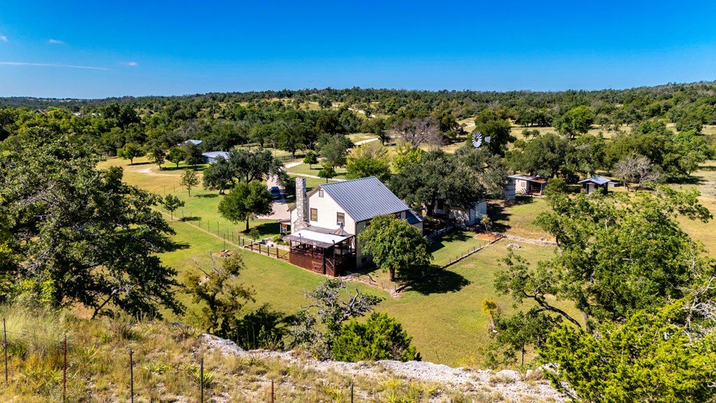 Experience the epitome of Hill Country ranch living at the L-Bar Ranch, featuring 80 +/- acres of expansive land with a spring-fed creek that provides a serene setting for swimming, wading, and wildlife watching. This ag-exempt property is perfectly suited for a dedicated ranch buyer, offering abundant natural resources and essential ranching infrastructure. The ranch includes three wells, two functional windmills, and a pasture stock tank, supporting both livestock and agricultural operations. Comprehensive ranch facilities feature a hay barn, livestock barn with a feed room, loading chutes, and well-organized pens and storage options. A high-fenced garden, chicken coop with a run, deer blinds, and feeders further enhance the ranch's self-sufficiency and appeal to those interested in game management or small-scale farming. The main residence, a classic Texas-style farmhouse, provides a comfortable living space with an eat-in kitchen, inviting living area with a fireplace, and a primary bedroom suite. Additional accommodations include two more bedrooms upstairs, a full bath, large bonus room, and office. The property also boasts a cozy 1-bedroom, 1-bath guest cabin.