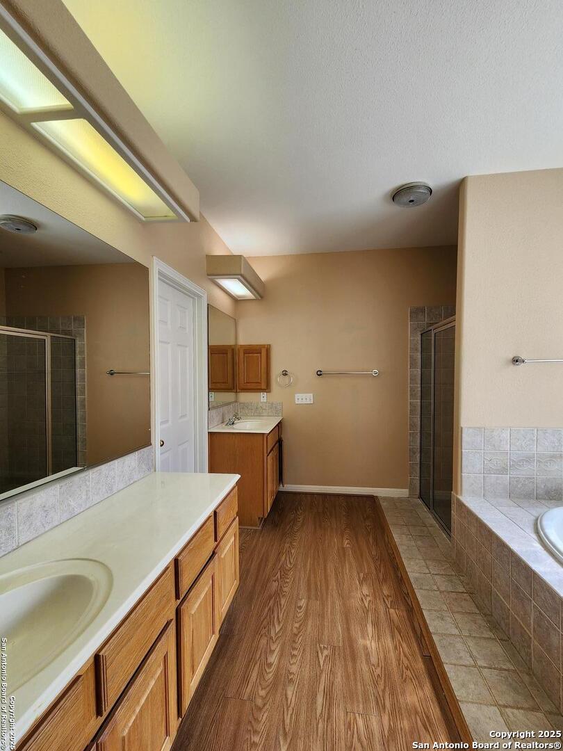 Live in Oak Run Subdivision! Close to restaurants, shopping & HEB! Corner lot with mature trees. Formal dining room & dining in kitchen. Sunroom off the kitchen. Flooring is a mix of carpet, luxury vinyl plank, wood, ceramic tile, & laminate. Kitchen Includes: fridge, dishwasher, built in microwave, stove/oven range electric, granite countertops, & an island. Other features: washer/dryer, crown molding, ceiling fans, vaulted ceilings, high ceilings, walk in closes, built in shelves, walk in shower, garden tub, garage door opener, water softener, patio, extra backyard storage and a fenced in yard. NBISD Schools. Pets Ok (2 max, 50 lbs) Cats - must provide proof of spay / neuter. Community Amenities: pool, playground, tennis courts & a basketball court.