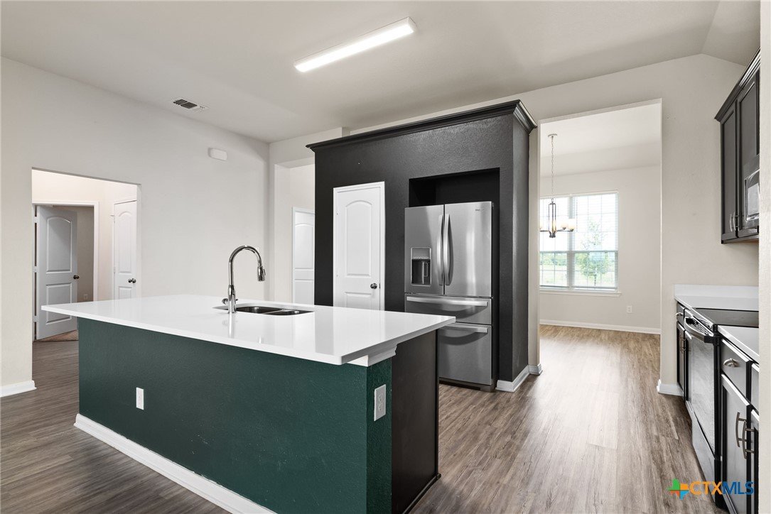 Welcome to this stunning home located in the desirable South Pointe Subdivision in Temple, TX. Built in 2019, this modern home boasts 1679 sq ft of living space, featuring 3 spacious bedrooms and 2 full bathrooms. The primary bathroom is a true oasis, complete with a double vanity, separate shower, and a luxurious garden tub. The kitchen is a chef's dream, equipped with granite counters, a pantry for extra storage, and a microwave vent hood. The stainless steel and black appliances add a sleek, modern touch. The home also features durable vinyl plank flooring throughout, adding to its contemporary appeal. The separate dining area is perfect for hosting dinner parties or enjoying a meal with loved ones. The home also includes a 2 car garage, providing ample space for vehicles or additional storage. The property is enclosed with a wood privacy fence, offering a sense of seclusion and safety. This home truly has it all, combining modern amenities with a prime location.