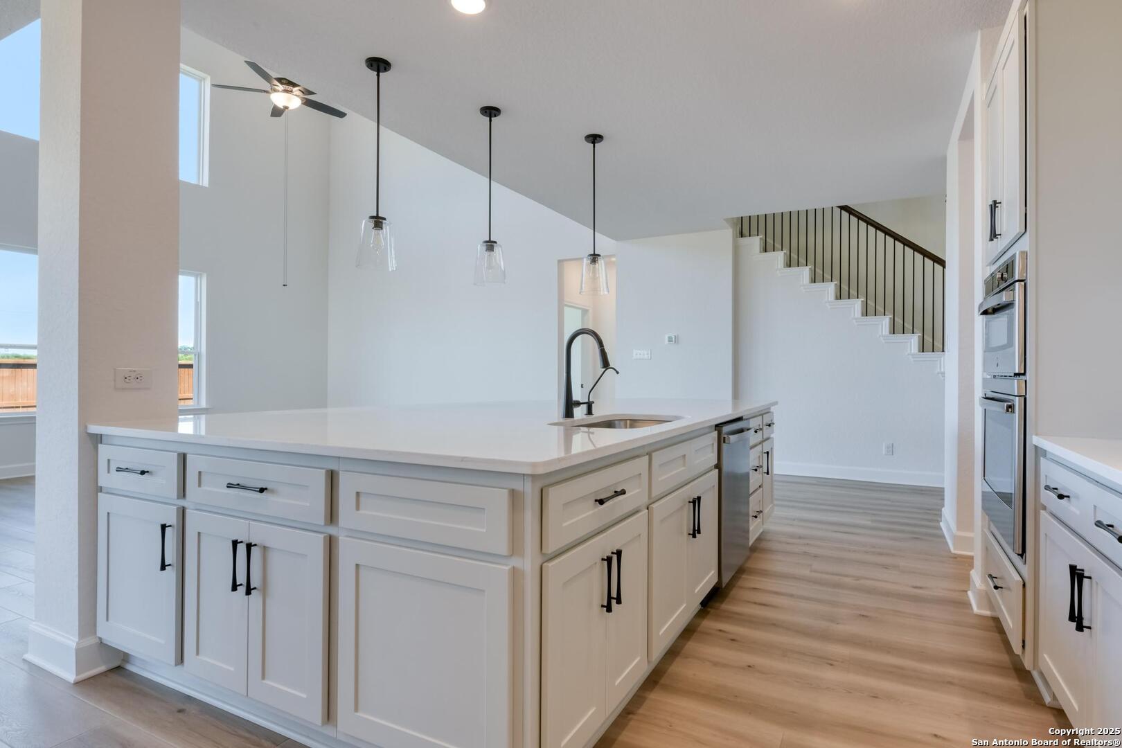 Designed for both entertaining and everyday living, this two-story home offers a thoughtful layout that balances style, function, and comfort. At the heart of the home, the gourmet kitchen includes a spacious center island and a wood vent hood, flowing seamlessly into the open family room. Soaring two-story windows in the family room fill the space with natural light and frame views of the covered patio-perfect for indoor-outdoor gatherings. A private study provides an ideal spot for working from home or pursuing hobbies, while the optional planning center adds even more flexibility. Guests will appreciate the convenience of a first-floor suite with a full bath, while upstairs features three secondary bedrooms and a game room that can double as a media space. A striking two-story foyer and open railing overlooking the family room add elegance and visual appeal. Nestled on a cul-de-sac lot, this home perfectly combines comfort, versatility, and style. This home features design selections thoughtfully curated by our professional studio team. Each finish, from flooring and cabinetry to countertops and special touches, is chosen with care to create a cohesive and beautifully balanced look. Guided by timeless design principles and inspired by modern lifestyles, the result is a home that is both stylish and welcoming from the moment you step inside. This home is located in Megan's Landing, a vibrant family-friendly community nestled in the scenic Texas Hill Country. Enjoy quick access to shopping, dining, and entertainment, plus nearby outdoor escapes like the Medina River and Government Canyon State Natural Area. With top-rated Medina Valley ISD schools, Megan's Landing offers the perfect blend of natural beauty, convenience, and community for your family's next chapter.