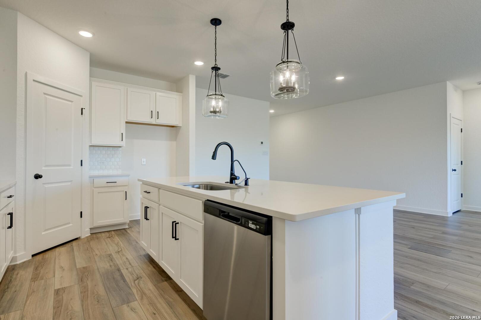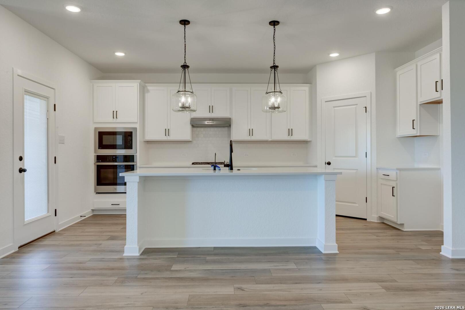 Spacious one story with a chef-inspired kitchen, featuring a generous center island, quartz countertops and a walk-in pantry. The kitchen opens into the dining area and expansive family room. The primary suite includes a spacious walk-in closet and a spa-like bath with an oversized walk-in shower. Three additional bedrooms-each with its own walk-in closet-provide flexible options for guests, children, or a dedicated home office or hobby space. Covered patio on back of the home.