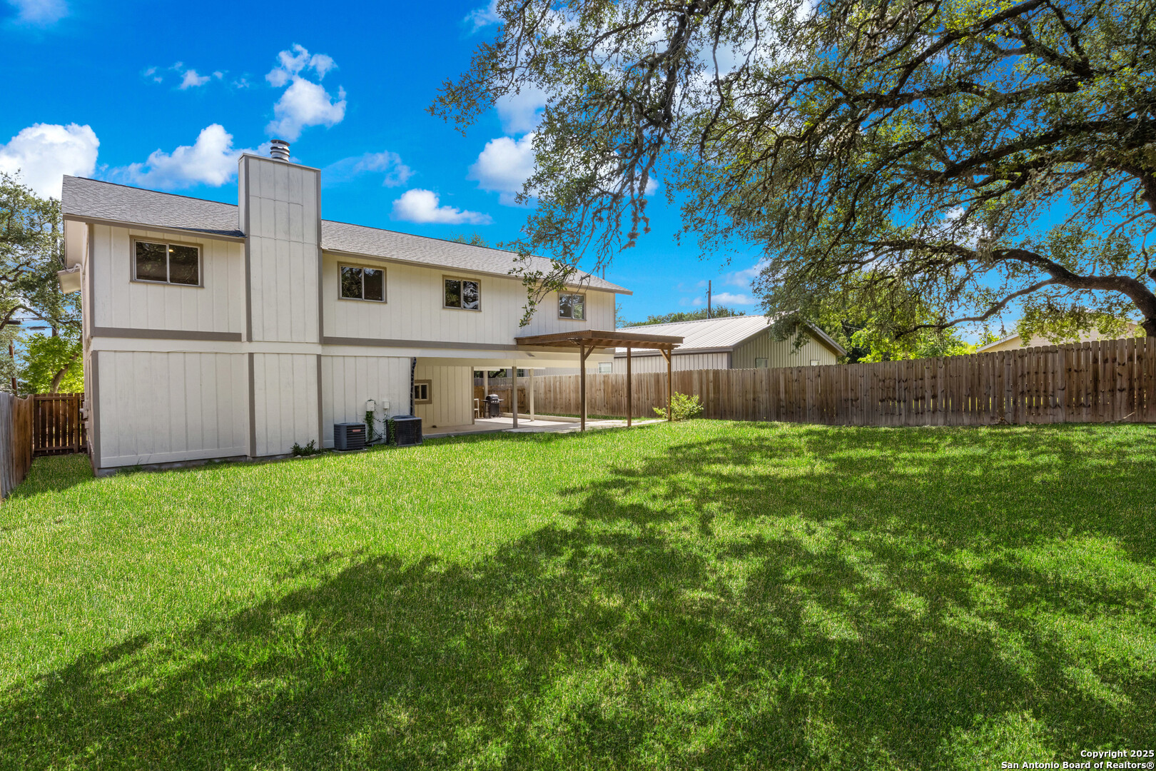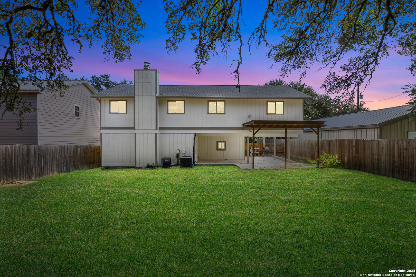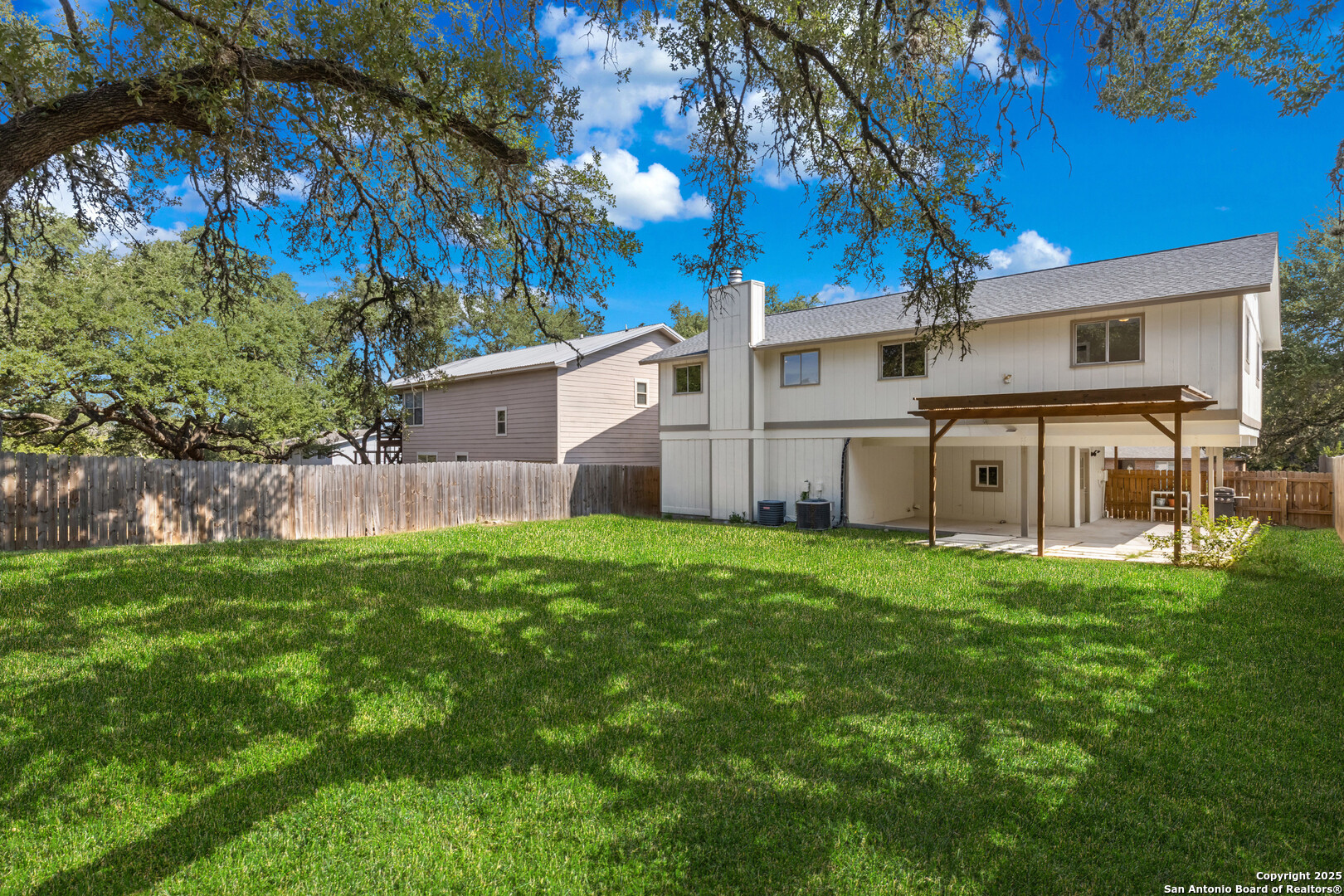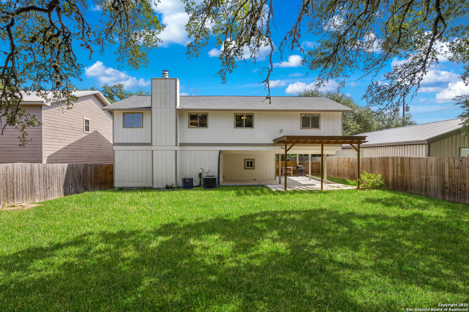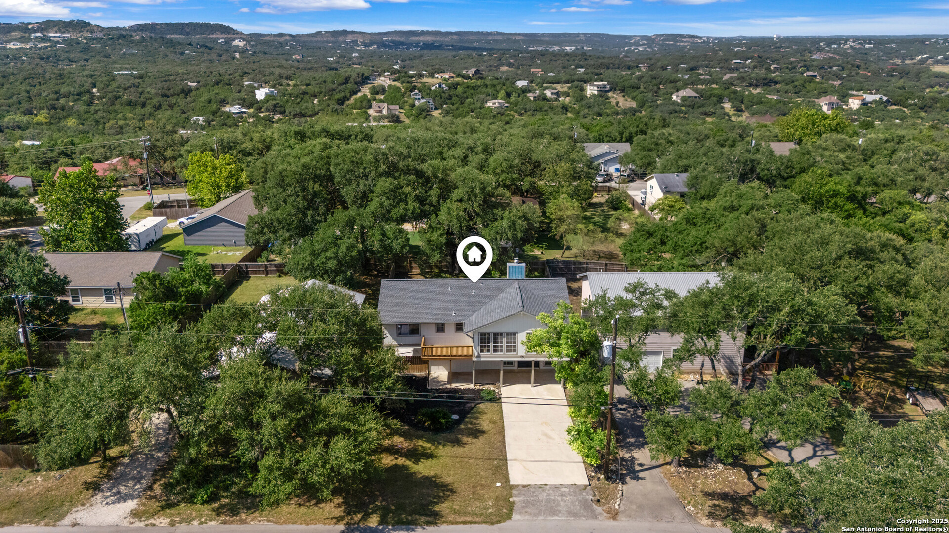 Aspire into this two-story residence nestled just around the corner from the coveted Canyon Lake, offering 3 bedrooms and 2.5 bathrooms with 2,344 square feet of thoughtfully designed living space. Step inside on the lower level and be welcomed by a generous game room, seamlessly connected to the front covered porch-a perfect retreat for quiet mornings or casual gatherings. Adjacent to the game room, a convenient half bath and utility room lead you out to the backyard's covered patio and sprawling yard, shaded by mature trees and ready for both relaxation and play. Ascend to the second floor where natural light floods an inviting living and dining room combo centered by a warm fireplace. The kitchen stands as the heart of the home, bathed in sunlight through large windows, featuring two eat-in areas including a breakfast bar. High ceilings, open concept, ceramic tile and luxury vinyl plank flooring flow throughout, enhancing the clean, modern feel. Outside, the home's durable exterior is topped with a heavy composition shingle roof, complemented with a private fenced yard for added peace and tranquility. This vibrant community offers exclusive lake access with boat ramps, a pool, clubhouse, playground, and scenic lake and river parks. Located within the respected Comal County School District, Mountain Valley Middle and Elementary schools, and Canyon Lake High School are nearby. Beyond your doorstep, adventure awaits-explore Canyon Lake, Horseshoe Loop, Comal Park, Guadalupe River State Park, and historic Gruene. New Braunfels, Natural Bridge Caverns, wildlife ranches, and other local treasures are just a short drive away. This is more than a home; it's a gateway to an active lifestyle within a welcoming neighborhood surrounded by natural beauty and endless opportunities.