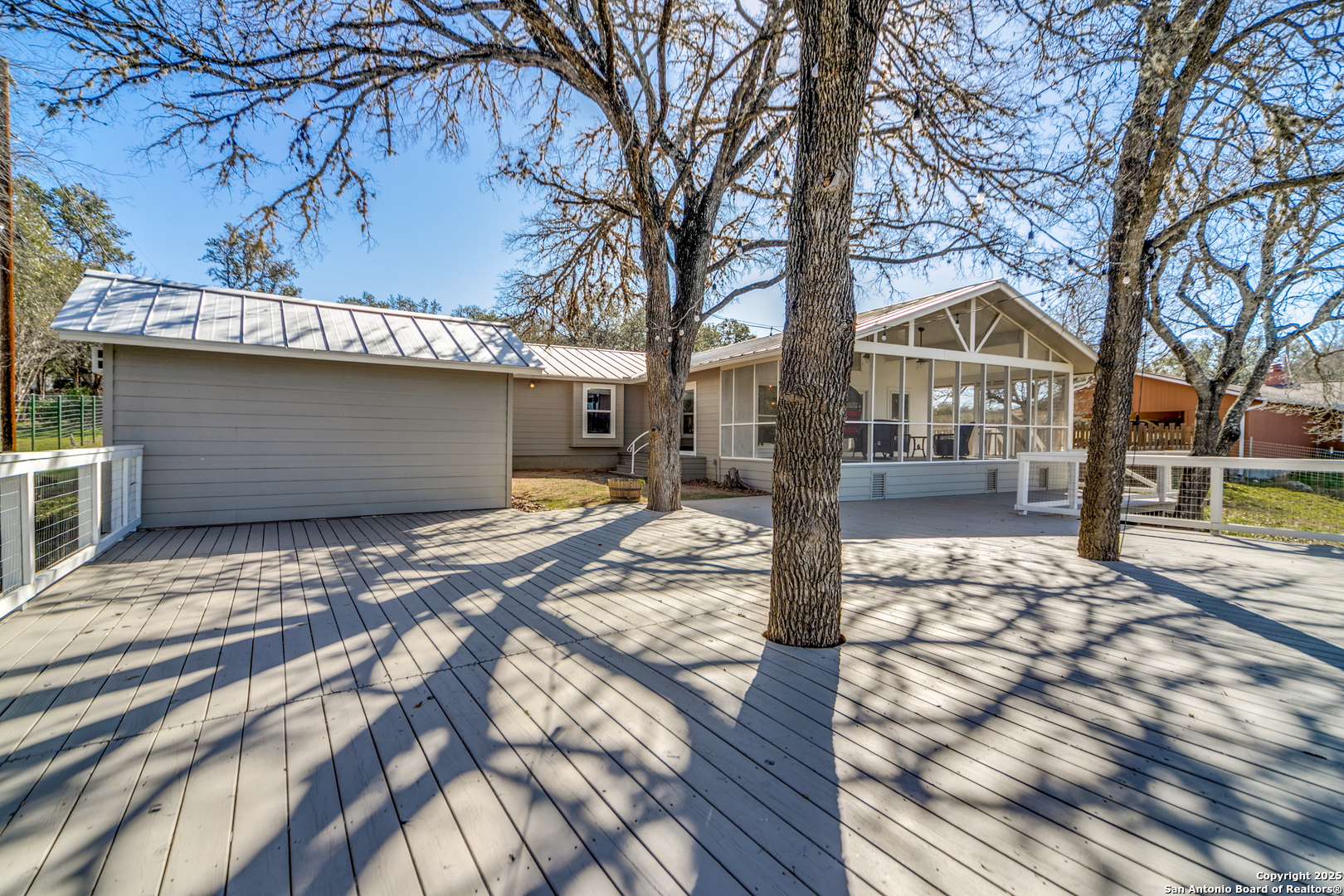 Texas Hill Country Riverfront Retreat! Experience the best of Texas Hill Country living in this stunning riverfront home, nestled on just over an acre in the highly sought-after Boerne ISD. This 4-bedroom, 2-bathroom residence seamlessly blends modern updates with rustic charm, offering a peaceful escape with breathtaking views and outdoor living at its finest. Step inside to find an inviting spacious living room with soaring ceilings and warm wood floors, creating an open and airy feel. A durable metal roof, unique Saltillo accents, and updates to the kitchen and bathrooms, add to the home's character and appeal. Designed for year-round enjoyment, this home boasts an expansive 36' x 39' deck, perfect for entertaining, relaxing, and soaking in the serene river views. A 26' x 14' screened-in porch offers an additional retreat where you can unwind in the shade while listening to the gentle sounds of nature. With direct river access, this property is a haven for outdoor enthusiasts, whether you enjoy kayaking, fishing, or simply taking in the scenic surroundings. Don't miss this rare opportunity to own a piece of Hill Country paradise!