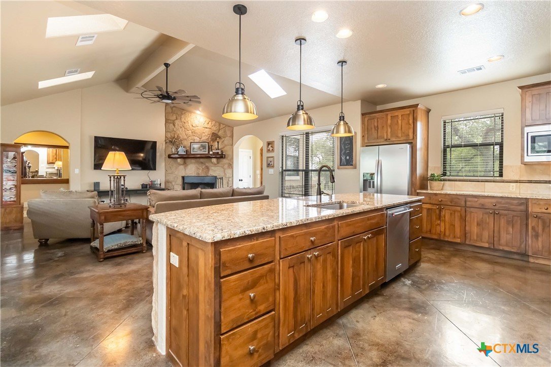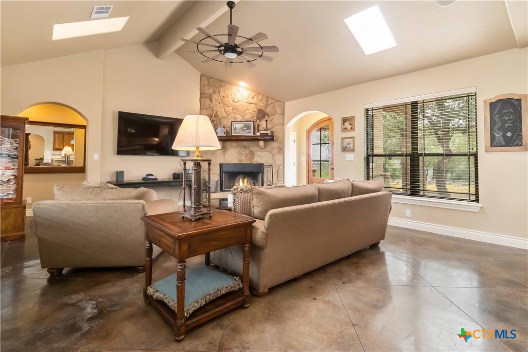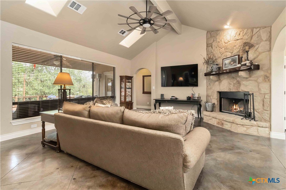 Luxury Hill Country Living on 1 Acre in Mountain Springs! This beautiful 2-story home captures the charm and serenity of Hill Country living with modern comfort and style. Featuring 3 bedrooms, 2.5 baths, and soaring high ceilings, the open floor plan offers bright, inviting spaces throughout. The primary suite is privately located on the main level, while the upstairs includes two additional bedrooms and a spacious game room. Enjoy true indoor-outdoor living with covered porches both upstairs off the game room and downstairs off the kitchen—perfect for relaxing or entertaining. The large backyard features an expansive deck and plenty of room to gather, play, or simply take in the peaceful views. With fresh interior paint, updated kitchen pulls, and a recently replaced roof (less than 2 years old), this home is move-in ready and full of thoughtful updates. Located in the sought-after Mountain Springs subdivision, residents enjoy wonderful community amenities and the best of Texas Hill Country living.