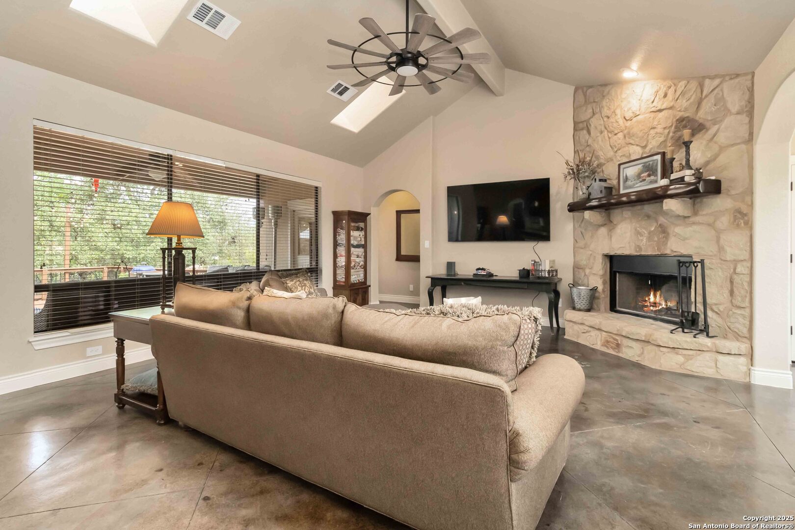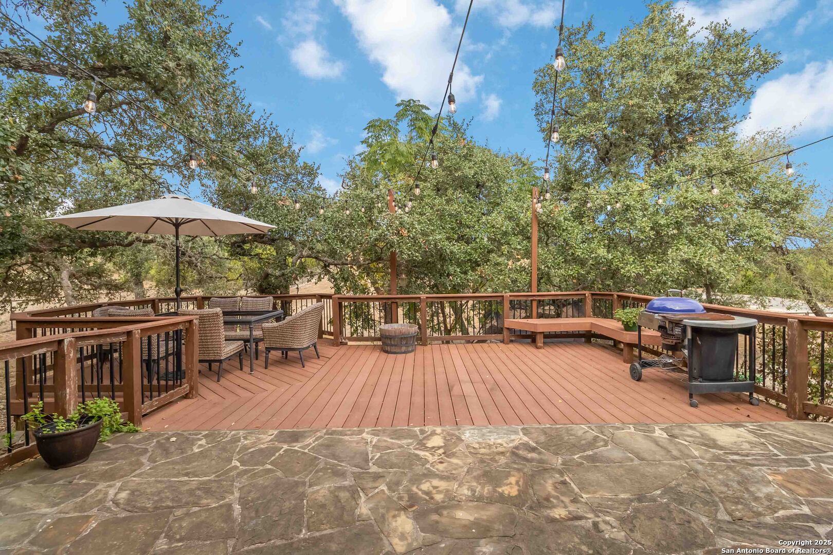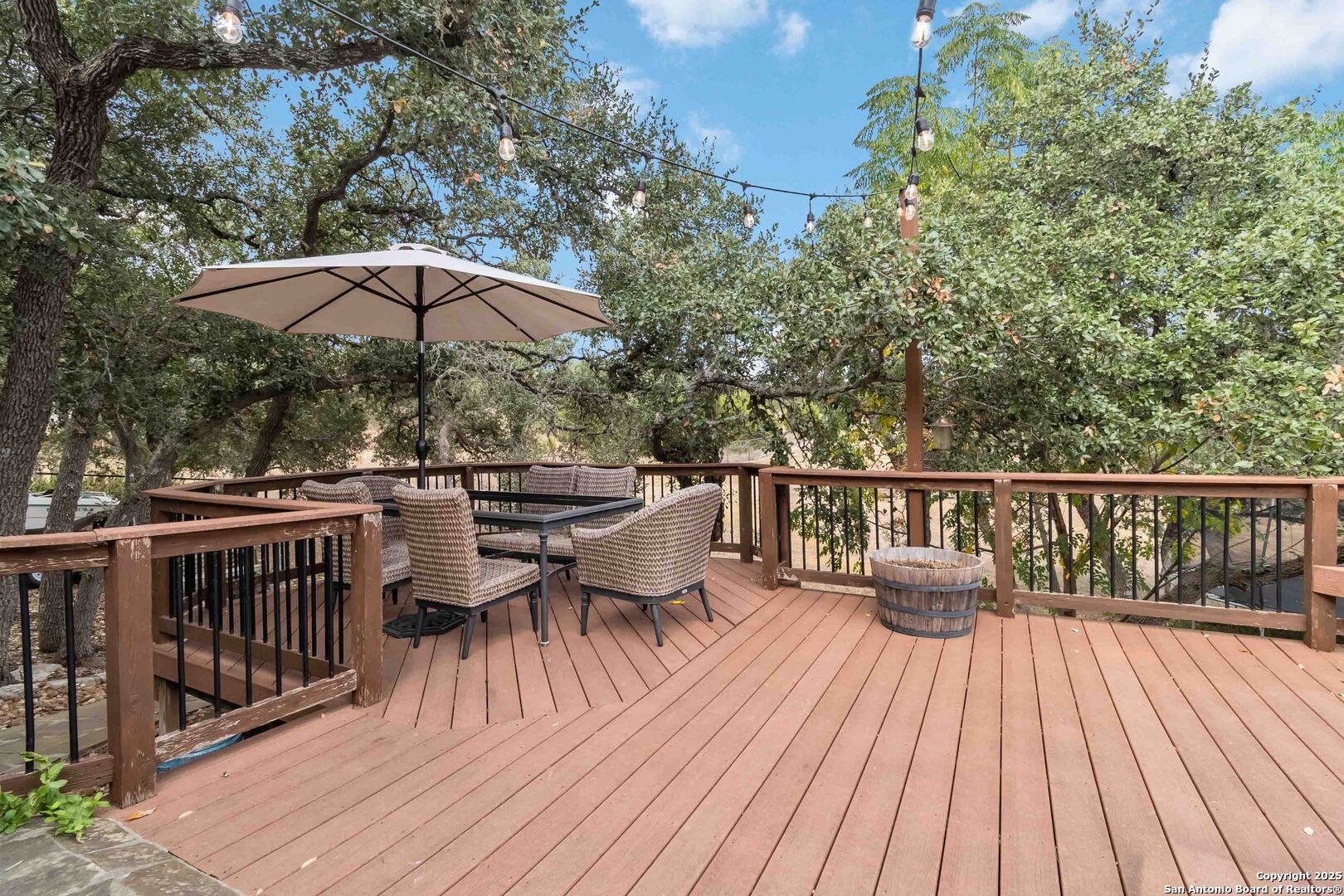 Luxury Hill Country Living on 1 Acre in Mountain Springs! This beautiful 2-story home captures the charm and serenity of Hill Country living with modern comfort and style. Featuring 3 bedrooms, 2.5 baths, and soaring high ceilings, the open floor plan offers bright, inviting spaces throughout. The primary suite is privately located on the main level, while the upstairs includes two additional bedrooms and a spacious game room. Enjoy true indoor-outdoor living with covered porches both upstairs off the game room and downstairs off the kitchen-perfect for relaxing or entertaining. The large backyard features an expansive deck and plenty of room to gather, play, or simply take in the peaceful views. With fresh interior paint, updated kitchen pulls, and a recently replaced roof (less than 2 years old), this home is move-in ready and full of thoughtful updates. Located in the sought-after Mountain Springs subdivision, residents enjoy wonderful community amenities and the best of Texas Hill Country living.
