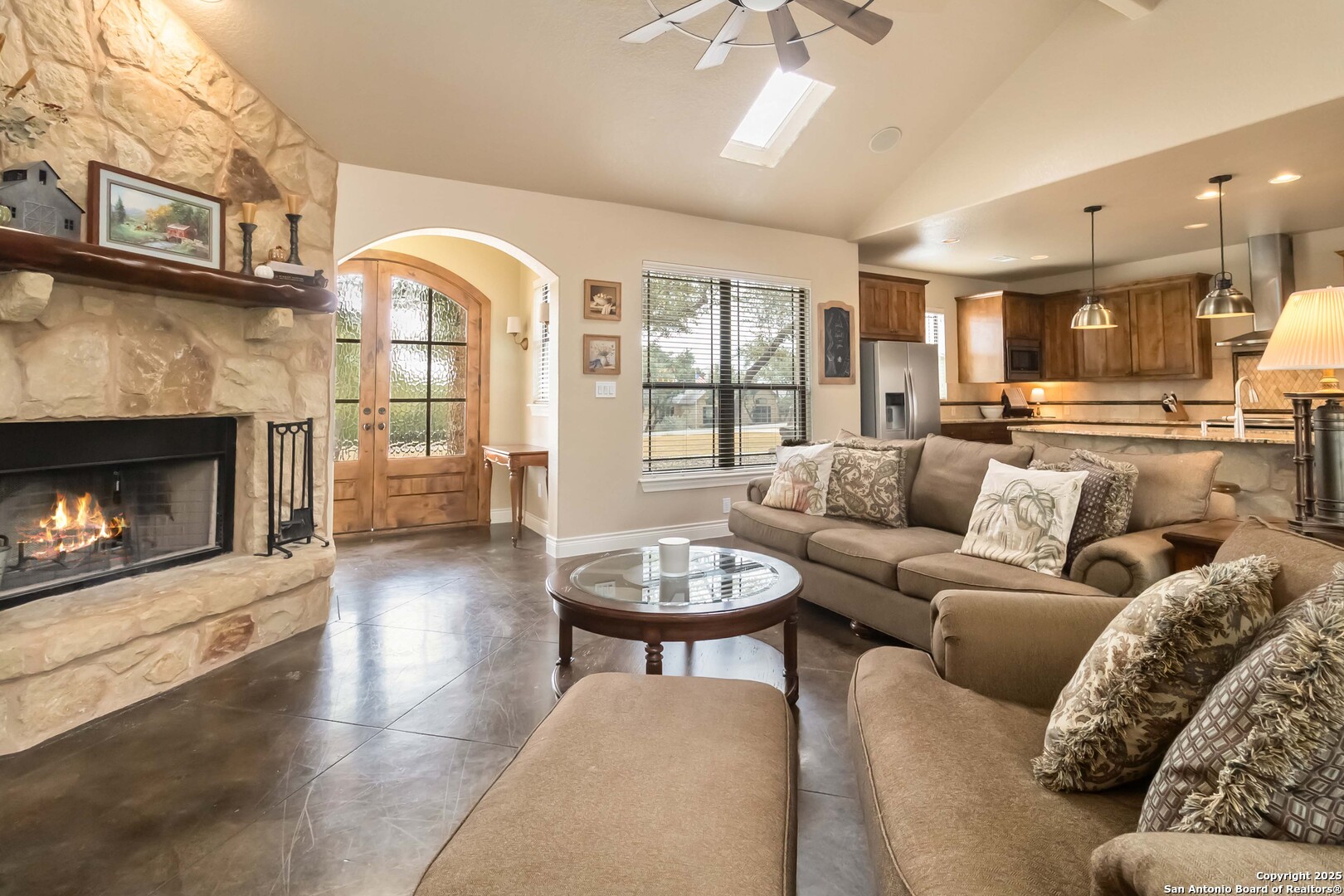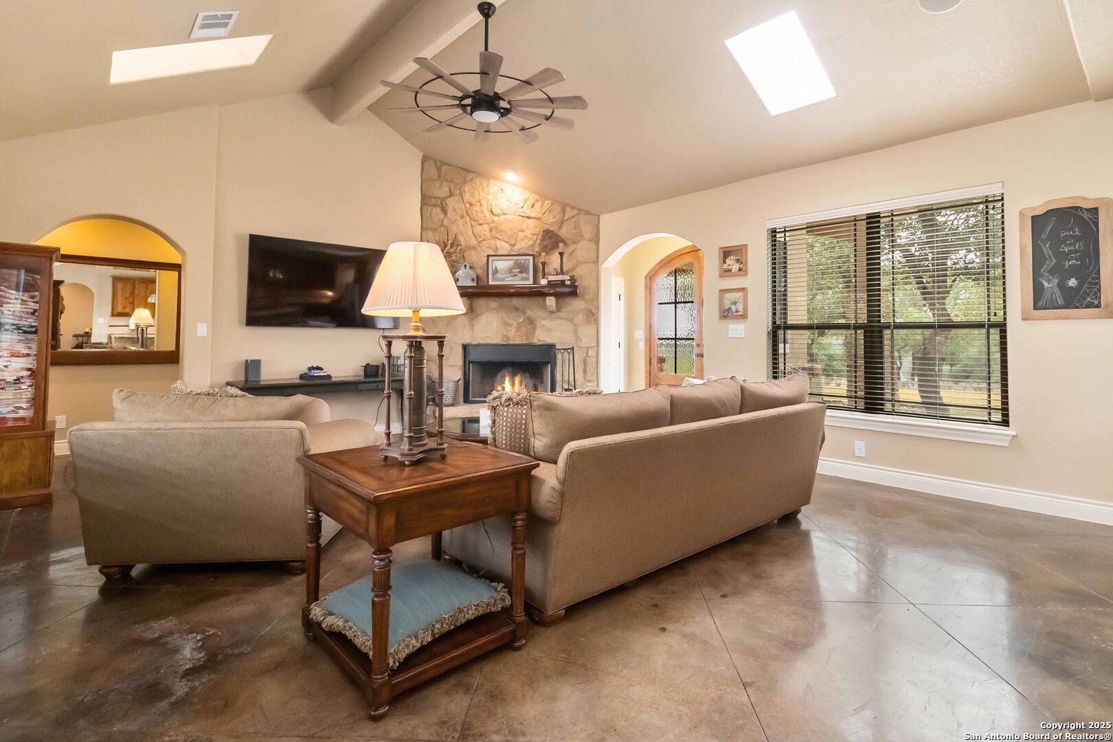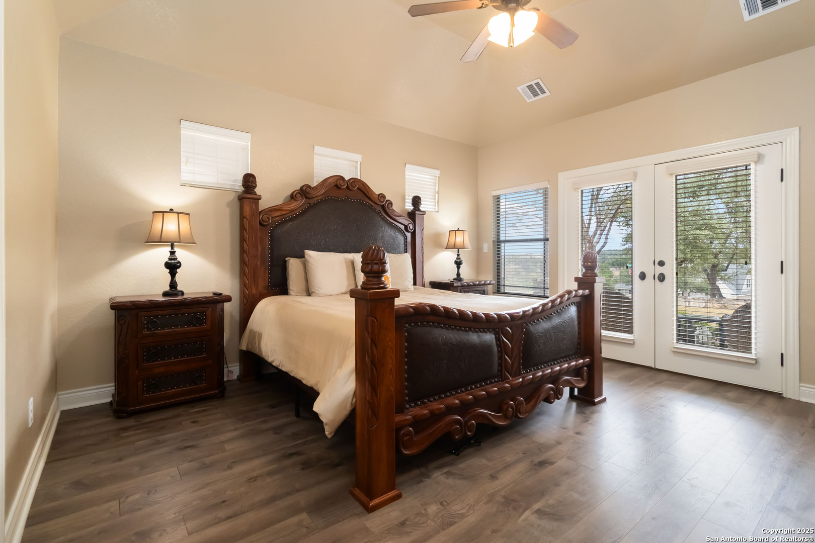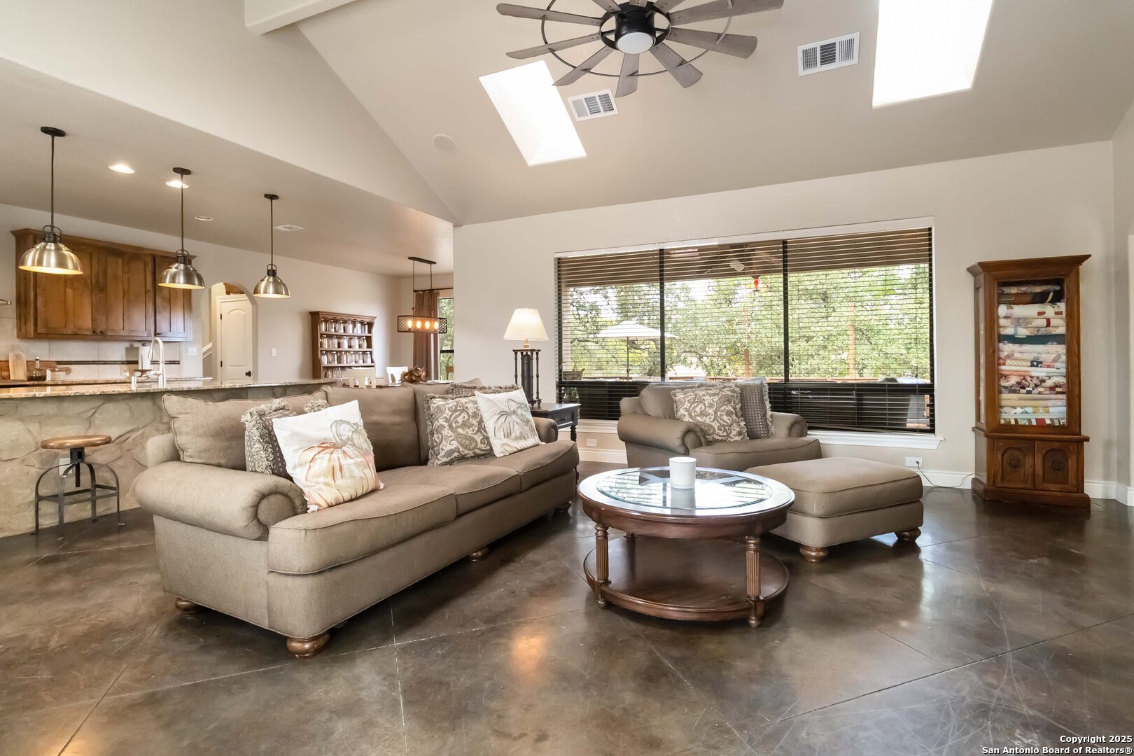 Luxury Hill Country Living on 1 Acre in Mountain Springs! This beautiful 2-story home captures the charm and serenity of Hill Country living with modern comfort and style. Featuring 3 bedrooms, 2.5 baths, and soaring high ceilings, the open floor plan offers bright, inviting spaces throughout. The primary suite is privately located on the main level, while the upstairs includes two additional bedrooms and a spacious game room. Enjoy true indoor-outdoor living with covered porches both upstairs off the game room and downstairs off the kitchen-perfect for relaxing or entertaining. The large backyard features an expansive deck and plenty of room to gather, play, or simply take in the peaceful views. With fresh interior paint, updated kitchen pulls, and a recently replaced roof (less than 2 years old), this home is move-in ready and full of thoughtful updates. Located in the sought-after Mountain Springs subdivision, residents enjoy wonderful community amenities and the best of Texas Hill Country living.