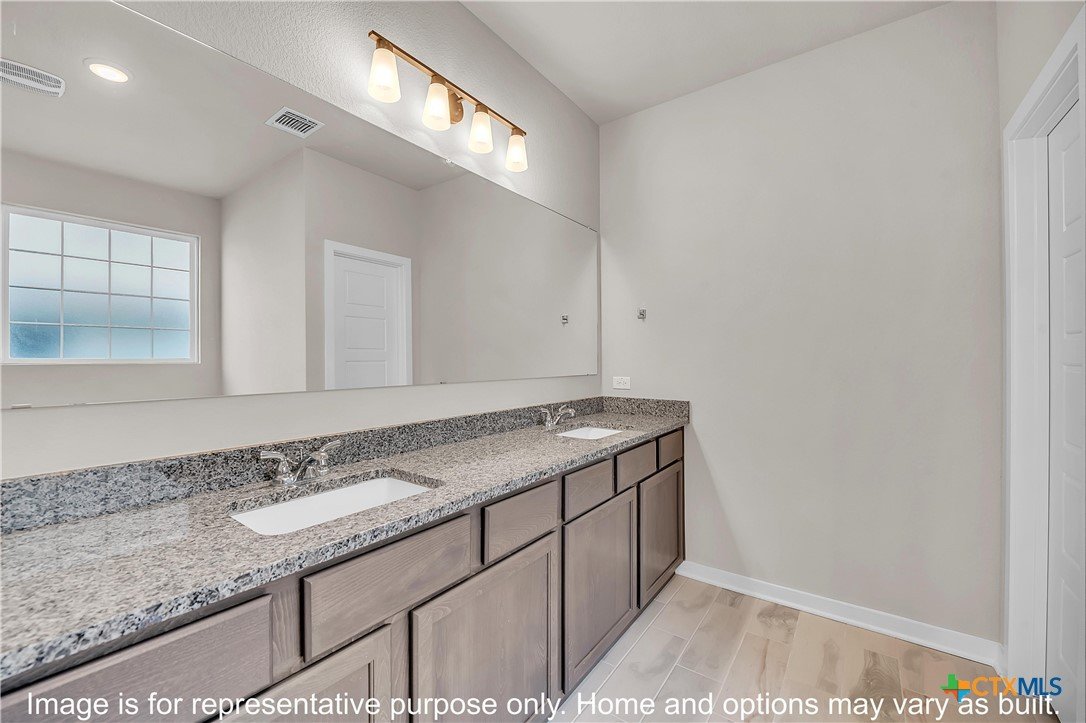 The beauty of this home goes well beyond the eye-catching façade. A large, open living room flows seamlessly into your dining area and large kitchen. Featuring a powder room on the first floor, your guests will enjoy their privacy without having to use a shared bathroom. Head upstairs where you’ll find four bedrooms, a media room and a shared game room space for all your loved ones to enjoy. Home includes granite countertops throughout, wood cabinetry, ceramic tile in baths and utility. Primary suite includes a separate shower garden tub and large walk-in closet with built-ins. Everything about this home delivers style, craftsmanship, and spaciousness.