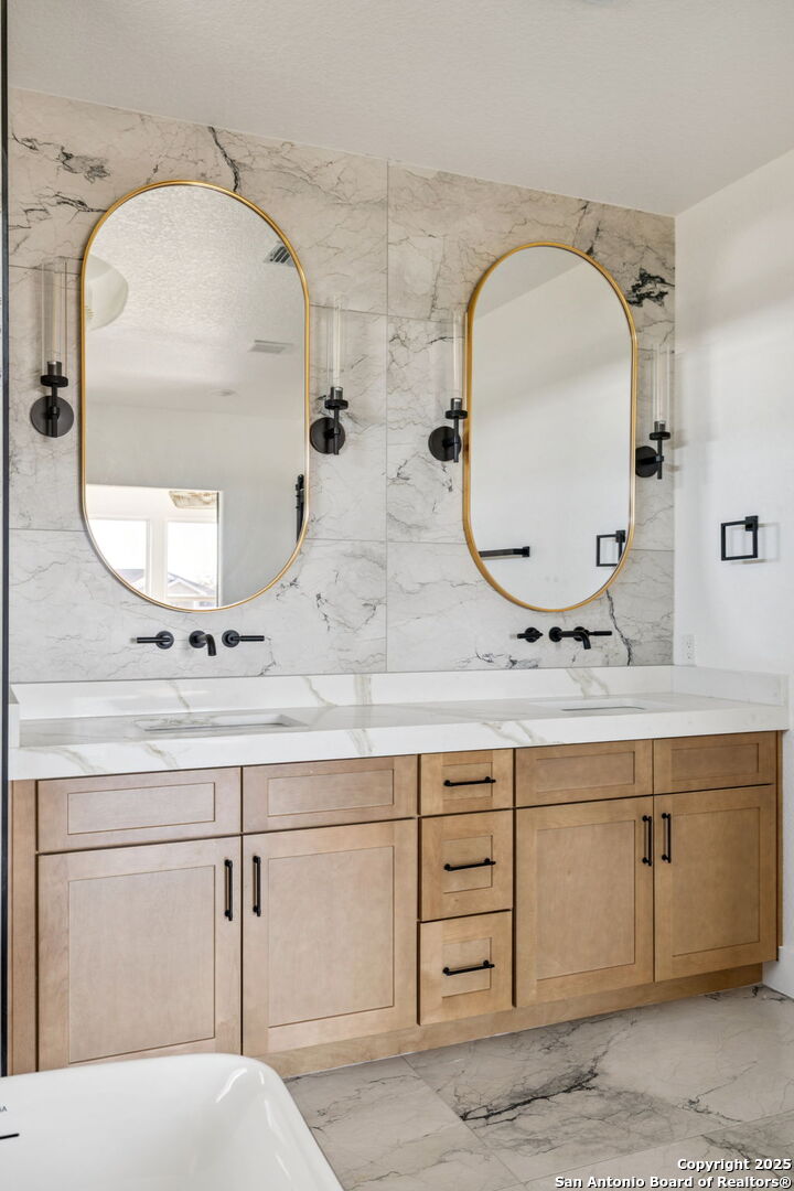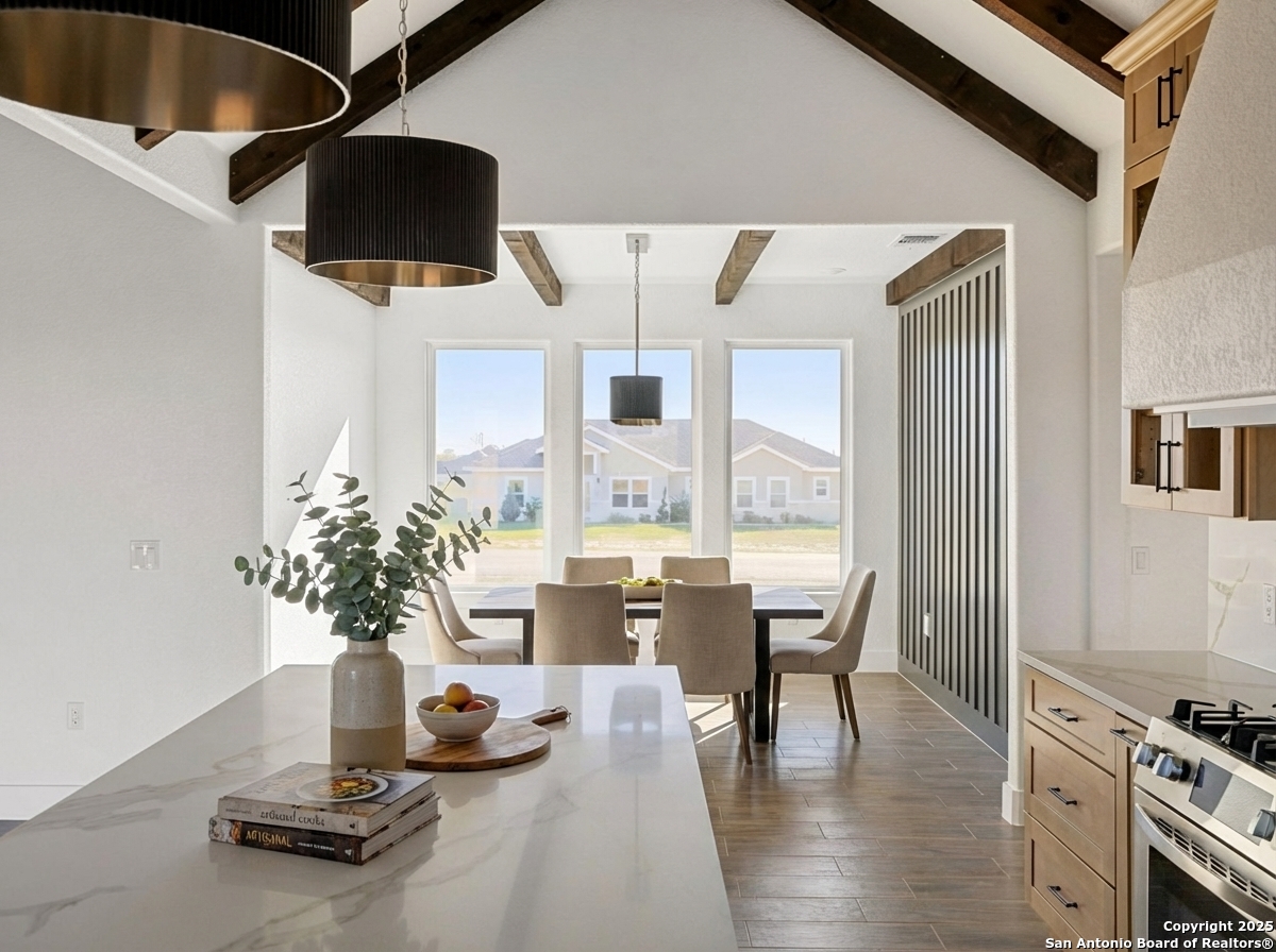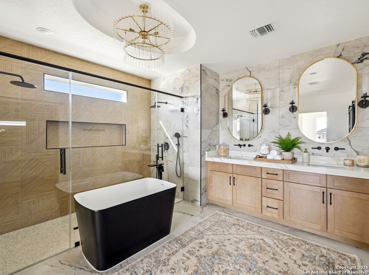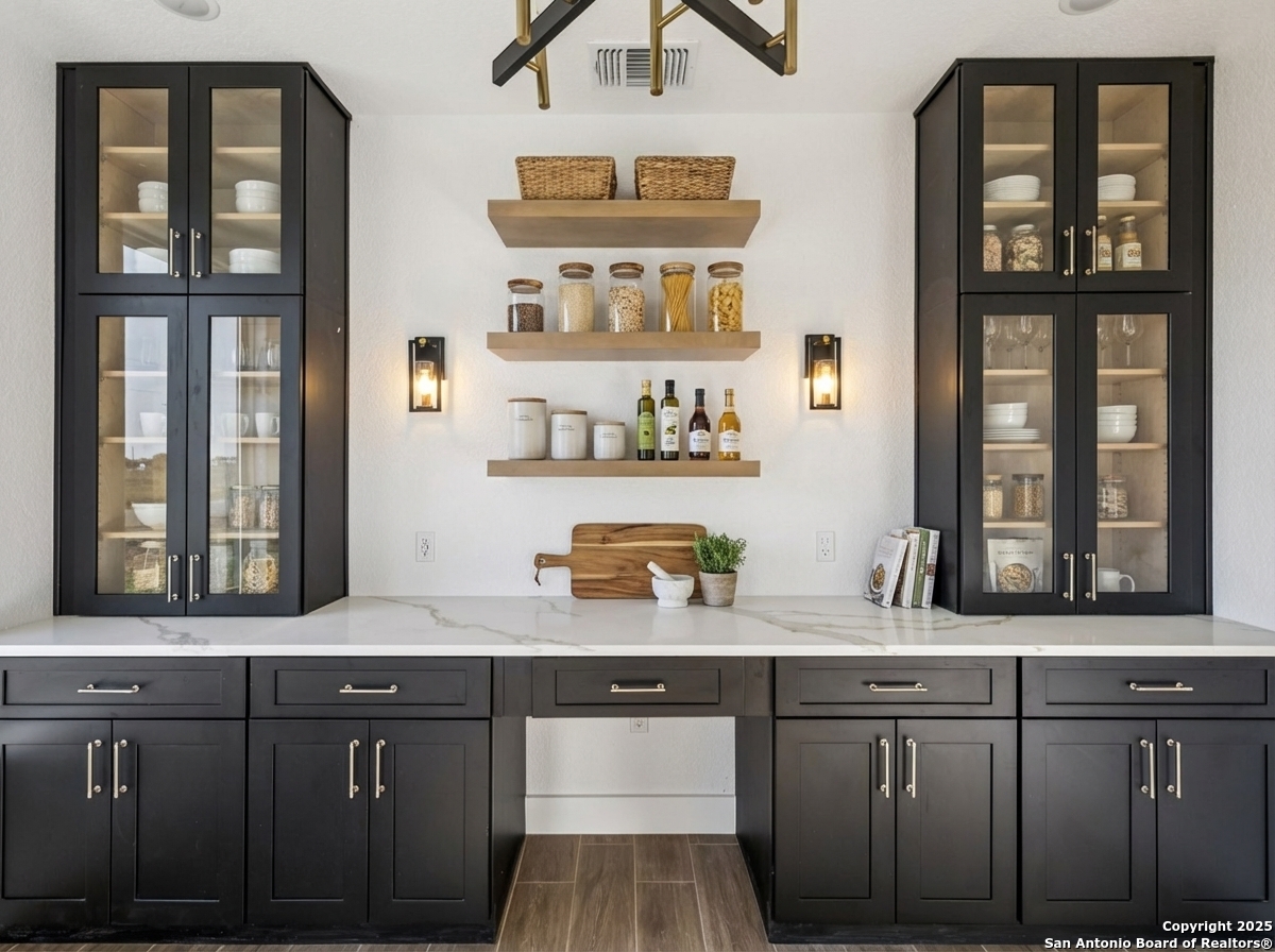 Step into a living room designed to impress, where soaring ceilings, refined architectural details, and a warm propane fireplace create an atmosphere of effortless sophistication. The space flows seamlessly into a chefinspired kitchen, beautifully appointed with new quartz countertops, sleek custom cabinetry, stainless steel appliances, and a generous walkin pantry-an elegant blend of style and function worthy of the most discerning entertainer. The dining area continues this sense of refinement, offering an inviting setting for intimate dinners or grand gatherings, all framed by the home's modern, elevated design. The primary suite is a sanctuary of luxury, featuring a serene ambiance, a spacious walkin closet, and a spalevel bathroom adorned with exquisite tilework, LED mirrors, and contemporary finishes that evoke a boutique hotel experience, while a second full master suite enhances the home's exclusivity, providing flexibility for multigenerational living or distinguished guest accommodations. The additional bedrooms are equally impressive, including a beautifully designed Jack and Jill layout with custom storage, stylish wood and black accents, and thoughtful details that elevate everyday living. Outdoors, the backyard offers a private retreat complete with a covered patio and a fully equipped outdoor kitchen-perfect for al fresco dining, weekend barbecues, or hosting under the stars-complemented by landscaping supported by a full sprinkler system and ample space for relaxation or entertaining, making this setting both peaceful and polished as it seamlessly extends the home's luxurious interior.